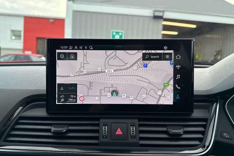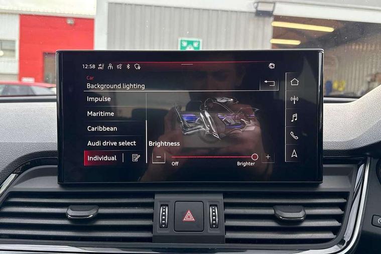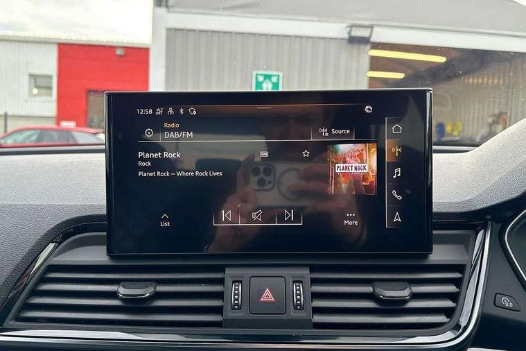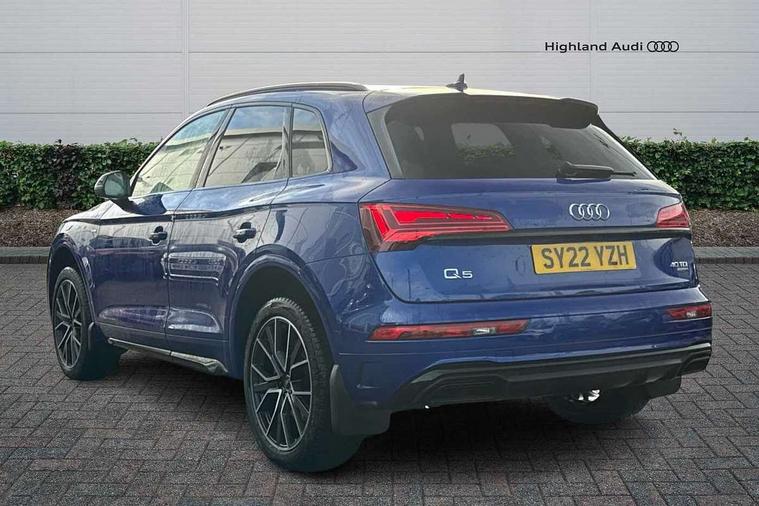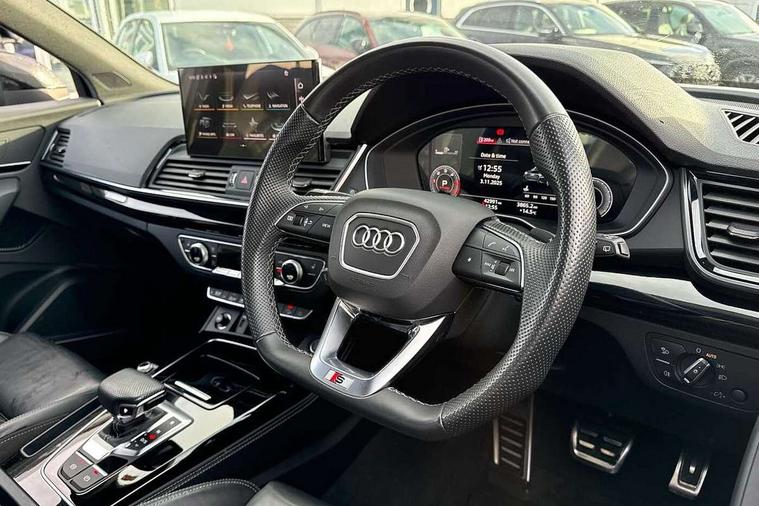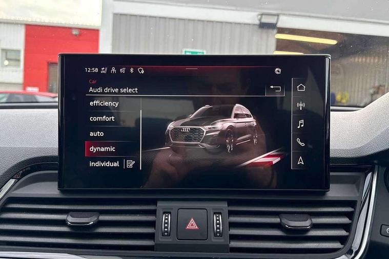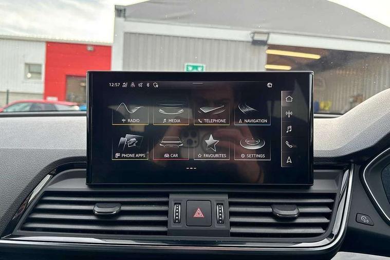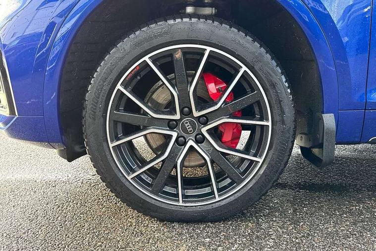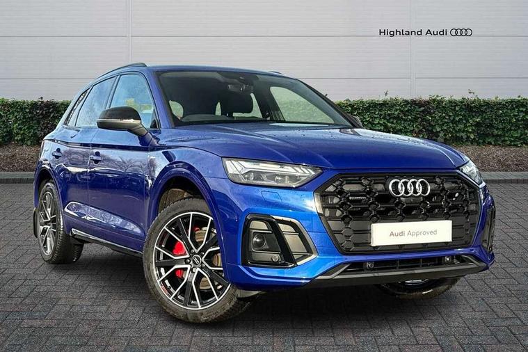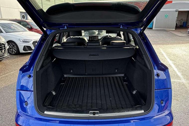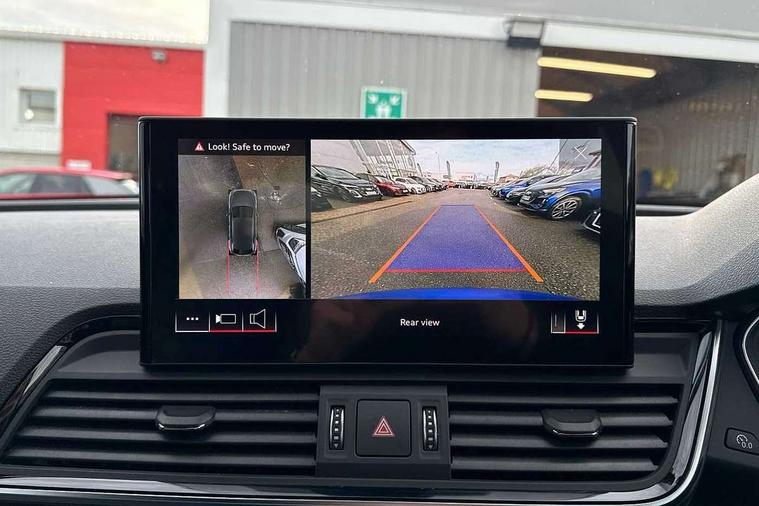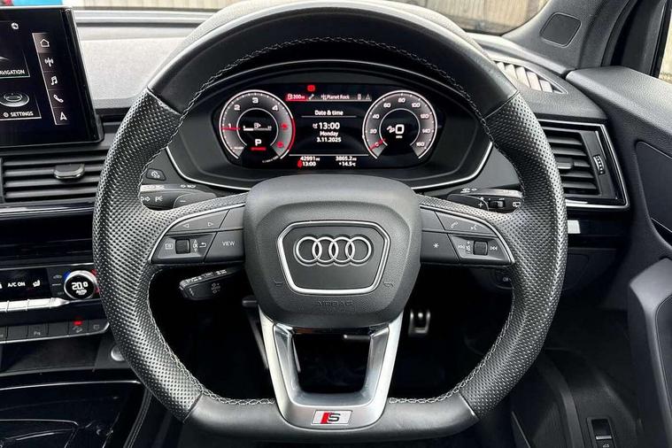 Audi connect safety and service (e-call), Audi connect with Amazon Alexa Integration, Audi drive select, Audi virtual cockpit plus with 12.3" screen and three different layout designs, Audi wireless smartphone interface, Automatic start-stop system with coasting functionality and efficiency programme, Bluetooth interface, Electro - mechanical power assisted steering, MMI navigation plus with 10.1" touch screen, Power tailgate, Reversing camera, Service interval indicator, Voice control system with Audi hotword activation "Hey Audi", Diesel particulate filter, Quattro on demand, S line sports suspension, 2 x USB charging port with aux input socket, DAB Digital radio, Acoustic windscreen, Audi matrix LED headlights with dynamic front and rear indicators, Audi rings at front and rear in black, Audi rings decal on rear doors, Auto dimming door mirrors, Auto dimming rear view mirror, Automatic headlights and windscreen wipers, Black door mirrors, Black roof rails, Body colour bumpers, Body colour underbody protection, Chrome plated exhaust trims, Daytime running lights, Door sills in Selenite silver, Electric adjustable/heated/folding door mirrors, Front air inlet surrounds in titanium black, Front and rear electric windows, Headlight washers, High gloss black B pillar trims and triangular rear door trim, High level LED brake light, Rear chrome trim strip below lights, Rear privacy glass and rear side windows, Rear side wing doors, Rear wiper, Roof bars, S Line rear spoiler, 3 rear headrests, 4 way electric lumbar support for driver and front passenger, 40:20:40 split folding 3 rear bench seat in 2nd row with rear centre armrest, Black cloth headlining, Comfort front centre armrest, Contrast stitching on seats, steering wheel and gear lever gaiter, Deluxe 3 zone electronic climate control, Electrically adjustable front seats, Fine Nappa leather upholstery with diamond pattern contrast stitching + front sport seats with S embossed logo, Front/rear floor mats, Gear lever in black leather, Heated front seats, Height adjustable front head restraints, Height/reach adjustable steering column, Illuminated door sill trims with S logo, ISOFIX child seat mounting and top tether, Rear seat bench plus, Removable luggage compartment floor, Single front passenger seat, Stainless steel pedals, Sunvisors with vanity mirrors, Black styling package - Q5 Edition 1, Extended interior upholstery pack - Q5, Extended LED Interior multi coloured Lighting Pack - Q5, 3 point seatbelts on all seats, 6 airbags - Driver, front passenger, curtain and side airbags, Electrically operated child locks on rear doors, Electromechanical parking brake, Electronic stabilisation control including ABS, ASR and EDL, Front and rear brake calipers painted in red, Front passenger airbag deactivation, Hill descent control, Hill hold assist, Multi collision brake assist, Pop-up bonnet for pedestrian protection, Pre sense city, Seat belt force limiter, Seatbelt monitoring, Tyre pressure warning, Warning triangle and first aid kit, Anti theft alarm, Anti-theft wheel bolts, Keyless Go access/ignition system, Remote central locking, Piano black finish inlay,