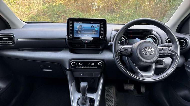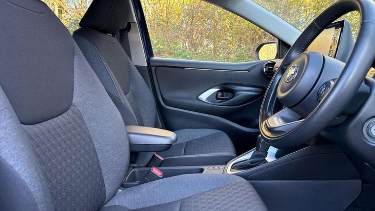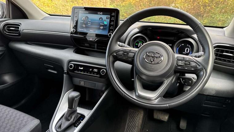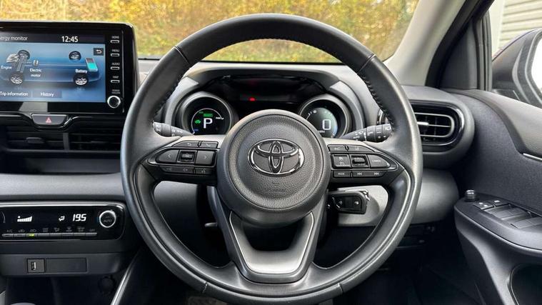 Adaptive cruise control, Adjustable speed limit with speed warning, Bluetooth connectivity, Colour binocular inspired displays with digital speedometer, E-call, Electric power steering, Hybrid energy display, Multi information display switches on steering wheel, Reversing camera, Smartphone integration with Apple CarPlay and Android auto, Tailgate, Voice recognition, Vehicle Stability Control (VSC), 4 speakers, 8" Multimedia display touch screen, USB connection, Acoustic windscreen glass, Auto windscreen wipers, Automatic headlights, Body coloured door mirrors, Electric adjustable heated door mirrors, Follow me home headlights, Front auto power windows with anti jam protection, Full LED rear lights, LED daytime running lights, LED front fog lights, LED front light guide, LED Headlights, LED High mounted stop lamp, LED Indicators, LED rear light guide, Manual headlight levelling, Painted chequered front grille, Rain sensor, Rear auto power windows with anti jam protection, Rear privacy glass, Rear side wing doors, Rear spoiler, Rear wiper, Shark fin antenna, Turning signal integrated indicators in door mirrors, Variable front intermittent wipers, 3 adjustable rear headrests, 3 spoke leather steering wheel, 60/40 split folding rear seat, Active headrests, Adjustable boot height, Auto air conditioning, Coat hooks in rear grab handles, Cup holders (2 front & door), Data Communication Module (DCM) connected services, Fabric upholstery, Front armrest, Glovebox, Grey roof lining, Height adjustable driver's seat, Isofix seat fixing, Leather gearshift, Pollen filter, Shopping bag hooks, Single front passenger seat, Tilt/telescopic steering column, 3 point seatbelts on all rear seats, ABS+EBD+Brake assist, Electronic parking brake, Emergency brake light system (EBS), Front passenger airbag on/off switch, Front seatbelt reminder, Hill start assist control (HAC), Rear child proof door locks, Rear seat belt reminder, Supplemental Restraint System (SRS) 8 airbags: Driver & passenger's airbags, dual side curtain airbags, side impact airbags, front centre airbag, Toyota Safety Sense 2, Precollison + Night time Pedestrian & Cyclist Detection, Lane Trace Assist, Auto High Beam, Intelligent ACC & Road Sign Assist, Tyre pressure warning system, 2x Master key, Alarm/immobiliser, Remote powered central double locking doors, Soft touch instrument panel, Space saver spare wheel,