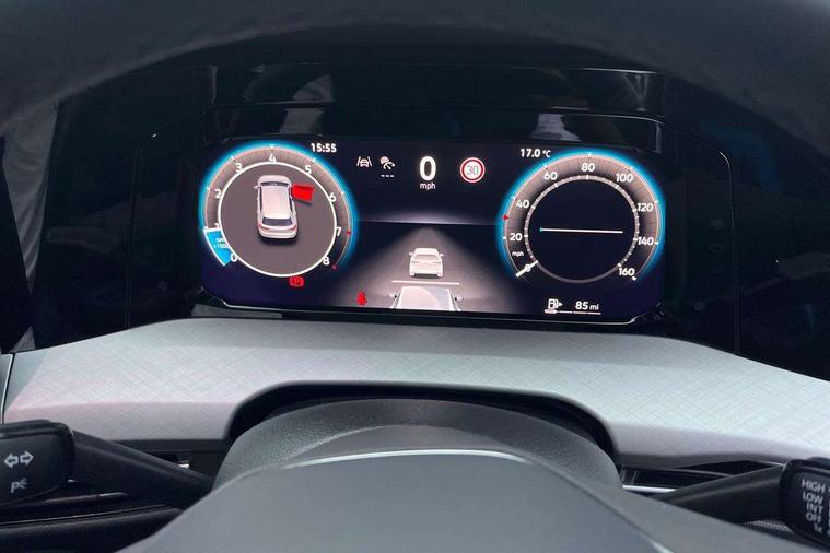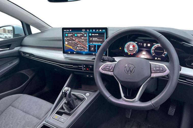 Activated carbon canister, Adaptive cruise control (ACC), Advanced driver attention and drowsiness monitor, Dynamic road sign display, E-Sim card for online connectivity, eCall emergency call system, Multi-color Digital cockpit pro, selection of different info profile possible, Multifunction front facing camera for distance control, Navigation system, Oncoming vehicle braking when turning including swerve support, Preparation for light assist system, Speed limiter, Speedo, rev counter, electronic odometer, trip, service interval display, exterior temperature and fuel gauge, Voice enhancer and voice control, Warning signal and warning light for front and rear seatbelts not fastened, We connect plus preparation, We connect preparation, Wireless app connect, Petrol Particulate Filter, Start-stop system with battery regeneration (recuperation - energy recovery during braking), XDS electronic differential lock for improved traction and handling, 2 USB C ports in front, 2 USB charging sockets on the centre console in the rear charging capacity upto 45W, Comfort telephony + wireless charging, without wireless aerial connection, Digital radio reception (DAB), Diversity antenna for FM reception, Gaming platform via car app, Infotainment system with 12.9" display, Mobile phone interface with inductive charging feature, 3rd brake light, Auto dimming rear view mirror, Auto headlights, Automatic headlamp activation with Coming home and Leaving home feature, Body colour door handles, Body colour door mirrors, Exterior ambient lighting with illuminated door handles, Exterior mirrors convex on the left and aspherical on the right, Front and rear electric windows, Heat insulating windshield made of laminated glass, LED daytime running lights, Rain sensor, Rear exhaust tailpipe, Rear fog light on one side and reversing lights on both sides, Rear side wing doors, Rear tinted glass 65% light absorbing from B pillar backwards, Rear windscreen washer and wiper with interval delay, Remote electrically foldable door mirrors, puddle lights and reverse activated passenger's door mirror, Standard bumpers, Welcome light with surround lighting, 12V socket in front centre console, 12V socket in luggage compartment, 3 rear head restraints, 3 seat bench in 2nd row, Chrome plated radiator grille inserts, air vent surrounds and light switch surrounds, Front centre armrest, Front head restraints, ISOFIX anchors for child seats on outer rear bench seats and on front passanger seat compatible for i-Size, Leather gearshift handle, Luggage compartment lighting, Rear cupholder and loadthough, Single front passenger seat, Soul black instrument panel, Split folding backrest with centre armrest and unsplit rear seat bench, Standard pedal cluster, Storm grey roof lining, Sun visors with illuminated vanity mirrors, Parking and comfort pack - Golf Estate/Hatchback, 3 point height adj front seatbelts + pretensioners, 3 rear three point seatbelts, ABS, Autonomous emergency braking front assist with pedestrian and cyclist monitoring, Child locks on rear doors, Driver and front passenger airbag with front passenger airbag deactivation, Electronic parking brake with auto hold, ESC (Electronic Stability Control), Extended pedestrian protection measures, Rear disc brakes, Two tone horn, Tyre pressure loss indicator, Volkswagen roadside assistance, Alarm with interior protection, Anti theft wheel bolts, Keyless start with SAFE lock, Preparation for alcohol interlock, Nature cross brushed decorative inserts for dashboard and front door panels,