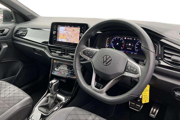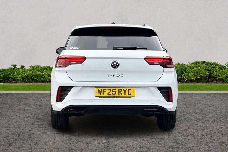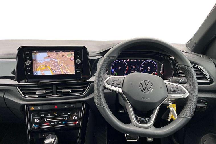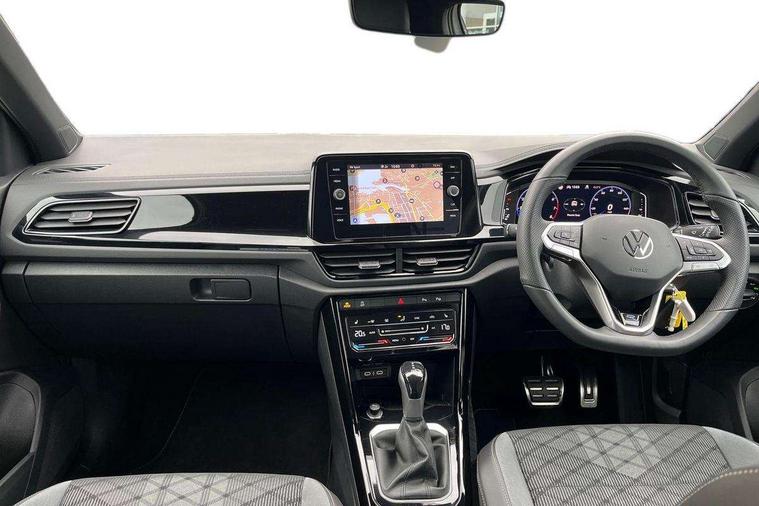 10.25" Digital cockpit pro, Advanced driver attention and drowsiness monitor, Emergency call service, Lane keeping system Lane Assist, Mobile phone interface, Modified key software - reduce switch off time for key status change to Long no motion, Online services, Park assist including front and rear parking sensors, Service interval indicator, Tailgate/trunk lid release from outside, Think blue trainer driver tips and journey analysis, Warning sound and light for front seatbelts unfastened, Wireless app connect, Battery regeneration during braking, Start/stop function with battery regeneration, DAB Digital radio, Diversity antenna for FM reception, Front and rear 6 speakers, Music playback - MP3, WMA and AAC files, Premium USB cable in choice of either Apple or Android smartphone compatibility, SD card slot, Simultaneous pairing of 2 compatible mobile devices, Title and cover art display, We Connect and We Connect Plus functionality, Auto dimming interior rear view mirror, Automatic hazard lights activation under emergency braking, Automatic headlight control with LED separate daytime running lights with coming/leaving home function, Body coloured exterior mirror housings and door handles, Electrically adjustable and heated door mirrors, Extended roof spoiler, Exterior mirrors aspherical on driver side, convex on front passenger side, External USB type C socket and charging sockets, Front windscreen wiper with intermittent wipe and 4 position delay, Heated rear window, LED 3rd brake light, LED rear combination lamps, LED rear number plate lights, Power windows with comfort operation and circuit breaker, Privacy glass for rear side windows and rear window, R-Line design body coloured bumpers, Rain sensor, Rear exhaust tailpipe, Rear fog light on one side and reversing lights on both sides, Rear side wing doors, Rear wash/wipe with intermittent wipe setting, Remote electrically foldable door mirrors, puddle lights and reverse activated passenger's door mirror, 12V power socket in centre console, 3 rear head restraints, 3 seat bench in 2nd row, 4 load lashing points in luggage compartment, Air care climatronic air conditoning system with active combination filter and 2-zone temperature control, Black roof lining, Chrome plated decorative trims, Chrome plated radiator grille inserts, air vent surrounds and light switch surrounds, Door and side trim panel with leatherette insert, Front + rear carpet mats, Front centre armrest, Front cupholders x 2, Front footwell illumination, Front reading light, Front scuff plates with R Line logo, Front seat back storage pockets, Glove compartment door with light, Instrument lighting, white adjustable panel illumination, Interior ambient lighting and surround lighting, Interior light delay, Isofix child seat preparation, Leather gearshift handle, Load-through provision with cup holder when folded down ('Unsplit rear seat bench, split folding backrest, with centre armrest), Luggage compartment lighting, Single front passenger seat, Stainless steel pedals, Storage compartment in left and right luggage area, Storage compartment in rear doors, Storage compartments in driver and front passenger doors, Sunvisors with illuminated vanity mirrors, Variable boot floor, height adjustable and removable, Driver assistance pack without proactive passenger protection - T-Roc, 3 point height adj front seatbelts + pretensioners, 3 point seatbelts in outer rear with ECE label, ABS, Child locks on rear doors, City emergency braking and pedestrian monitoring, Driver and front passenger airbag with front passenger airbag deactivation, Driver and front passenger safety-optimised head restraints, Drivers seatbelt reminder, Electronic parking brake, Electronic Stability Control (ESC) inc EDL (Electronic Differential Lock) and ASR (Traction Control), Front and rear passengers curtain airbag system including front side airbags, Hill start assist, Predictive pedestrian protection, Rear disc brakes, Two tone horn, Tyre pressure loss indicator, Volkswagen roadside assistance, Piano black decorative inserts in dashboard and front door trim panels, Trims for alloy wheels,