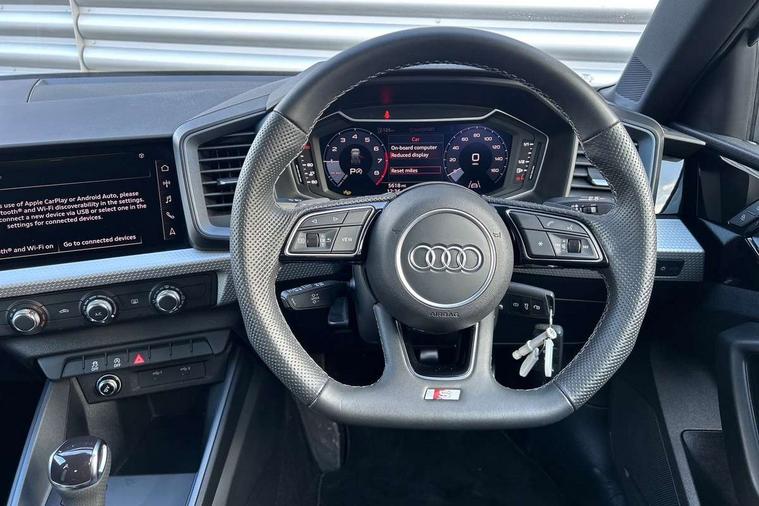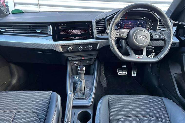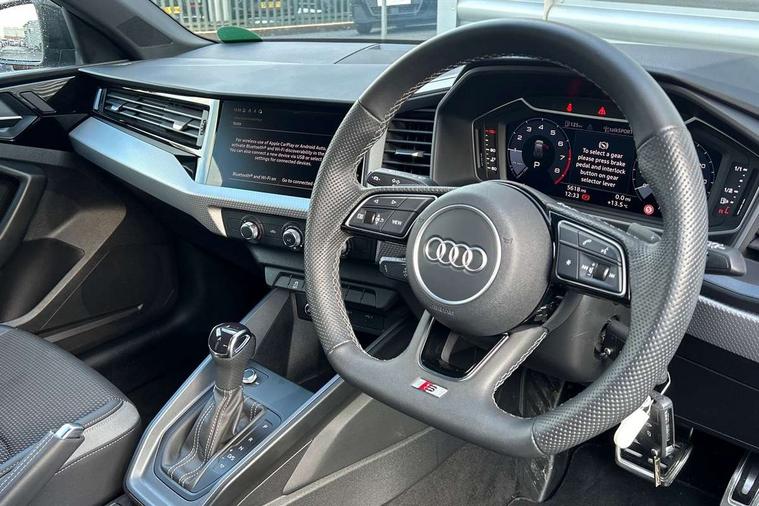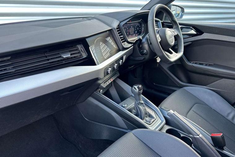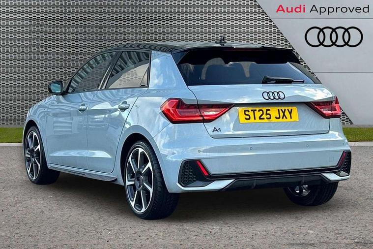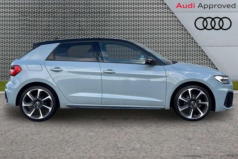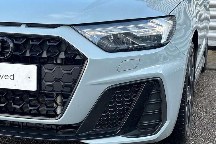 10.25" Digital instrument cluster display classis style instrument dials + speed, odometer, time, outside temperature, telephone menu + fuel level warning, Advanced driver attention and drowsiness monitor, Audi connect emergency call and service, Audi remote connect and control, Audi smartphone interface, Bluetooth interface, Camera based traffic sign recognition, Cruise control, Driver's information system, Electromechanical power steering, Lane departure warning system, Rear parking sensor, Service interval indicator, Speed limiter, Start stop system with recuperation, Voice control system, Washer fluid level indicator, Sports suspension, 2 x USB type C connection points, 6 loudspeakers, DAB Digital radio, MMI radio plus with 10.1" colour MMI display screen and MMI touch, Auto dimming rear view mirror, Black side skirts, Body coloured bumpers, Door sill trims with aluminium inlays and logo, Electric front and rear windows, Electrically adjustable, heated, folding door mirrors with integrated LED side indicator, Front side air inlets in grained matt black and C frame in anthracite black, Front wing badges, Headlight cleaning system, Heat insulating glass windscreen and side windows, Heated rear windscreen, High level LED brake light, LED daytime running lights, LED headlights with range control LED rear lights + dynamic rear indicators, Privacy glass, Radiator grille and rear diffuser in matt anthracite black, Radiator protective grille frame in matt aluminium silver, Rain and light sensors, Rear fog lights, Rear side wing doors, Rear wiper, Side front spoiler lips in grained matt black, 12V socket in centre console with two cup holders, 3 rear seats with headrests, 3 seat bench in 2nd row, 3 spoke flat bottomed multi-function plus leather steering wheel with S badging, grips in preforated leather, contrast stitching and paddle shift, 40:60 Split folding rear seat or fully collapsed, Black cloth headlining, Front and rear velour black floor mats with contrast stitching in fine silver, Front head restraints, Front passenger seat, Height and reach adjustable steering wheel, Interior lighting includes roof module, front and rear reading lights and right luggage compartment lighting, ISOFIX child seat mounting for front passenger and outer rear seats including top tether attachment point of outer rear seats, Leather gear knob with aluminium trim, Leather handbrake grip, Manual air conditioning, Manual height adjustable for driver and front passenger seat, Manually adjustable lumbar support in front seats, Stainless steel pedals, Ambient lighting package - A1, Black styling pack - A1 Sportback Black Edition, Luggage compartment pack - A1, 3x3 point rear seatbelts, Audi pre-sense front with pedestrain and cyclist recognition, Brake assist function, Driver and front passenger airbag with front side and head airbags, Electronic Stability Control including ABS, EBD, ASR and EDL, Front passenger airbag deactivation switch, Hill hold assist, Manual rear child locks, Seatbelt height adjustment for front seats, Seatbelt monitoring, Tyre pressure loss indicator, Warning triangle and first aid kit, Anti theft alarm, Anti theft wheel bolts, Immobiliser, Remote control key with safelock, Aluminium trim for control switches, air vents and digital instrument cluster, Black dashboard, Silver grey inlays polygon structure in diamond paint finish, Structured grey accent surfaces insert of air vents, interior door handle recesses and centre console in quartz paint finish,