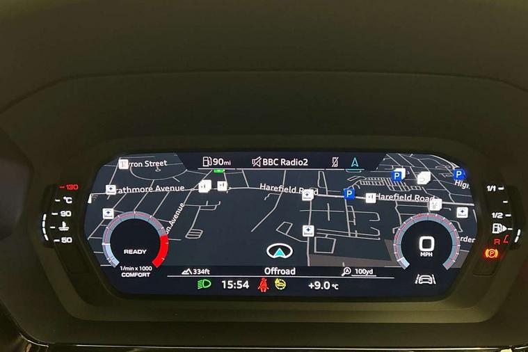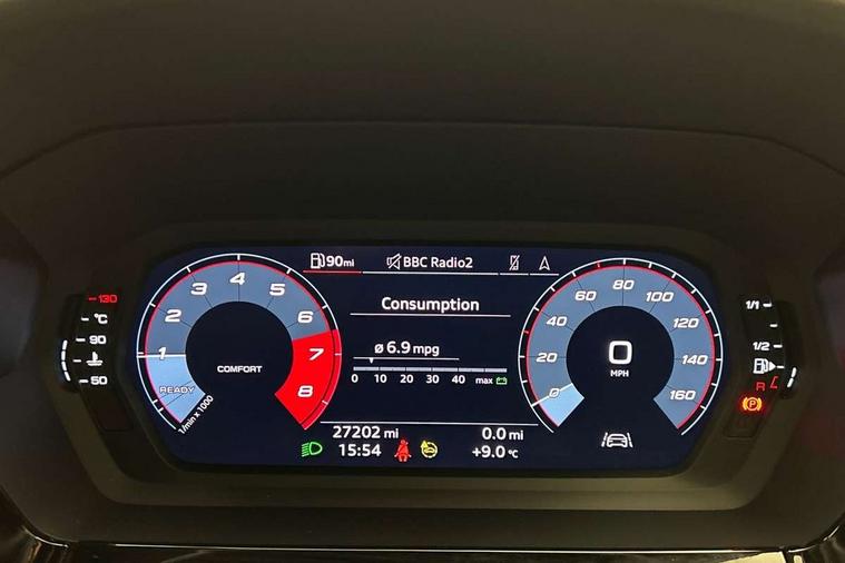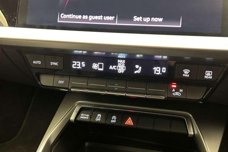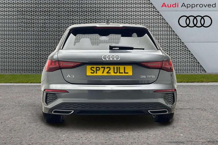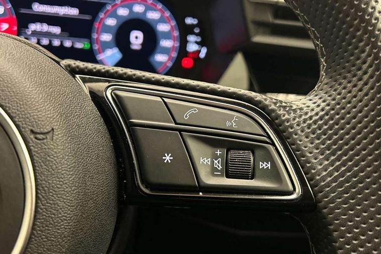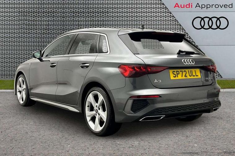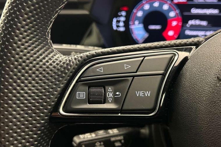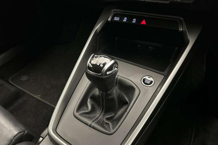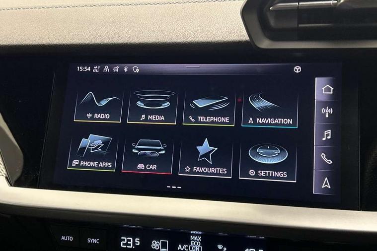 Audi drive select (Auto, Comfort, Dynamic, Efficiency and Individual), Audi smartphone interface, Audi Virtual Cockpit - 10.25" digital and colour instrument cluster, Automatic start/stop system with recuperation, Bluetooth interface, Collision avoidance assistant, Cruise control, e-Call (emergency call), Electromechanical power speed sensitive steering, Lane departure warning system, MMI Navigation Plus with high resolution 10.1" colour touch screen display, Rear parking sensors, Service indicator, Trip computer, Voice control system with natural language interaction, 2xUSB-C connection with data and charging functions, 6 passive loudspeakers, DAB Digital radio, 3rd brake light, Acoustic glass windscreen, Aluminium window trim, Auto dimming frameless rear view mirror, Electrically adjustable/heated/folding/auto dimming door mirrors with integrated LED indications + kerb view function for passenger side, Front electric windows, Illuminated aluminium inserts front door sills with S logo, LED daytime running lights, LED headlights with LED rear lights and dynamic rear indicators, Light and rain sensors, Privacy glass - dark tinted rear window, rear door and side windows, Rear electric windows, Rear side air outlets in grained matt black, Rear side wing doors, Rear wiper, S line bumpers, S roof spoiler, 12V socket and storage compartment in front centre console, 3 seat bench in 2nd row, 40/20/40 split folding rear seat bench with cupholder, Black cloth headlining, Dual zone electronic climate control, Front and rear centre armrest in leather, Front and rear headrests, Front/rear floor mats, Height and reach adjustable steering wheel, Illuminated vanity mirror, Interior lighting - glove compartment light and right hand side, Luggage compartment floor covering, Manual boot compartment lid, Manually adjustable front seats, Seat side bolsters, Single front passenger seat, Stainless steel pedals and front footrest in black, Twin leather upholstery with front sports seats S embossed logo, Aluminium interior elements pack - A3 Sportback, S line styling pack - A3 Sportback, 3x3 point rear seat belts, Audi pre sense front, Driver and front passenger airbag with passenger airbag deactivation, Electronic Stabilisation Control (ESC) including ABS, ASR and EDL, First aid kit with warning triangle and 2 safety vests, Front side airbags with head airbags and interaction airbag, Pre-sense front with pedestrian and cyclist detection, Seatbelt monitoring, Tyre pressure loss indicator, Anti theft alarm, Anti-theft wheel bolts, Immobiliser, Manual child locks, Remote control central locking, Accent surfaces in the dashboard and centre console in platinum grey silk effect paint finish, Dark spectrum aluminium inlays,