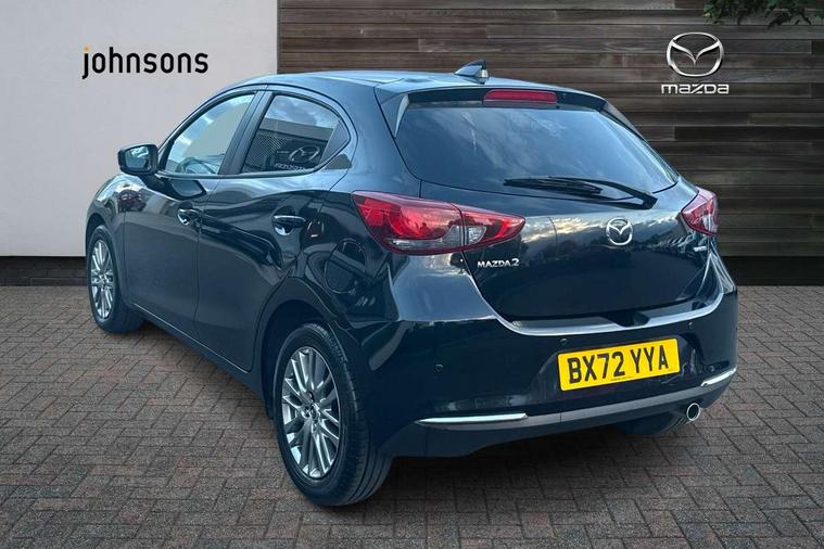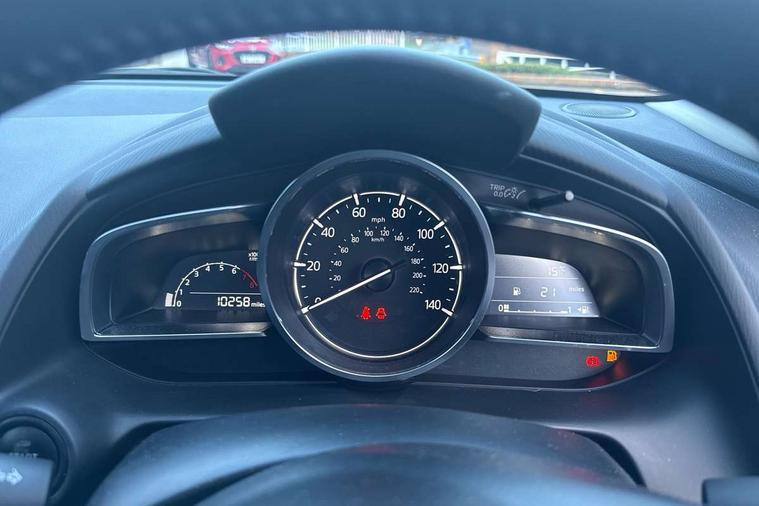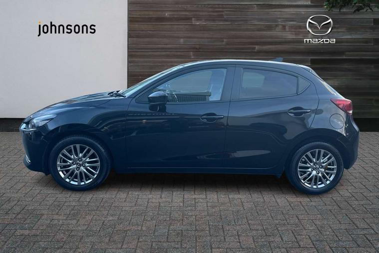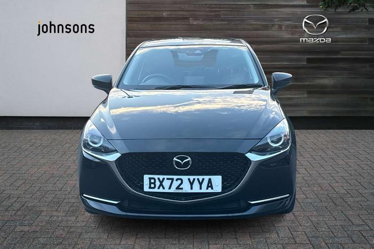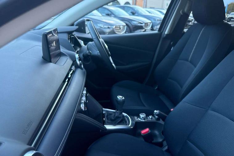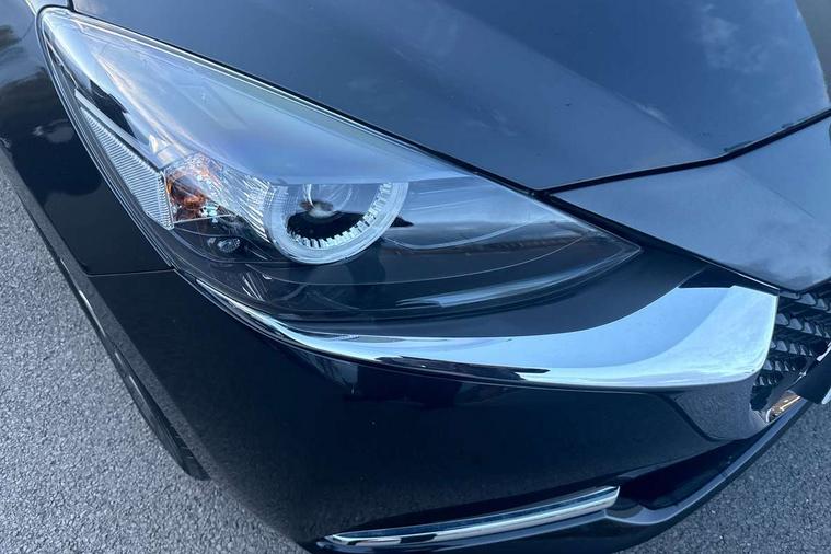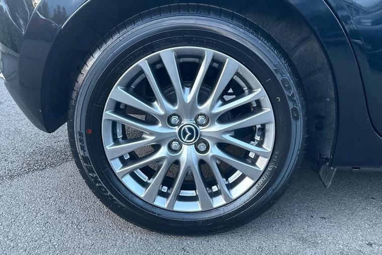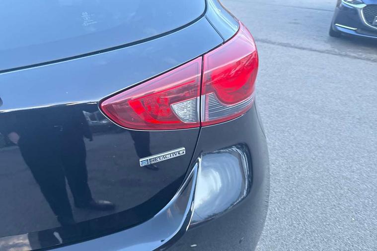 Adjustable speed limiter, Analogue speed display meter, Cruise control, Digital instrument cluster, Digital rev counter, E-call, Emergency stop signalling system, Engine start/stop button, Integrated bluetooth, Lane departure warning system, Lane keep assist, Mazda connect with 8" colour touch screen, Navigation system, PAS, Rear parking sensor, Service indicator, Trip computer, Wireless Apple CarPlay and wired Android Auto, i-stop, AM/FM/DAB radio with 6 speakers with USB and AUX inputs, Multimedia Commander including separate volume dial, Steering wheel mounted audio/bluetooth controls, Auto dimming rear view mirror, Auto headlight levelling, Body colour door mirrors, Body coloured front bumper with bright lower bezel, Body coloured rear bumper with bright lower mouldings, Chrome exhaust tailpipes, Chrome finish signature wing on front grille, Chrome front lower bezel, Chrome rear lower bezel, Coming/leaving home lighting function, Dusk sensing headlights, Electric adjustable/heated/folding door mirrors, Electric front/rear windows with one touch auto up/down for driver's window, Gloss black front grille, LED Headlights, LED indicator lights, LED third brake light, Privacy glass, Rain sensing front wipers with adjustable sensitivity and speed, Rear side wing doors, Rear wiper, Shark fin antenna, Signature LED daytime running lights, 3 seat bench in 2nd row, 60/40 split rear seats, Climate control air conditioning, Cloth upholstery, Driver, Front passenger and two rear grab handles with coathooks, Drivers seat manual slide recline and height adjustment, Drivers/front passengers covered vanity mirrors and drivers ticket holder, Folding rear seats, Front centre storage with two cupholders, Front head restraints, Front passenger and driver door pockets, Front passenger seat manual slide, recline and height adjust, Front passenger seatback pockets, Gear shift indicator, Glovebox, Interior courtesy light with integrated spotlight, ISOFIX child seat anchorage points attached on outer rear seats, Leather handbrake, Leather steering wheel and gear knob, Luggage compartment light, Satin silver dials, Single front passenger seat, Three height adjustable rear head restraints, Tilt/telescopic adjustable steering wheel, 2x3 point front seatbelts with pre-tensioners, 3 point seatbelts on all rear seats, Anti-lock braking system (ABS), Autonomous emergency braking, Collision mitigation braking system, Dynamic stability control + Traction control, ESP, Front and rear curtain airbags, Front driver, passenger and rear seat seatbelt warning, Front dual stage driver and single stage front passenger airbags, Front side airbags, Front smart city brake support, G-Vectoring control plus, Hill launch assist, Manual child lock in rear doors, Passenger airbag cut-off switch, Tyre pressure monitoring system, Deadlocking system, Immobiliser, Power door locks, Remote central locking, Smart keyless entry, Thatcham accredited alarm and immobiliser, Dark blue soft touch dashboard, 16" Bright finish alloy wheels, Emergency tyre repair kit,