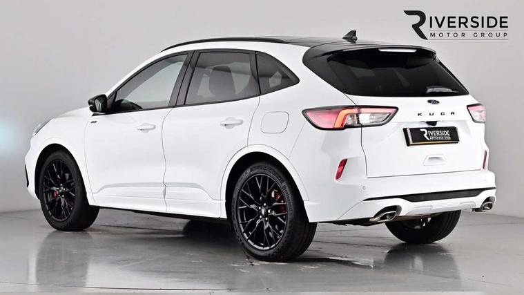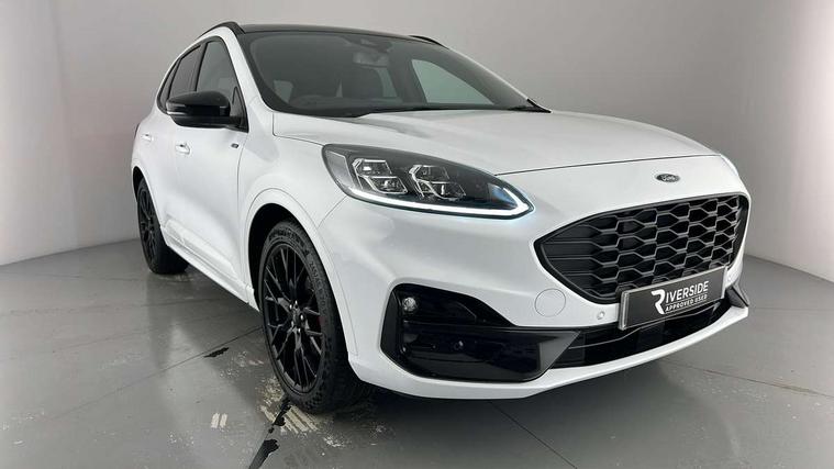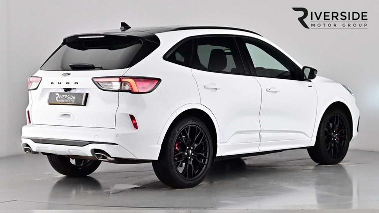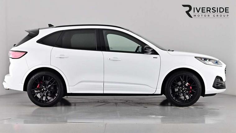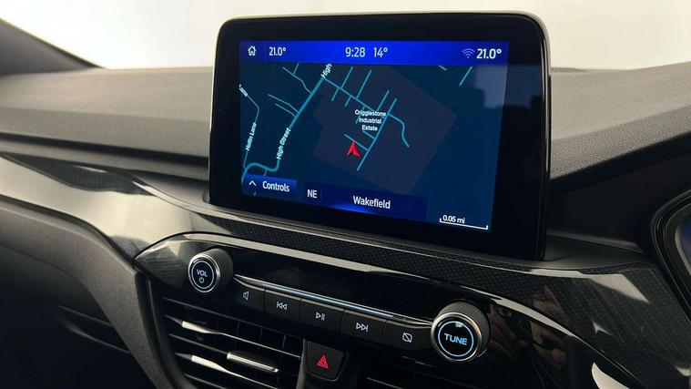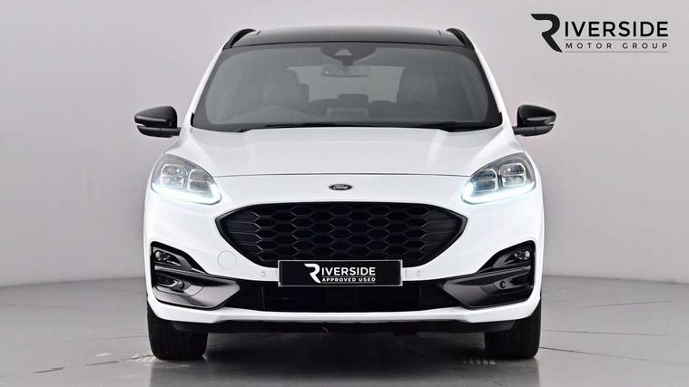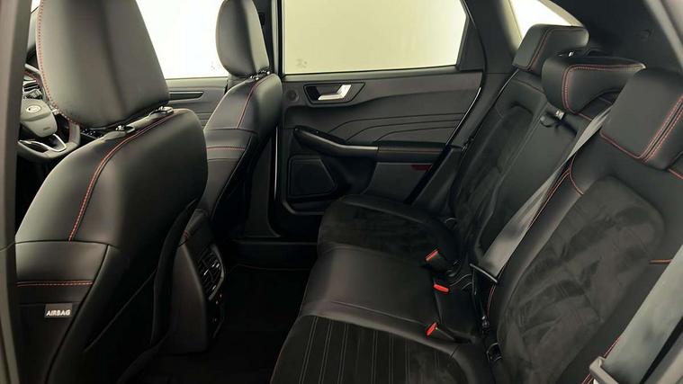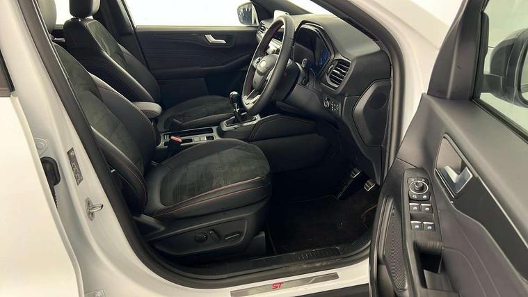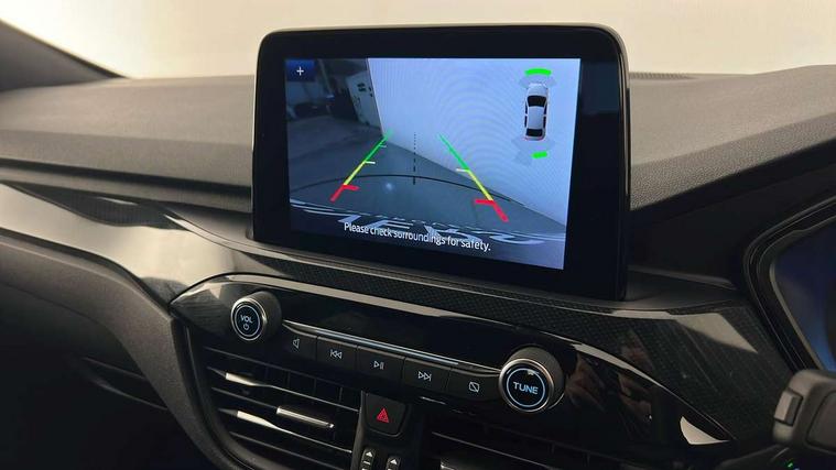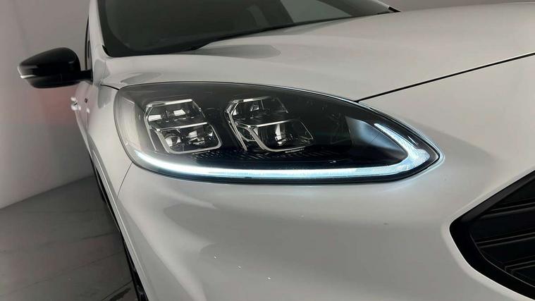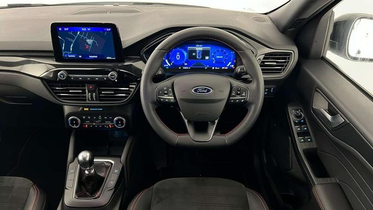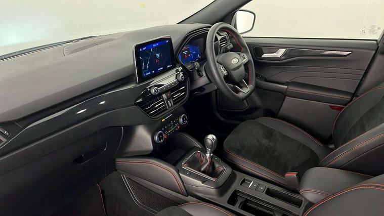 12.3" digital colour instrument cluster, Ford easy fuel, Ford SYNC 3 with 8" TFT LCD touchscreen, App Link, andriod auto/apple carPlay, emergency assistance and navigation with Ford pass connect, Front and rear parking sensors, Hands free power tailgate, Lane keeping aid with lane departure warning, Power assist steering, Rear view camera, Selectable drive modes, Service interval indicator, Sports suspension, Twist beam rear suspension, B&O premium audio system with 10 speakers and subwoofer, 2 USB ports, DAB radio/CD, Auto headlamps with high and low beam, Black roof rails, Body colour bumpers, Day/night rear view mirror, Front LED fog lamps, Large rear roof spoiler, LED daytime running lights, LED rear lights, Power folding, electrically adjustable and heated door mirrors with puddle lights, Power front/rear windows with global close, Power opening panoramic roof, Quickclear heated windscreen, Rain sensing wipers, Rear privacy glass, Rear side wing doors, Rear wiper, ST Line front scuff plates, Third brake light, Twin exhausts, 2nd row sliding seats with 60:40 split, Alloy pedals, Centre console with electronic parking brake, Dark headlining and pillars, Electronic automatic temperature control (EATC), Flat bottomed leather steering wheel in sensico with red stitching, Front and rear head restraints, Heated passenger and driver seats, Heated rear seats, Heated steering wheel, Partial premium touch Sensico with black cloth inserts and red stitching, Rear centre head restraint, Single front passenger seat, Sports seats, ST Line front and rear floor mats, ST Line gear knob, ST-Line body styling kit with black body styling elements pack, 3x3 point rear seatbelts, Airbags - front driver/passenger, front and rear curtain, Drivers knee airbag, Electronic stability control (ESC) and ABS, Ford MyKey Gen 2 safety system, Manual child proof rear door locks, Post collision braking, Pre collision assist with autonomous emergency braking, Rear seat Occupancy alert, Red brake calipers, Tyre pressure monitoring system, Engine immobiliser, Keyless entry and Ford power start button (Keyless start), Locking wheel nuts, Remote powered central double locking doors, Thatcham category 1 alarm, 20" Black Ford performance alloy wheels,