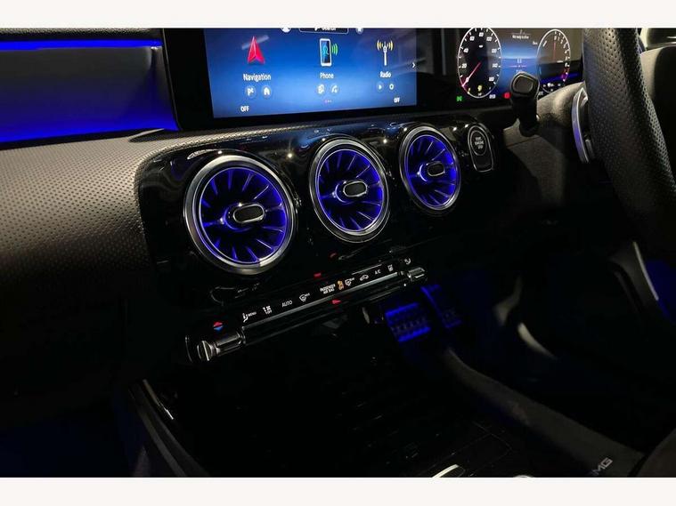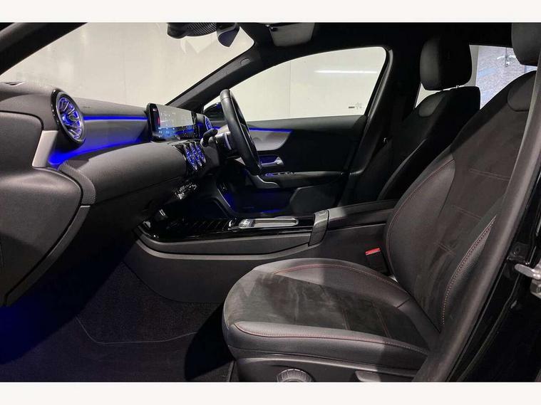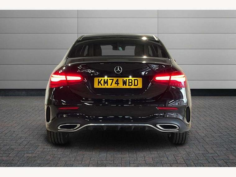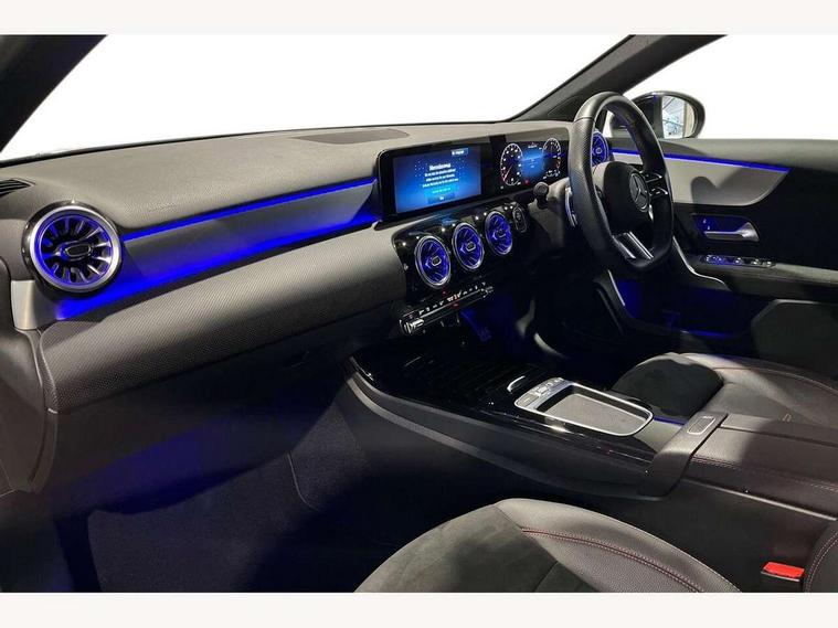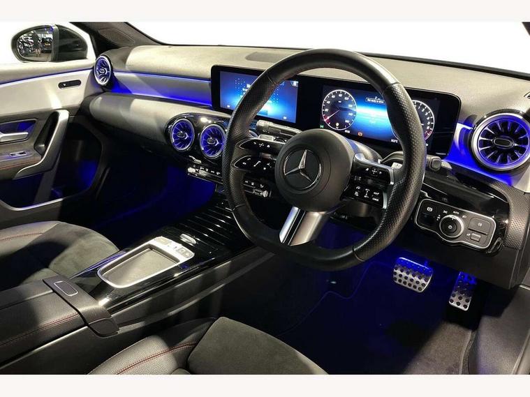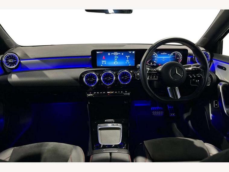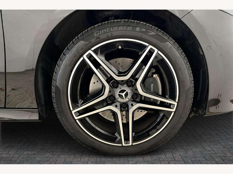 10.25 inch touchscreen central media display, 10.25" Digital instrument cluster display screen, Acoustic ambient protection, Attention assist, Blind spot assist, Brake pad wear indicator warning light, Car wash mode, Cruise control + speed limiter, Direct steering, Direction indicators with lane change function, Dual bluetooth interfaces, DYNAMIC SELECT with a choice of driving modes (ECO, Comfort, Sport and Individual), ECO start/stop function, Engine start/stop button, Fingerprint scanner, Fluid level warning indicator for fuel, oil, coolant and washer fluid, Fluorescent jacket for driver, Hard-disk navigation, Hey Mercedes Voice activation, Lamp failure indicator, Lane keeping system, Mercedes me connect including emergency call system, accident recovery, breakdown and maintenance management, Mercedes me remote services, Outside temperature gauge, Owners manual in English, Pre-installation of private car share, Preinstallation for Mercedes Benz link, Remote and charging services plus, Remote boot closing, Service indicator (ASSYST), Smartphone integration with Apple CarPlay and Android auto, Speed limit assist, Speed sensitive power steering, Trip computer in multifunction display with current consumption indicator, Wireless charging, Charging system - AC charging system rated at 11kW, Charging system - DC charging system rated at 22 kW, Comfort suspension, Mode 2 charging cable for domestic socket with 5m up to 1.8kW, Mode 3 charging cable for wallbox and public charging stations with 4m upto 22 kW, DAB Digital radio, MBUX multimedia system, Mercedes Benz sound system (100 W) with 6 speakers, 4 Electric Front and Rear windows, Adaptive brake lights, AMG body styling - AMG front apron with front splitter and AMG rear apron and visible exhaust tailpipe trim elements, Body colour bumpers, Body colour door handles with chrome inserts, Body colour side skirt, Body coloured door mirrors, Chrome beltline strips, Diamond radiator grille with pins in fine star pattern, Electric adjustable and heated door mirrors with integrated LED side indicators, Exhaust system with 2 visible tailpipe trim elements and rear apron, Headlamp assist automatic headlamp activation, Heat insulating dark tinted rear and rear side windows, Heated glass rear windscreen + timer control, LED High Performance headlamps including integral LED daytime running lamps and adaptive highbeam assist, LED tail lamp, Privacy glass, Radio aerial, Rain sensing windscreen wipers with two sensitivity settings, Rear boot, Rear fog lights, Rear side wing doors, Third brake light featuring LED technology, Window line trim strip in chrome, 3 seat bench in 2nd row, 3 Spoke flat bottom leather multi function steering wheel with perforated leather in grip area, 4 way lumbar support, 40:20:40 split folding rear seats, Air conditioning - One zone thermatic automatic climate control with automatically controlled air distribution, AMG floor mats, Automatic child seat recognition sensor, Black air vents with surround in silver chrome, Black roof lining, Brushed stainless steel sports pedals with rubber studs, Charging socket, Front centre armrest with stowage, Front door sills with Mercedes Benz lettering, Front seat backs luggage nets, Galvanished gear shift paddles on steering wheel, Heated front seats, Height/reach adjustable steering column, Interior lighting - 64 colour Ambient lighting, Interior mirror with reading lamps in black and frameless, Pre-entry climate control, Rear armrest with 2 cupholders, Seat occupancy sensor for front passenger seat, Single front passenger seat, Sports seats with adjustable head restraints, Stowage compartment in centre console with retractable cover, Sunvisors with illuminated vanity mirrors, Twin front cupholders, Keyless go comfort pack - A Class, Light and sight package - A Class, Mirror package - A Class, Parking pack with 180 degree view - A Class, Seat comfort pack - A Class, USB pack plus - A Class, 3 rear 3 point seatbelts, ABS with Brake Assist, Active bonnet, Active brake assist includes forward collision warning system with autonomous braking, Adaptive brake assist with hold function and hill start assist, Black seatbelts, Bonnet with power domes, Childproof locks manually operated for rear doors and electrically operated for rear power windows, Crash responsive emergency lighting, Driver and passenger head and side airbags, Drivers knee airbag, Dual stage driver/passenger airbags, Electronic parking brake, ESP curve dynamic assist, ESP with ASR, Front and rear seatbelt reminder, ISOFIX and top tether child seat fixing points in two outer rear seats, Perforated front brake discs, Radar based regeneration, Tyre pressure monitoring system, Warning triangle and first aid kit, Window airbags, Alarm system/interior protection/immobiliser, Guard 360 degree vehicle protection, Remote central locking and crash sensor with emergency opening function, Light longitudinal grain aluminium trim, 18" AMG 5 twin spoke light alloy wheels, aerodynamically optimised, painted in black with high sheen finish, Summer tyres, Tirefit sealant kit,
