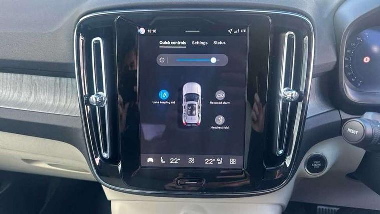 12.3" Progressive Driver Display, 360 degree surround view parking camera with side proximity sensors, 9" centre console portrait touch screen, Adjustable steering wheel force, Android auto (Wired), Apple carplay (wired), Bluetooth handsfree system, Driver alert control, Driver assistance (pilot assist and adaptive cruise control), Driver awareness - Blind spot information system with steer assist, cross traffic alert with autobrake and rear collision warning and mitigation, E-call, Front park assist, Google automotive services - Enabled entertainment apps, navigation with google maps, voice recognition with google assistant, Hands free power tailgate, Intelligent speed assistance, Lane keeping aid, Oncoming Lane Mitigation, Rear park assist, Speed sensitive steering, Volvo cars services with app - Driving journal, emergency and breakdown call, engine remote start, remote door locking/unlocking and vehicle dashboard, Wireless/Inductive Mobile Phone Charging, Automatic transmission with start/stop and manual change functions, Dynamic chassis, DAB Digital radio, Premium Sound by Harman Kardon, Dolby Pro Logic II Surround Sound, Dirac Unison, 12 speakers/600W and subwoofer, Steering wheel mounted remote controls, Active bending pixel LED headlights with adaptive shadow technology, Active high beam incorporating daytime running lights, Adaptive brake lights with high level LED brake lights, Auto dimming feature for exterior door mirrors, Auto dimming interior mirror, Automatic headlamp levelling, Dark tinted windows - rear side windows and rear screen, Front aluminium tread plates, Front and rear electric windows, Headlight cleaning system, High gloss black front and rear skid plate, High gloss black front bumper deco, High gloss black mesh front grille with high gloss black surround, High gloss black window trim, Home safe and approach lighting, Integrated roof rails in high gloss black, LED front fog lights with cornering function, Power glass tilt and slide panoramic sunroof with sun curtain, Puddle lights, Rain sensor with automatic windscreen wiper activation, Rear side wing doors, Rear wiper, Roof antenna, Roof spoiler, Visible VIN plate, 12V socket in front tunnel console and luggage compartment, 2-Zone electronic climate control with CleanZone air quality system and pollen filter, 3 seat bench in 2nd row, 3 Spoke tailored steering wheel with chrome trim, 60/40 versatile split folding rear seat, Centre console cupholders and storage, Flexible load floor and grocery bag holder, Floor mats, Front cabin courtesy lights, Front door pocket, front cupholder, ambient front door, rear reading, rear courtesy, instrument panel and tailgate lighting, Front footwell illumination, Front headrests, Front reading lights, Front seat cushion extensions, Front side step illumination (under door), Glovebox bag hook, Heated front seats, Height/reach adjustable steering column, High gloss centre tunnel deco, Illuminated glovebox, Illuminated luggage compartment, Illuminated vanity mirrors + ticket holder, Integrated waste bin, Isofix attachments on outer rear seats, Load cover, Load protection net, Multi directional lumbar support for driver and passenger seat, Power driver seat with memory + exterior mirrors memory, Power folding rear headrests, Power passenger seat, Rear armrest with cupholders, Single front passenger seat, Underfloor cargo storage, Climate pack without heated front seats - XC40, 3x3 point rear seatbelts, City safety with steering support with Pedestrian + cyclist + front collision warning with full auto brake and rear auto brake, Driver and passenger airbags, Drivers knee airbag, Electronic parking brake with auto hold, First aid kit, Front and outer rear seatbelt reminder and pretensioners, Front seats SIPS airbags, Hill descent control, Hill start assist, Inflatable curtain, Passenger airbag cut-off device, Power child locks on rear doors, Road sign information display, Run off Road Protection, SIPS (Side Impact Protection System), Slippery road and hazard light alert, Stability and Traction Control with Spin control, Engine Drag Control and Corner Traction Control, Tyre pressure monitoring system, Vehicle deceleration control with Anti-lock Brake System, Electronic Brake Distribution and Emergency Brake Assist, Warning triangle, WHIPS whiplash protection system - front, 2 x Key integrated remote control central locking including with deadlocking system and auto open/close windows and sunroof, Anti-theft alarm including immobiliser/volume sensor + level sensor, Keyless drive includes keyless entry and keyless start, Locking wheel nuts,