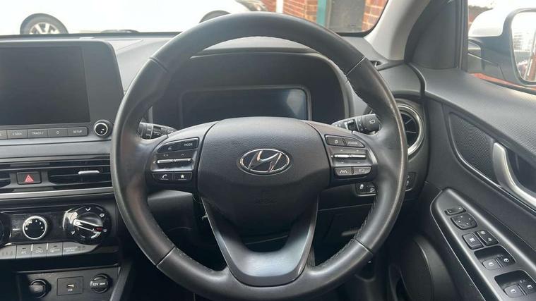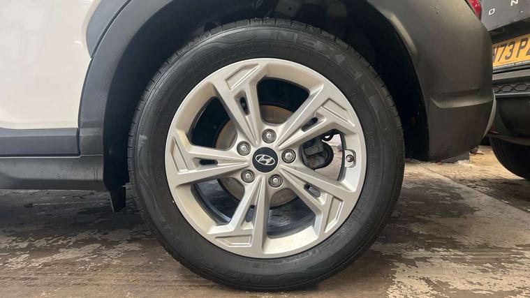 8" Touchscreen display audio + smart device integration, Bluetooth connectivity, Cruise control + speed limiter, Digital clock, Driver attention warning, Driver supervision instrument cluster with 10.25" LCD display, eCall emergency call system, Forward collision avoidance assist with pedestrian detection, Lane follow assist, Lane keep assist, Leading vehicle departure alert (LVDA), Parking system with rear camera and guidance system, PAS, Phone connection with apple carPlay and android auto, Rear parking sensor, Roadside assistance, Tailgate, Windscreen washer fluid sensor and warning indicator, 6 speed intelligent manual transmission, 6 speakers (2 front, 2 tweeters, 2 rear), Front USB ports, RDS and Digital DAB, Steering wheel mounted audio/phone controls, Automatic headlights with dusk sensor, Body colour door mirrors and handles, Door mirror integrated indicators, Electric front/rear windows with drivers one touch/anti-trap, Electrically adjustable and heated door mirrors, Halogen headlights, Halogen rear lights, LED daytime running lights, Positioning Lights - LED, Rain sensor, Rear roof spoiler with integrated LED brake light, Rear side wing doors, Rear wiper, Roof rails, Tinted glass with front door glass and windscreen with shade band, Variable front intermittent wipers, 12V power outlet in front console, 3 seat bench in 2nd row, 60/40 split folding rear seat, Adjustable head restraints, Air conditioning, Centre interior light, Cloth upholstery, Door scuff plate, Driver's seat height adjustment, Driver/passenger sunvisors and illuminated vanity mirrors, Front interior light, Front passenger seat manual adjustments, Height/reach adjustable steering column, Isofix rear child seat fastenings, Leather wrapped steering wheel and gear knob, Luggage compartment lighting, Luggage hooks, Metal paint effect interior door handles, Parcel shelf, Rear centre console with air vents, Single front passenger seat, Sunglasses holder, Vertical adjustment rear head restraints, Trailer wiring package - Kona, Airbags - front, front side and curtain airbags, Anti-lock brake system (ABS), Childproof rear door locks, Downhill brake control, EBD + Brake Assist, Electronic stability control, Fasten seatbelt reminder, Fixed 3 point for second row centre passenger seatbelt, Front seatbelt pretensioners, Height adjustable front seatbelts, Hill start assist control (HAC), Manual parking brake, Passenger airbag deactivate switch, Rear seat alert, Traction control, Tyre pressure monitoring system, Alarm/immobiliser, Deadlocks, Folding key, Locking wheel nuts, Remote central locking, 17" Alloy wheels,
