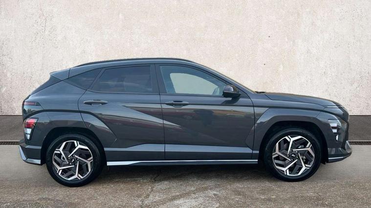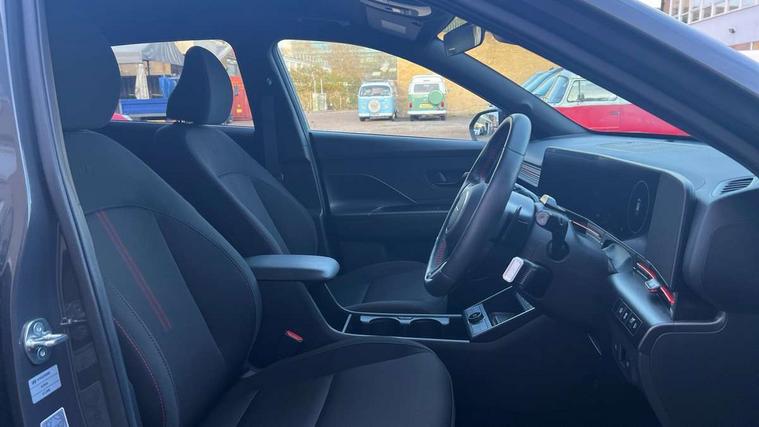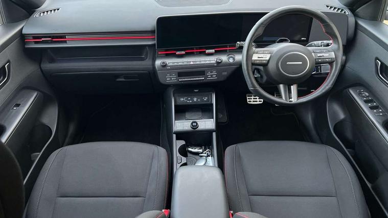 12.3" touchscreen centre console display satellite navigation with bluelink, live services and mapcare, Bluetooth connectivity with voice recognition, Digital clock, Driver status monitor (DSM), Driver supervision instrument cluster with 12.3" LCD display, eCall emergency call system, Feature on demand - Enabled, Forward collision avoidance assist (FCA 1.5) - Car, pededstrian, cycle and junction turning, Front parking sensor, HDA - Highway Drive Assist Level 1.5, Height adjustable power tailgate, Intelligent speed limit assist, Lane follow assist, Lane keep assist, Leading vehicle departure alert (LVDA), Parking system with rear camera and guidance system, PAS, Rear parking sensor, Roadside assistance, Smart cruise control with stop and go functionality, Smartphone integration compatible with Apple CarPlay and Android Auto, Windscreen washer fluid sensor and warning indicator, Wireless phone charging pad, 2 front USB C and 2 rear USB C charging points, DAB Digital radio, Speakers - Front, rear and tweeters, Steering wheel audio, phone and cruise controls, Auto dimming rear view mirror, Automatic headlights with dusk sensor, Automatic windscreen wipers with rain sensor, Body colour bumpers, Body colour exterior door handles, Body coloured wheel arch inserts, Door mirror LED indicator lights, Electric front windows with anti-trap mechanism and one touch control, Electric rear windows, Electrically adjustable and heated door mirrors, Full LED MFR headlights, Gloss black door mirrors, LED daytime running lights, LED upper and lower rear lights, Power folding door mirrors, Privacy glass - Rear windows and tailgate, Rear roof spoiler with integrated LED brake light, Rear side wing doors, Rear wiper, Roof rails, Solar glass with front door glass and windscreen, Tinted glass in front and rear doors, Windscreen auto defog function, 12V power outlet in front console, 2 zone climate control, 3 seat bench in 2nd row, 40/20/40 split folding rear seat, Adjustable head restraints, Aluminium pedals, Ambient lighting, Driver and passenger front seat pockets, Driver's seat lumbar support, Driver/passenger manual seat height adjustment, Driver/passenger sunvisors and illuminated vanity mirrors, Floor mats, Heated front seats, Heated rear seats, Heated steering wheel, Height/reach adjustable steering column, Isofix rear child seat fastenings, Leather wrapped steering wheel, LED centre interior light, LED front interior light, Luggage compartment LED lighting, Luggage shelf, Metal paint effect interior door handles, N Line cloth upholstery, Parcel shelf, Rear centre armrest, Rear centre console with air vents, Shift by wire SBW, Single front passenger seat, Vertical adjustment rear head restraints, N Line exterior design pack - Kona, Trailer wiring package - Kona, Airbag - front, front side, curtain and centre front airbag, Anti-lock brake system (ABS), Childproof rear door locks, Downhill brake control, EBD + Brake Assist, Electric parking brake, Electronic stability control, Fasten seatbelt reminder, Fixed 3 point for second row centre passenger seatbelt, Front seatbelt pretensioners, Height adjustable front seatbelts, Hill start assist control (HAC), Passenger airbag deactivate switch, Rear seat alert, Traction control, Tyre pressure monitoring system, Alarm/immobiliser, Deadlocks, Folding key, Locking wheel nuts, Remote central locking, Smart key with keyless entry and engine start/stop button, Five year annual vehicle health checks, Temporary mobility kit (TMK),