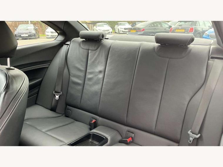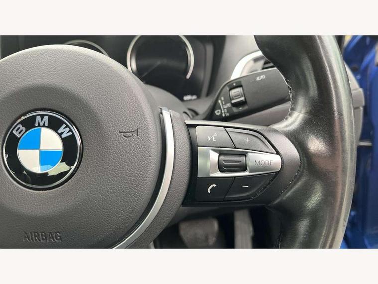 Auto start-stop, BMW Online services, BMW remote services, BMW Teleservices, Door/boot open warning, Front and rear Brake pad wear indicator, Instrument cluster with speedometer with miles per hour read out, tachometer and fuel gauge, Lights on warning by audio warning signal when ignition is switched off, Oil temperature display via on board computer in instrument cluster, On board computer - average speed+fuel consumption, service interval, clock/date, odometer/trip meter, outside temperature display and ice warning, Optimum shift indicator, Personal Profile - automatic lock when driving away selectable, Real time traffic information, Speed limiting function, Traffic message channel (TMC), 8 speed automatic transmission, Battery age recognition function, Drive performance control - ECO PRO, comfort, sport and sport+ modes, Engine cover with BMW roundel twin power turbo designation, Oil dipstick, DAB Digital radio, 2 speed adjustable intermittent wipers with wash/wipe function, Automatic headlight beam throw control, Automatically dimming rear view mirror, Body colour door handles, Body colour door mirrors, Body colour front bumper, Body colour roof mouldings, Chrome single exhaust tailpipe, round, left, Clear lenses direction indicator lights, Darkened rear lights with LED light bars, Daytime driving lights, Direction indicator side lights integrated exterior mirrors, Dynamic brake lights, Electric windows - front and rear, with open/close fingertip control, anti-trap facility and comfort closing, Follow me home headlights, Front air inlet with high gloss black finish, Front and rear bumper system with replaceable deformation elements, Green tinted heat protection glazing, Headlight range control, Heated windscreen washer jets, Heated, electrically adjustable exterior mirror aspheric on driver side, convex on passenger side, High gloss shadow line, High level third brake light, LED Headlights, LED welcome home lights, Lightweight engineering, M aerodynamic body styling, M logo designation in chrome on left and right front wings, Model designation, Model specific design elements, Rain sensor with automatic headlight activation, Rear bumper with high gloss black finish, Rear fog lights, Rear window aerial, Reversing light in rear light cluster, Shark fin roof aerial, Visible VIN plate, 12V power socket in centre console, 12V power socket in passenger footwell, 3 spoke nappa leather steering wheel, Anthracite headlining, Conditioned based service, Front and rear side armrests integrated into door trim, Front door sill finishers with M designation, Front door storage bins, Front floor mats in velour, Front head restraints, Front sliding armrest, Front sports seats with electric side bolster adjustment, Glove box handle with chrome surround, Interior lighting, front centre over interior mirror and rear centre automatic interior light activation when door is opened, Isofix child seat for two outer rear seats, Leather gearknob, Leather handbrake lever, Luggage compartment access via BMW roundel, Manually adjustment steering wheel column, Multi-function controls for steering wheel, Rear coat hooks, Rear folding head restraints, Storage compartment in rear centre console, Two cupholders with sliding cover and inlay mat, 2 rear 3 point safety belts, Active differential brake (ADB), electronic differential lock in DSC-OFF mode, Airbag - Front driver and passenger, front and rear head, front side, curtain head protection, manual deactivation of front passenger airbag possible, Anti lock braking system (ABS) with brake assist, Automatic Stability Control (ASC), BMW emergency call, Brake drying, Brake energy regeneration, Braking readiness, Cornering brake control (CBC), Crash sensor activating central locking release with hazard warning lights and interior lighting + battery safety cut-off, Dynamic brake control, Dynamic stability control + (DSC+), Dynamic Traction Control - DTC, Front pyrotechnic belt tensioners and belt force limiter, rear coaded belt buckles, Hill start assist, Rear brake discs, Seat belt security check for driver and front passenger, Side impact protection, Twin horns, Tyre pressure monitoring with 3 level warning strategy, Ventilated front disc brakes, Warning triangle and first aid kit, Central locking switch for all doors, fuel filler cap and luggage compartment, Check control system for monitoring of lights and door/luggage compartment open warning, Locking wheel bolts, Remote control including integrated key with blue insert, Start/stop button with Comfort Go keyless engine start and auto Start/stop deactivation button, Thatcham category 1 alarm + immobiliser, Reduced rolling resistance tyres,