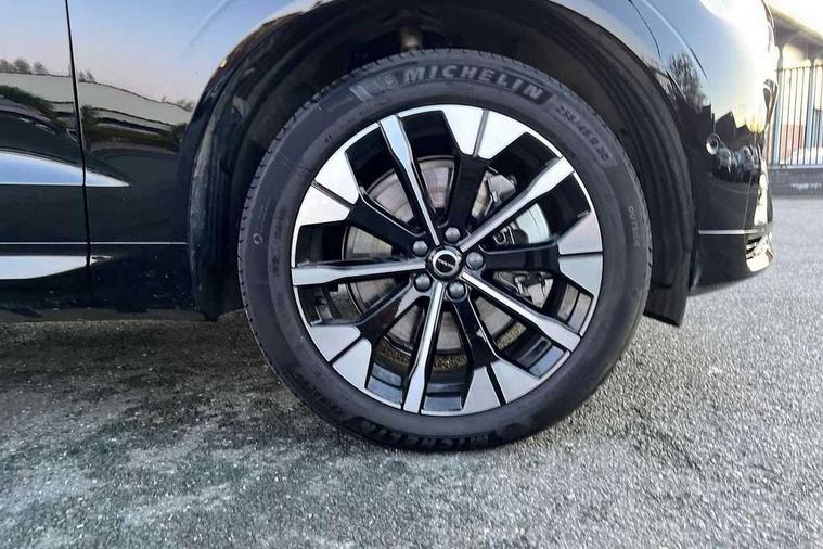 11.2" centre console touch screen, 12.3" Progressive Driver Display, 360 degree surround view parking camera with side proximity sensors, Adaptive cruise control, Adjustable steering wheel force, Android auto (Wired), Apple carplay (wired), Bluetooth handsfree system, Drive mode settings, Driver alert control with lane keeping aid, Emergency services call system, Front and rear park assist, Google Automotive Services, Intelligent speed assistance, Oncoming Lane Mitigation, PAS, Power operated tailgate with handsfree opening and closing, Service interval indicator, Speed limiter, Speed sensitive steering, Trip computer, Volvo cars services with app, Volvo on call with App, Wireless/Inductive Mobile Phone Charging, 2 phase on board charger 6.4kW (home charging limited to 3.7kW), 6m 3 phase 16amp Type 2 / mode 3 charge cable, 8 speed automatic transmission with start/stop + manual change functions, Electric rear axle drive, Recharging port located in nearside front wing, DAB Digital radio, Low speed exterior sound speaker, Premium Sound by Harman Kardon, dirac unison, dolby pro logic II surround sound, 13 speakers/600W output and fresh air subwoofer, Steering wheel remote infotainment controls, Adaptive brake lights with high level LED brake lights, Auto dimming interior + exterior mirrors, Automatic headlight levelling system, Automatic LED Headlights + Active high beam incorporating daytime running lights, Electric adjustable/heated/auto power folding door mirrors, Electric front+rear windows, Front aluminium tread plates, Heated front windscreen, High gloss black door mirrors and window surround, High gloss black front and rear bumper decoratives, High gloss black mesh front grille with high gloss black surround, Home safe and approach lighting, Integrated roof rails in high gloss black, Puddle lights, Rain sensor with automatic windscreen wiper activation, Rear side wing doors, Rear wiper, Roof antenna, Roof spoiler, Tinted windscreen, Visible VIN plate, 12V socket in front tunnel console and luggage compartment, 2 zone electronic climate control with Clean zone air quality system and pollen filter, 3 seat bench in 2nd row, 3 Spoke tailored steering wheel with chrome trim, A-pillar parking ticket holder, Air purifier particulate matter (PM) 2.5 filter, B Pillar ventilation, Bright metal luggage scuff plate, Centre console cupholders and storage, Charcoal floor mats, Front and rear courtesy lights, Front and rear door pocket illumination, Front cupholder illumination, Front footwell illumination, Front reading lights, Front seat cushion extensions, Glovebox compartment with illumination, Head restraints for all seats, Heated front seats, Heated steering wheel, Height/reach adjustable steering column, Illuminated luggage compartment, Illuminated vanity mirrors + ticket holder, Inner door release handle illumination, ISOFIX attachment on outer rear seats, Load cover, Load protection net, Multi directional lumbar support, Power driver seat with memory + exterior mirrors memory, Power height adjustable passenger seat, Power passenger seat with memory, Quilted nordico leather upholstery, Rear armrest with cupholder, Rear footwell and front and rear side step illumination, Rear reading lights, Rear seat concealed storage, Single front passenger seat, Tailgate illumination and ambient door lighting, Underfloor stowage compartment, Versatile split folding rear seat - 60/40, Driver assist pack without Adaptive cruise control - XC60, 5 three point seatbelts, City safety with steering support with Pedestrian + cyclist + front collision warning with full auto brake and rear auto brake, Drivers knee airbag, Dual stage driver/passenger airbags, Electronic parking brake with auto hold, First aid kit, Front seats SIPS airbags, Hill descent control - Off-road drive mode, Hill start assist, IC (Inflatable Curtains) - Full Length, Passenger airbag cut-off device, Power child locks on rear doors, Road sign information display, Run off Road Mitigation, Run off Road Protection, Seatbelt reminder and pretensioners, SIPS (Side Impact Protection System), Slippery road and hazard light alert, Stability and Traction Control with Spin control, Engine Drag Control and Corner Traction Control, Tyre pressure monitoring system, Vehicle deceleration control with Anti-lock Brake System, Electronic Brake Distribution and Emergency Brake Assist, Warning triangle, WHIPS whiplash protection system - front, Anti-theft alarm including immobiliser/volume sensor + level sensor, Key integrated remote control central locking + fuel flap with deadlocking system and auto open/close power windows, Keyless Drive (includes Keyless Entry and Keyless Start), Locking wheel nuts, Private locking for tailgate, Summer tyres, Tyre sealant kit + 12v compressor,