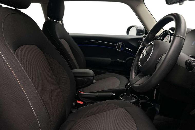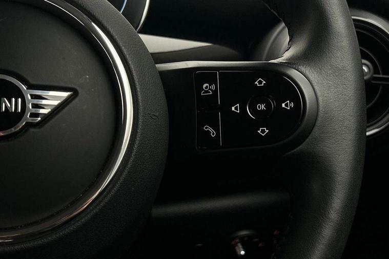 Apple CarPlay, Automatic start/stop function with brake energy recuperation, Compatible mobile phone bluetooth with audio streaming, Cruise control with brake assist, Electro-mechanical speed dependant steering assistance, Flexible car sharing preparation, Instrument cluster, Mini E-call, MINI TeleServices, On board computer, Service interval indicator, Double Vanos system, Fully variable valve control, High precision injection, Performance Control, Steptronic transmission with double clutch, 8.8" touchscreen with LED ring, FM tuner and DAB digital radio, 3rd brake light, Automatic headlight activation switch, Body colour fuel filler cap, Chrome border high gloss black slats radiator grille, Dynamic brake lights, Electric front windows, Exhaust tailpipe on left with chrome finisher, Heated rear window, Heated windscreen washer jets, LED headlight with closed ring and daytime driving lights, Metal door sill strips with MINI imprint, Model logo Cooper on right of tailgate, Rain sensor window wipers, Rear fog lights, Rear LED lights with union jack design, Rear window wiper, Side scuttle panel with integrated indicator, Sun/heat protection glass, White indicator lenses, 12V Accessory socket in centre console, 2 seat bench in 2nd row, 4 lashing eyes in luggage compartment, 60/40 split folding rear seat, Ambient lighting, Carbon black colour line - Knee roll and door armrest, Chrome interior highlights, Cupholders, Front and rear head restraints, Front and rear isofix with front passenger airbag deactivation, Front floor mats in velour, Glove compartment, Height and length steering column adjustment, Interior lighting with 12 different colours across the dashboard, underneath door bezel with illuminated laser-engraved design on central display, Leatherette gearshift lever and handbrake gaiters, LED reading lights, vanity mirror lights, front foot well light and spotlight on front seats, Manual air conditioning, Mechanical seat adjustment - forward/back & backrest for front seats and driver seat height adjust, Multifunction steering wheel, Passenger seat height adjuster, Satellite grey headlining including grab handles and clothes hooks, Single front passenger seat, Sport leather steering wheel with speed limiter and audio/communication controls, Storage compartments in doors, Sunvisors with vanity mirrors, 3 point seatbelts on all four seats, 6 Airbags - front, side, head and seat belt tensioners, Anti-lock braking system (ABS), DSC - Dynamic Stability Control, Front and rear disc brakes, Single tone fanfare horn, Tyre pressure monitoring system, Alarm system with tilt sensor, monitoring doors, bonnet interior and tailgate, Electronic vehicle immobiliser, Start/stop toggle with keyless go, Piano black interior trim, Tool kit, Tyre repair kit,