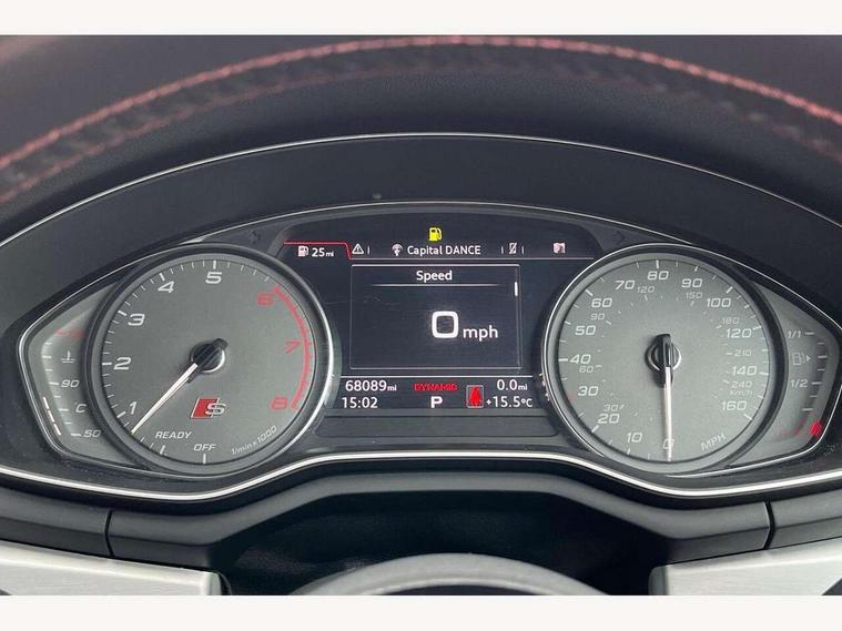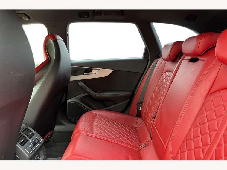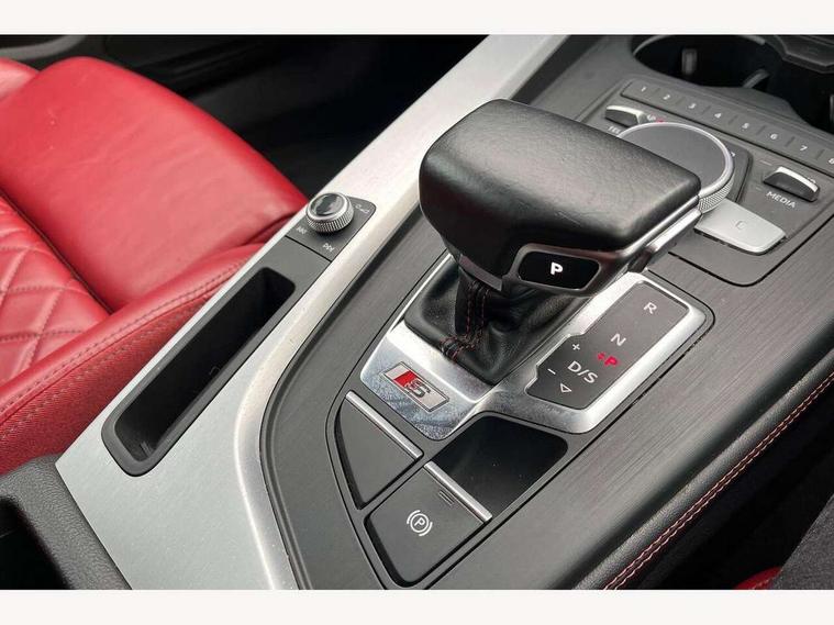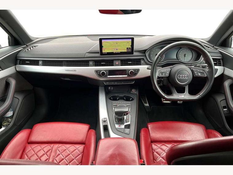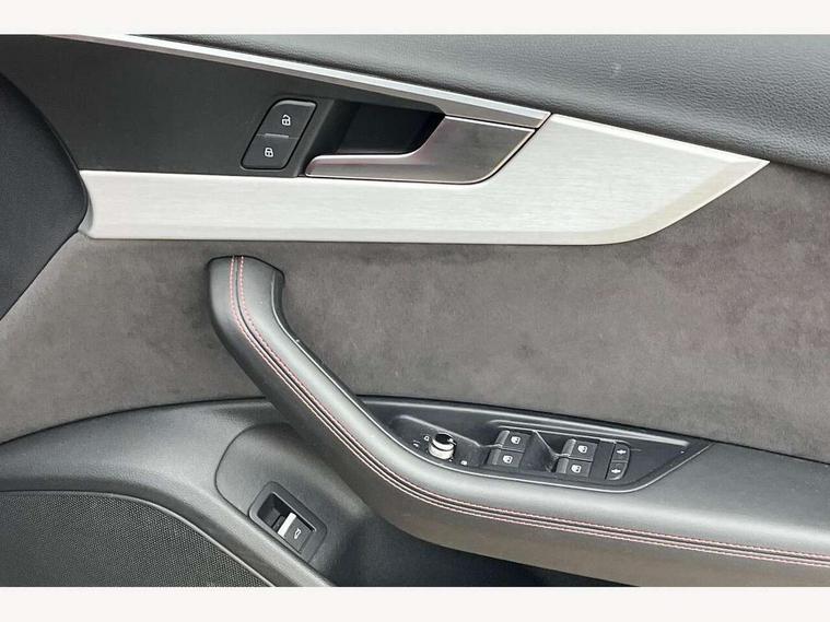 Audi connect, Audi drive select, Audi Pre sense collision avoidance, Audi smartphone interface, Electro-mechanical PAS, MMI navigation plus with HDD and jukebox storage + 2 SD card readers + single CD/DVD player, Mobile telephone preparation - bluetooth interface, Power boot opening and closing, Service interval indicator, Stop/start button, Voice control system, 2 USB ports, Aux input, DAB digital radio module, Acoustic windscreen, Air inlets in titan black with chrome inlays, Aluminium window trim, Auto dimming rear view mirror, Automatic headlights + automatic windscreen wipers, Body colour bumpers, Chrome door handles, Chrome rolled exhaust, Electric adjustable heated door mirrors, Electric front windows, Electric rear windows, Headlight range control, Headlight washer jets, High beam assistant, High gloss black triangular aperture at rear door, Honeycomb radiator grille - black, LED daytime running lights, LED indicators in door mirrors, Rain and light sensors, Rear diffuser in Twilight grey matt, Rear spoiler, Rear wiper, Twin oval exhaust tailpipes with chrome finish, 3 zone climate control, 4 way electric lumbar support for driver and front passenger, Black cloth headlining, Electric adjustable front seats, Fine Nappa leather upholstery, Front centre armrest with 12v socket, Front headrests, Front/rear floor mats, Gearshift paddles, Heated front seats, Illuminated door sill finishers, Isofix child seat preparation for front passenger/outer rear seats inc passenger airbag deactivation, Jack and tool kit, Luggage compartment carpet, Lumbar support with massage function, Massage function for front and rear seats, Perforated leather gearknob, Reach + rake adjustable steering column, Rear headrests, Retractable load area cover, S Super sports front seats, Split folding rear seats, Sunvisors with vanity mirrors, Top tether anchor plate for isofix child seat, Extended Interior Upholstery Pack - A4/S4, Non Smokers pack, 3 point seatbelts on all rear seats, ABS/EBD, Active bonnet, Adaptive driver and front passenger airbags, Electromechanical parking brake, ESP, First aid kit, Front head airbags, Front seatbelt pretensioners + load limiters, Front side airbags, Multi-Collision braking, Seatbelt warning, Traction control, Tyre pressure monitoring system, Warning triangle, Anti theft alarm, Keyless Start, Locking wheel bolts, Remote central locking, Thatcham category 1 alarm + immobiliser, Space saver spare wheel,
