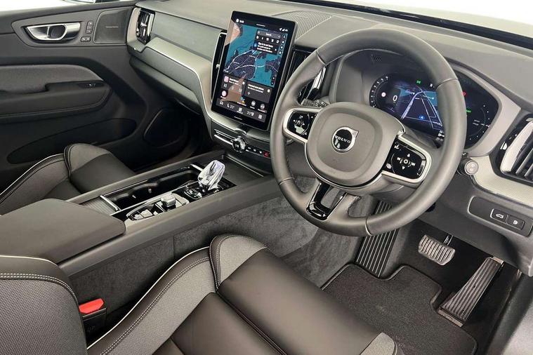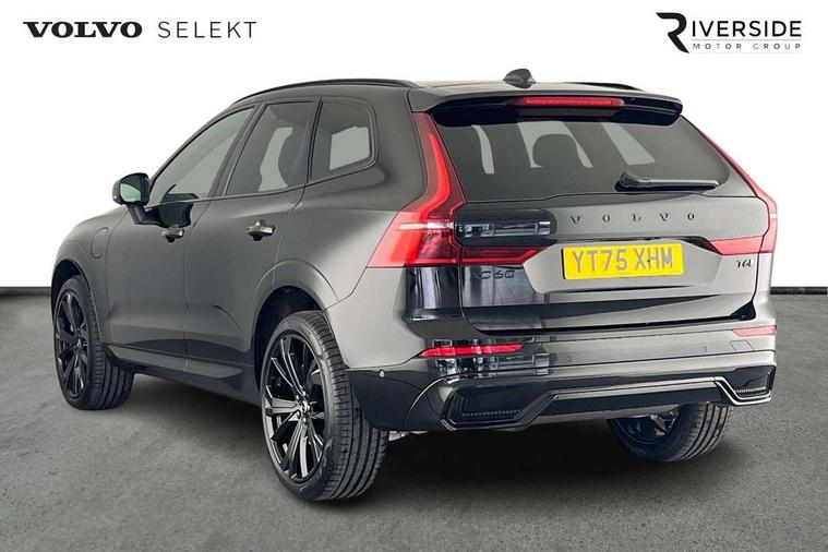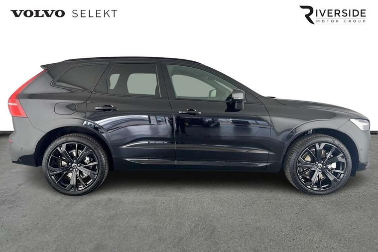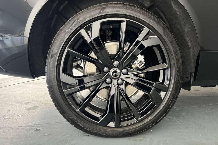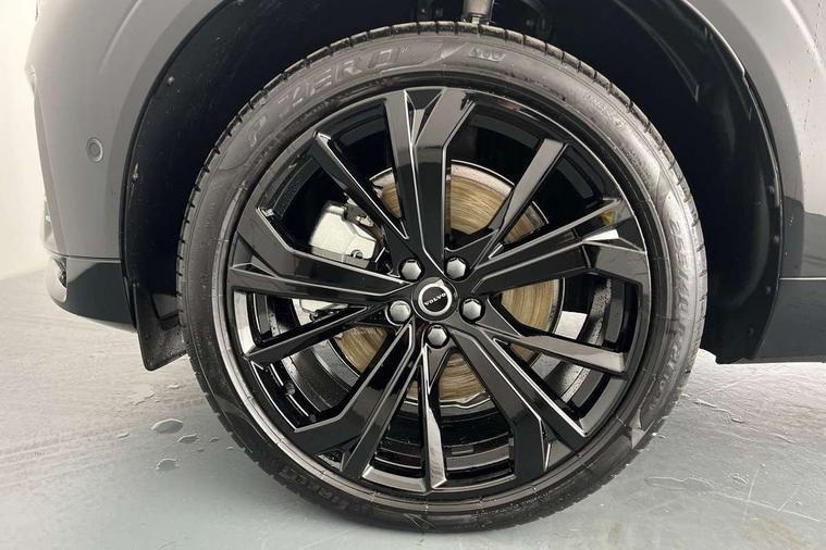11.2" centre console touch screen, 12.3" Progressive Driver Display, 360 degree surround view parking camera with side proximity sensors, Adaptive cruise control, Adjustable steering wheel force, Android auto (Wired), Apple carplay (wired), Bluetooth handsfree system, Drive mode settings, Driver alert control with lane keeping aid, Emergency services call system, Front and rear park assist, Google Automotive Services, Intelligent speed assistance, Oncoming Lane Mitigation, PAS, Power operated tailgate with handsfree opening and closing, Service interval indicator, Speed limiter, Speed sensitive steering, Trip computer, Volvo cars services with app, Volvo on call with App, Wireless/Inductive Mobile Phone Charging, 2 phase on board charger 6.4kW (home charging limited to 3.7kW), 6m 3 phase 16amp Type 2 / mode 3 charge cable, 8 speed automatic transmission with start/stop + manual change functions, Electric rear axle drive, Recharging port located in nearside front wing, DAB Digital radio, Low speed exterior sound speaker, Premium Sound by Harman Kardon, dirac unison, dolby pro logic II surround sound, 13 speakers/600W output and fresh air subwoofer, Steering wheel remote infotainment controls, Adaptive brake lights with high level LED brake lights, Auto dimming interior + exterior mirrors, Automatic headlight levelling system, Automatic LED Headlights + Active high beam incorporating daytime running lights, Dark tinted windows for rear side windows and cargo area, Electric adjustable/heated/auto power folding door mirrors, Electric front+rear windows, Front aluminium tread plates, Heated front windscreen, High gloss black door mirrors and window surround, High gloss black front and rear bumper decoratives, High gloss black front grille, Surround, Strikethrough and Ironmark, High gloss black rear model, engine and volvo logo badges, Home safe and approach lighting, Integrated roof rails in high gloss black, Puddle lights, Rain sensor with automatic windscreen wiper activation, Rear side wing doors, Rear wiper, Roof antenna, Roof spoiler, Tinted windscreen, Visible VIN plate, 12V socket in front tunnel console and luggage compartment, 2 zone electronic climate control with Clean zone air quality system and pollen filter, 3 seat bench in 2nd row, 3 Spoke tailored steering wheel with chrome trim, A-pillar parking ticket holder, Air purifier particulate matter (PM) 2.5 filter, B Pillar ventilation, Bright metal luggage scuff plate, Centre console cupholders and storage, Charcoal floor mats, Contour sports seats with nappa soft leather/textile upholstery, Front and rear courtesy lights, Front and rear door pocket illumination, Front cupholder illumination, Front footwell illumination, Front reading lights, Front seat cushion extensions, Glovebox compartment with illumination, Head restraints for all seats, Heated front seats, Heated steering wheel, Height/reach adjustable steering column, Illuminated luggage compartment, Illuminated vanity mirrors + ticket holder, Inner door release handle illumination, ISOFIX attachment on outer rear seats, Load cover, Load protection net, Multi directional lumbar support, Power driver seat with memory + exterior mirrors memory, Power height adjustable passenger seat, Power passenger seat with memory, Rear armrest with cupholder, Rear footwell and front and rear side step illumination, Rear reading lights, Rear seat concealed storage, Single front passenger seat, Tailgate illumination and ambient door lighting, Underfloor stowage compartment, Versatile split folding rear seat - 60/40, Driver assist pack without Adaptive cruise control - XC60, 5 three point seatbelts, City safety with steering support with Pedestrian + cyclist + front collision warning with full auto brake and rear auto brake, Drivers knee airbag, Dual stage driver/passenger airbags, Electronic parking brake with auto hold, First aid kit, Front seats SIPS airbags, Hill descent control - Off-road drive mode, Hill start assist, IC (Inflatable Curtains) - Full Length, Passenger airbag cut-off device, Power child locks on rear doors, Road sign information display, Run off Road Mitigation, Run off Road Protection, Seatbelt reminder and pretensioners, SIPS (Side Impact Protection System), Slippery road and hazard light alert, Stability and Traction Control with Spin control, Engine Drag Control and Corner Traction Control, Tyre pressure monitoring system, Vehicle deceleration control with Anti-lock Brake System, Electronic Brake Distribution and Emergency Brake Assist, Warning triangle, WHIPS whiplash protection system - front, Anti-theft alarm including immobiliser/volume sensor + level sensor, Key integrated remote control central locking + fuel flap with deadlocking system and auto open/close power windows, Keyless Drive (includes Keyless Entry and Keyless Start), Locking wheel nuts, Private locking for tailgate, 21" 5 Double spoke high gloss black alloy wheels, Summer tyres, Tyre sealant kit + 12v compressor,