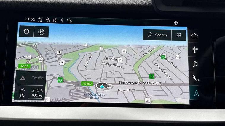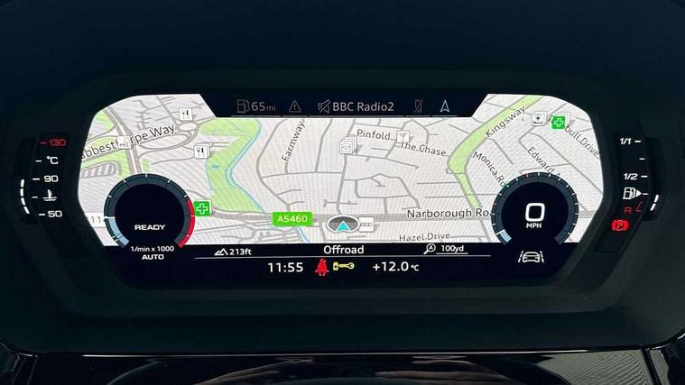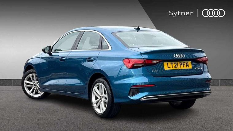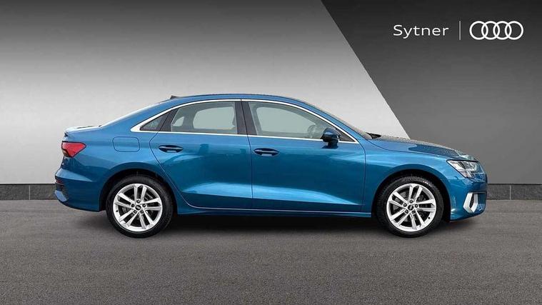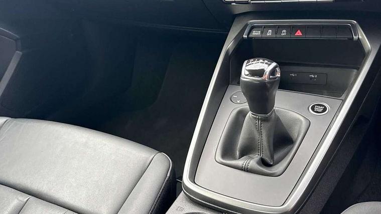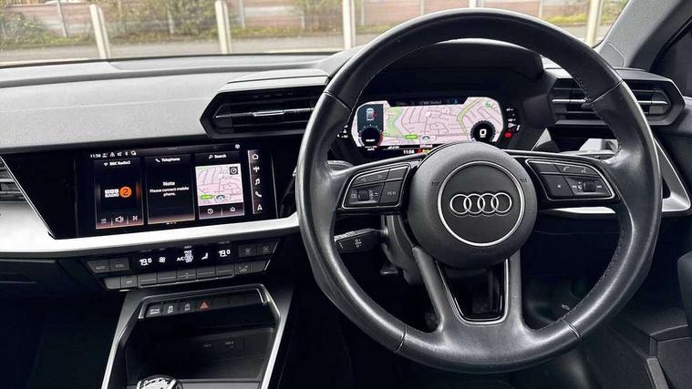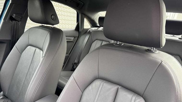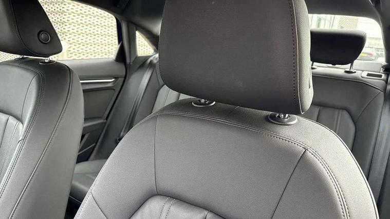 Audi connect emergency call and service, Audi drive select (Auto, Comfort, Dynamic and Individual), Audi smartphone interface, Audi Virtual Cockpit - 10.25" digital and colour instrument cluster, Automatic start/stop system with recuperation, Bluetooth interface, Collision avoidance assistant, Cruise control + speed limiter, Electromechanical power speed sensitive steering, Lane departure warning system, MMI Navigation Plus with high resolution 10.1" colour touch screen display, Rear parking sensors, Service indicator, Voice control system with natural language interaction, Standard suspension, 2x USB Type C ports (for charging and data transfer), 6 passive loudspeakers, CD player, DAB Digital radio, Acoustic glass windscreen, Aluminium window trim, Auto dimming frameless rear view mirror, Body colour exterior mirrors, Body colour roof spoiler, Electrically adjustable/heated/folding/auto dimming door mirrors with integrated LED indications + kerb view function for passenger side, Front electric windows, LED daytime running lights, LED headlights and halogen rear lights, Light and rain sensors, Model and engine designation badges at rear, Rear electric windows, Rear window, rear door windows and rear side windows in clear glass, 12V socket and storage compartment in front centre console, 40/20/40 split folding rear seat bench with cupholder, Dual zone electronic climate control, Front and rear headrests, Front centre armrest, Front door sill trims with aluminium inlay, Front/rear floor mats, Height and reach adjustable steering wheel, Interior lighting - Front and rear roof module including reading lights, glove compartment light and right hand side, Luggage compartment floor covering, Manual boot compartment lid, Manually adjustable front seats, Seat side bolsters, Steel grey cloth headlining, Twin leather upholstery, Aluminium interior elements pack - A3, Sport styling pack - A3 Saloon, 3x3 point rear seat belts, Driver and front passenger airbag with passenger airbag deactivation, Electronic Stabilisation Control (ESC) including ABS, ASR and EDL, First aid kit with warning triangle and 2 safety vests, Front side airbags with head airbags and interaction airbag, Hill hold assist, Pre-sense front with pedestrian and cyclist detection, Seatbelt monitoring, Tyre pressure loss indicator, Anti theft alarm, Anti-theft wheel bolts, Electronically operated child lock, Immobiliser, Remote control central locking, Aluminium air vent surrounds, Aluminium trim elements, Inlays with silk effect paint in platinum grey,