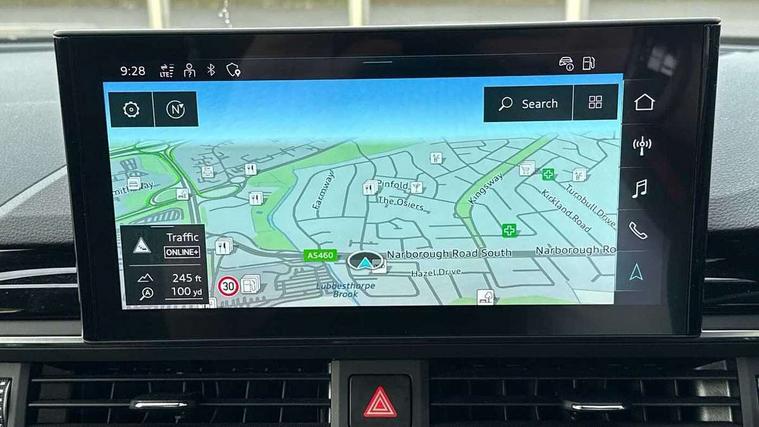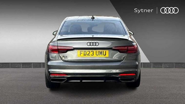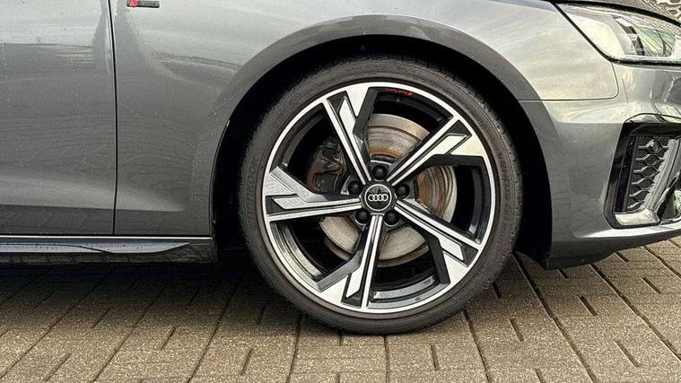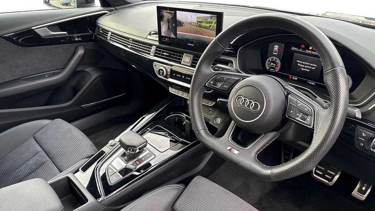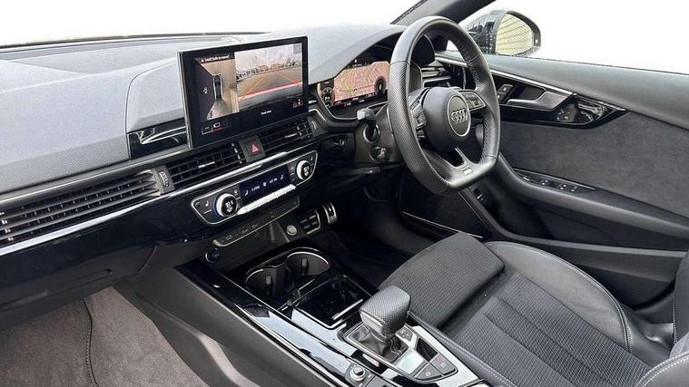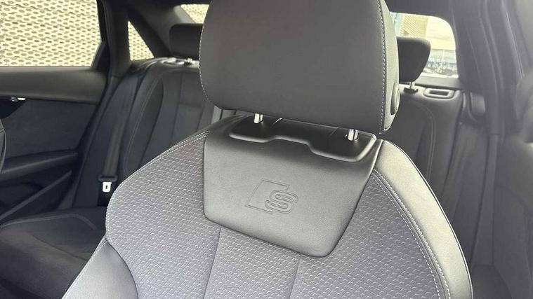 Audi connect safety and service (e-call), Audi drive select, Audi smartphone interface, Audi virtual cockpit, Automatic start-stop system with coasting functionality and efficiency programme, Bluetooth interface, Camera based traffic sign recognition, Electric boot lid release, Electromechanical power steering, Email, calendar and text messages displayed via MMI, Front and rear parking sensors, Lane departure warning, MMI Navigation plus with MMI touch includes 10.1" high resolution colour MMI display, 3D map, Rear view camera, Voice control system, Sports suspension lowered by 23mm, 2 USB charging ports, 8 passive loudspeakers, DAB digital radio reception, Audi beam uses LEDs to project the audi logo onto the ground as you exit your A4, Auto dimming rear view mirror, Black Audi rings and black badging (model name in black badging, no engine badging), Body colour door handles, Body colour front spoiler lip, Body colour side sill trim, Electrically folding auto dimming/adjustable/heated door mirrors with LED side indicators and kerb view function for passenger side, Exhaust tailpipes in high dark chrome, Grained matt black side air inlets with matt aluminium silver inlay, High beam assistant, High gloss black B pillar trims and triangular rear door trim, LED headlights with LED rear lights + dynamic rear indicators + headlight adjustment and high beam, turning light + LED daytime running lights, LED third brake light, Privacy glass, Rain and light sensors, Rear boot, Rear diffuser in matt black with trim strip in matt aluminium silver, Rear side wing doors, Sport front and rear bumpers with side skirts, Variable intermittent front wash/wipe, Windscreen with acoustic glazing, 4 way electric lumbar support for driver and front passenger, 40/20/40 split folding 3 rear seat bench in 3 parts with rear centre armrest, Black cloth headlining, Black perforated leather gearknob, Contrast stitching on seats, steering wheel and gear lever gaiter, Deluxe 3 zone electronic climate control, Door sill trims with aluminium inlay, Front and rear head restraints, Front centre armrest, Heated front seats, Illuminated door sill trims with S logo, ISOFIX child seat mounting and top tether, Manual seat adjustment, Single front passenger seat, Stainless steel pedals and foot rest, Tool kit, Black styling pack - A4 Saloon, LED Interior light pack - A4/S4, 3 rear seatbelts, 6 airbags - Driver, front passenger, curtain and side windows, Attention and drowsiness assist, Electronic Stabilisation Control (ESC) including ABS, ASR and EDL, Hill hold assist, Multi collision brake assist, Pop-up bonnet for pedestrian protection, Pre sense city, Rear door child safety locks, Seatbelt monitoring, Warning triangle and first aid kit, Anti theft alarm, Anti theft wheel bolts, Central locking, Keyless Go, Piano black finish inlay, Tyre repair kit,