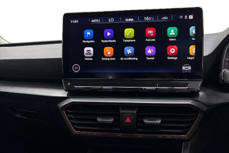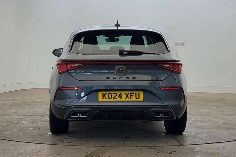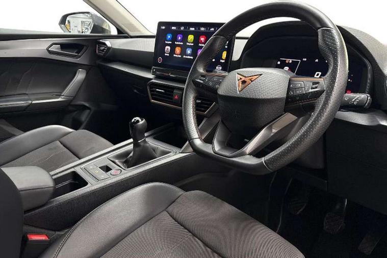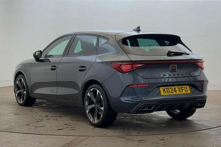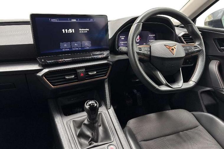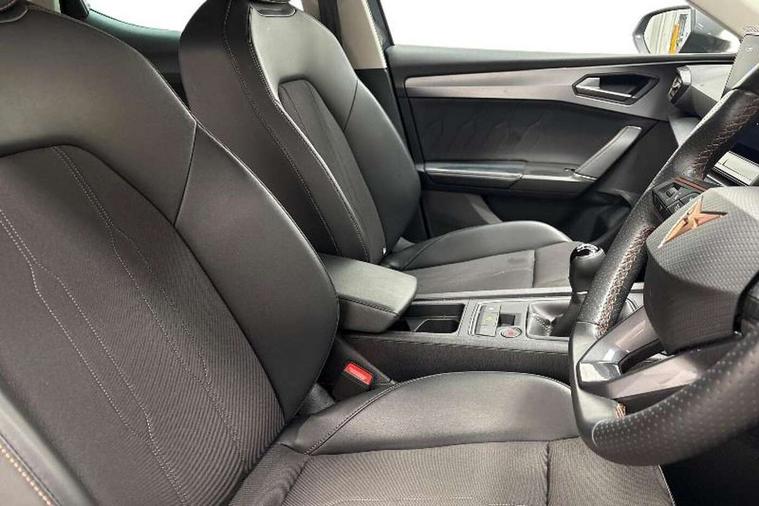 CUPRA drive profile selection with (Comfort/Sport/Individual), throttle response and gearshift mode, Digital cockpit, E-call, Electro mechanical speed sensitive power steering, Four x USB Type C ports (2 in front and 2 in rear), Front assist with forward collision warning braking reaction to vehicles, pedestrians and cyclists, Full link smartphone integration with Mirror Link, wireless Apple CarPlay and wired Google Android Auto, Lane assist, Lockable tailgate, Park assist (inc front/rear parking sensors), Rear view camera, RPM, trip computer, outside temp gauge, instrument light brightness, low fuel warning light, lights on reminder, gearshift indicator, Service interval indicator, Start/stop system with regenerative braking, Wireless phone charger, Sports suspension, Auxiliary input socket, Auto dimming rear view mirror, Body colour door handles, Body coloured bumpers, Cupra sports bumpers, Dark tinted rear windows, Electric front/rear windows, Electrically adjustable, heated and folding door mirrors, LED front fog lamps with cornering function, LED headlights with dynamic turn signals, tail lights, rear fog lights with rear coast to coast lighting, Rain sensing wipers, Rear diffuser with twin exhaust pipe on each side, Rear side wing doors, Rear wash/wipe, Separate daytime running light with automatic headlight control and coming home feature, Third brake light, 12v power supply in centre console, 3 seat bench in 2nd row, 5 headrests, 60/40 split rear bench seat with armrest, Ambient lighting with glovebox, footwell and single monocolour, Cupra Leather flat bottomed, perforated steering wheel, Driver/passenger manual seat height adjustment, Folding boot cover, Front and rear reading lights X 4, Front centre armrest, Front seats manual lumbar adjustment, Grey headlining, Height/reach adjust steering wheel, Illuminated interior front door sills, ISOFIX points in outer rear seats with top tether anchorage points, Jack and tool kit, PVC/Cloth upholstery with copper stitching, Single front passenger seat, Sports seats, Sunvisors with illuminated mirror, Three zone climate control, Media system plus with navigation pack - Leon Cupra, Safety and driving pack (M) - Cupra leon, 3 point seatbelts on all rear seats, ABS, Brake control system - ESC and brake booster, Child proof door locks, Cupra black brake calipers, Driver and front passenger airbags with front passenger airbag de-activation, front side and curtain airbags, Electronic parking brake, Extended safety system - seat belt tensioner, window closure and hazard lights, Hill hold control, Rear disc brakes, Seat belt reminder for front and rear seats, Tiredness recognition system, Tyre pressure monitoring system, Anti theft alarm system with interior monitoring in cab, backup horn and towing protection, KESSY Advanced - Keyless start, keyless entry, Locking wheel bolts, Chrome and copper interior detailing, 18" Machined sport black and silver alloy wheels with 92Y tyres,