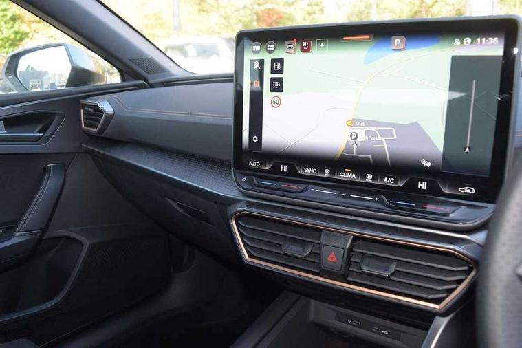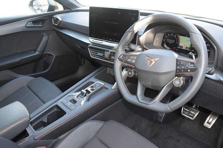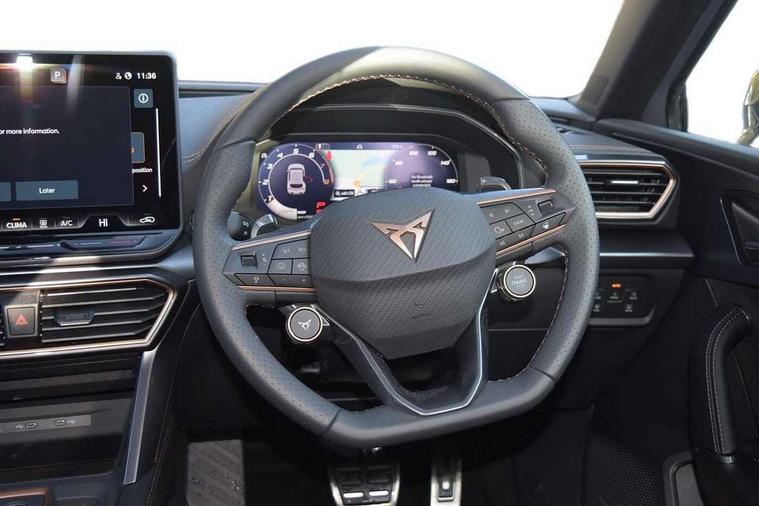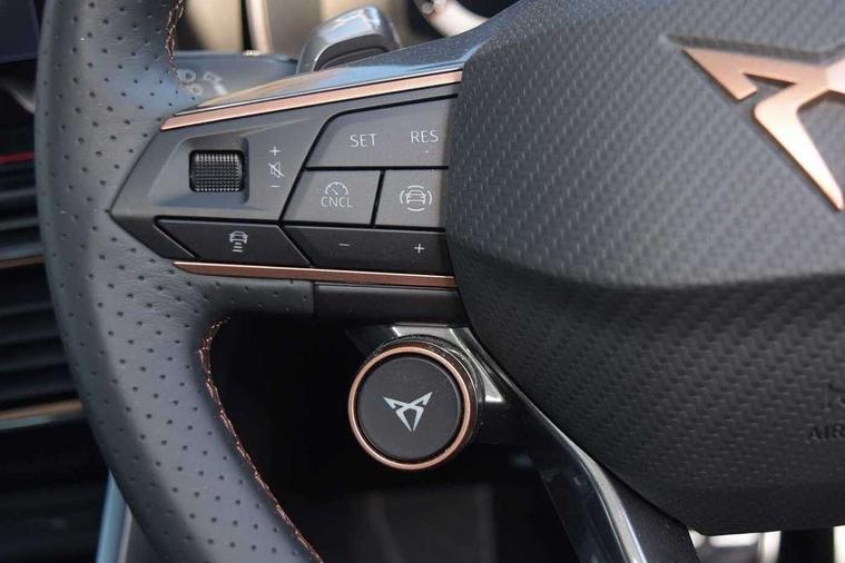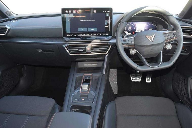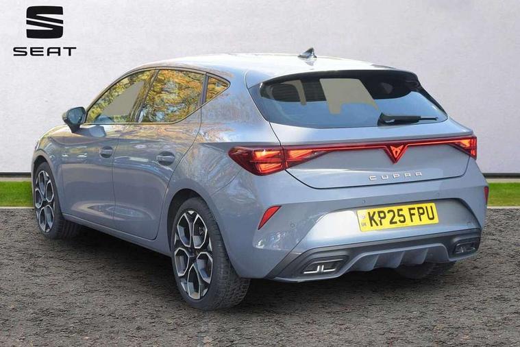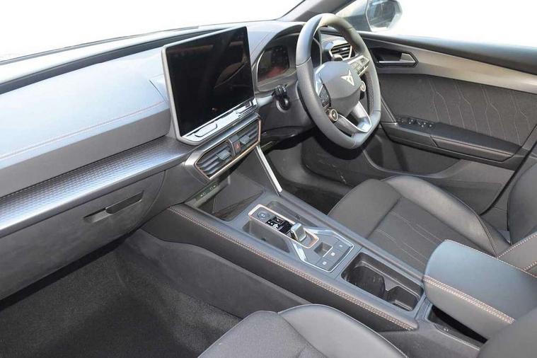 Adaptive cruise control with follow-to-stop and speed limiter, CUPRA drive profile selection with (Comfort/Sport/Individual), throttle response and gearshift mode, Digital cockpit, Dynamic road sign display, E-call, Four x USB Type C ports (2 in front and 2 in rear), Front and rear parking sensors, Front assist with forward collision warning braking reaction to vehicles, pedestrians and cyclists, Full link smartphone integration with Mirror Link, wireless Apple CarPlay and wired Google Android Auto, Lane assist, Lockable tailgate, PAS, RPM, trip computer, outside temp gauge, instrument light brightness, low fuel warning light, lights on reminder, gearshift indicator, Service interval indicator, Start/stop system with regenerative braking, Wireless phone charger, 7 speakers, Auxiliary input socket, Auto dimming rear view mirror, Body colour door handles, Body coloured bumpers, Cupra sports bumpers, Dark tinted rear windows, Electric front/rear windows, Electrically adjustable, heated and folding door mirrors, High beam assist, LED front fog lamps with cornering function, LED headlights with dynamic turn signals, tail lights, rear fog lights with rear coast to coast lighting, LED rear fog lamp, Rain sensing wipers, Rear side wing doors, Rear wash/wipe, Separate daytime running light with automatic headlight control and coming home feature, Third brake light, Welcome light with logo projector in door mirrors, 12v power supply in centre console, 3 seat bench in 2nd row, 5 headrests, 60/40 split rear bench seat with armrest, Ambient lighting with glovebox, footwell and single monocolour, Black headlining, Cloth/PVC upholstery, Cupra sports pedals, CUPRA Supersports, heated steering wheel with satellite buttons, Driver and passenger seat with manual height and lumbar adjustment, Folding boot cover, Front and rear reading lights X 4, Front centre armrest, Height/reach adjust steering wheel, Illuminated interior front door sills, ISOFIX points in outer rear seats with top tether anchorage points, Single front passenger seat, Storage pockets on rear of front seats, Sunvisors with illuminated mirror, Three zone climate control, Media system plus with 12.9" display + navigation pack - Leon Cupra, 3 point seatbelts on all rear seats, ABS, Brake control system - ESC and brake booster, Child proof door locks, Cupra black brake calipers, Driver and front passenger airbags with front passenger airbag de-activation, front side and curtain airbags, Electronic parking brake, Hill hold control, Rear disc brakes, Seat belt reminder for front and rear seats, Tiredness recognition system, Tyre pressure monitoring system, Anti theft alarm system with interior monitoring in cab, backup horn and towing protection, Central locking system Keyless Go, Locking wheel bolts, Chrome and copper interior detailing, 18" Windstorm machined sport black matt and silver alloy wheel with 92Y XL tyres, Tool kit,