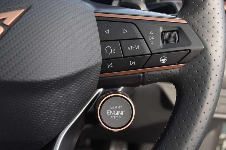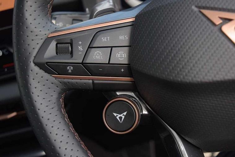 10.25" digital cockpit and configurable dashboard, Adaptive cruise control with follow-to-stop and speed limiter, Advanced driver alert system, Advanced lane assist with semi-automatic vehicle control in a medical emergency and traffic jam assist, Driving profile selection and conventional shock absorber, Dynamic road sign display, E-call, Electric tailgate with virtual pedal, Emergency steering support with turn assist, Four x USB Type C ports (2 in front and 2 in rear), Front and rear parking sensors, Front assist (Forward collision warning with automatic braking) with multifunction camera and front cross traffic assist, Head up Display, Intelligent park assist, Media system with Nav - 12.9" touch display, voice control, full link phone (wired/wireless), DAB and Steering wheel mounted controls, Rear traffic assist, Side and exit assist, Speed sensitive power steering, Start/stop system with regenerative braking, Top view camera (front camera, rear camera, 2 side cameras), Wireless phone charger, Auto dimming rear view mirror, Black roof rails, CUPRA 3D rear lights with ceremony & swiping indicator and illuminated logo, Dark tinted rear windows, Daytime running lights with automatic headlight control and Coming and Leaving home function, Door mirrors with memory function and lowing function on passenger mirror, Dynamic headlight range control, Electric front/rear windows, Electrically adjustable, heated and folding door mirrors, Front fog lamps with cornering function, Heat reflecting windscreen, High beam assist, LED headlamps with signature "CUPRA LED", Rain sensing wipers, Rear fog light on one side, back up light on both sides, Rear side wing doors, Rear wash/wipe, Third brake light, Welcome lights (within exterior mirror housing), 3 seat bench in 2nd row, Black roof lining, Cupra sports pedals, Dinamica cloth upholstery, Driver seat memory function, Electrically adjustable front seats including lumbar support, Front and rear head restraints, Front and rear reading lights X 4, Front centre armrest, Heated front seats, Heated leather wrapped multi function sports steering wheel with tiptronic, Illuminated interior front door sills, Isofix, Operating voltage 12V, Single front passenger seat, Smart wraparound interior lighting, Sunvisors with illuminated mirror, Three zone climate control with control panel in rear, Unsplit rear seat bench, split folding backrest, with centre armrest, Variable luggage/load compartment floor, 3 point seatbelts in front with pretensioner and electric height adjustment, 3 point seatbelts on all rear seats, Brake control system - ESC and brake booster, Child proof door locks, Driver and front passenger airbags, Electronic parking brake, Front and rear disc brakes, Front interaction airbag, Front passenger airbag deactivation switch, Front side airbags with curtain airbags, Pre-crash front and rear seat belt tensioner, window closure and hazard lights, Tyre pressure monitoring system, Visual and acoustic seat belt reminder, electric contact in front and rear, Anti theft alarm, Keyless locking and starting system with keyless access, Locking wheel bolts, Black decorative trims, Chrome interior detailing, 19" Spectrum exclusive machine alloy wheels, Tool kit,