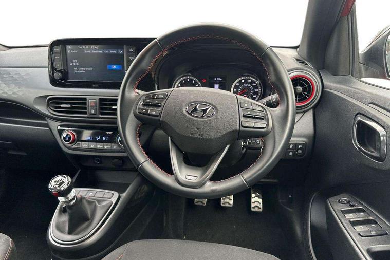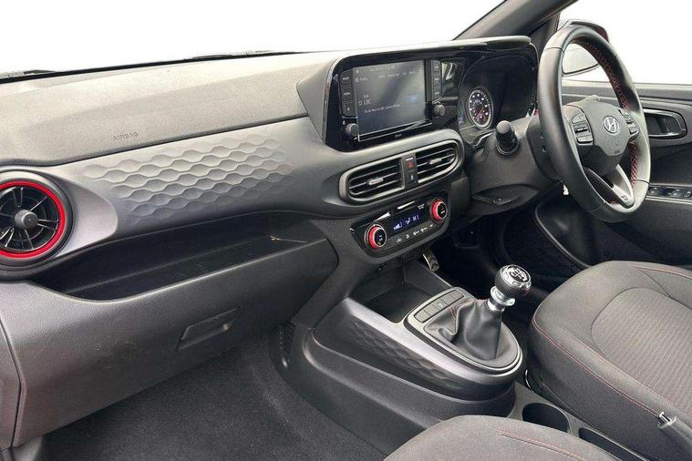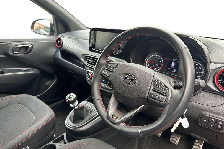 8" Touchscreen centre console display audio with smart device integration and DAB, Apple car play/Android Auto, Bluetooth connectivity with voice recognition, Cruise control + speed limiter, Driver attention alert system, eCall emergency call system, ISG - Idle stop and go, Lane departure warning system with lane keep assist - LKAS, PAS, Rear view camera, Roadside assistance, Trip computer, 2 front/2 rear speakers, Steering wheel audio, phone and cruise controls, USB socket, 1 speed non intermittent rear windscreen wiper, Bi-function projection headlights, Black finish on B pillars, Body colour door handles, Body coloured bumpers, Body coloured door mirrors, Differentiated DRL design with red stripe detail, Dual exhaust tailpipe, Electric front windows, Electric rear windows, Electrically adjustable and heated door mirrors, Front fog lights, Front intermittent wipers, Halogen headlights, Heated rear window, High beam assist, Indicator light on door mirrors, N Line Badging, N Line design front grille, Privacy glass - Rear windows and tailgate, Rear combination lights - LED, Rear roof spoiler with integrated LED brake light, Rear side wing doors, Unique LED daytime running lights, 12v power outlet - front, 3 seat bench in 2nd row, 60/40 split folding flat to floor rear seats, Auto light control, Black roof liner, Bottle holders in front/rear doors + front centre console, Cabin and luggage compartment interior lighting, Climate control, Cloth upholstery, Driver + passenger vanity mirrors, Driver's seat height adjustment, Driver/passenger sunvisors with ticket holders, Front door pockets, Front Head Restraints - Vertical and Horizontal Adjustment, Glove compartment, Height adjustable steering column, Isofix child seat preparation, Metal paint effect interior door handles, N Line branded leather gear stick, N Line branded leather steering wheel, Rear door pockets, Single front passenger seat, Vertical adjustment rear head restraints, 3x3 point rear seatbelts, Airbags - front, front side and curtain airbags, Anti-lock brake system (ABS), Autonomous emergency braking (AEB) with forward collision warning system, Brake assist function, Childproof rear door locks, Electronic stability control, Front and rear seatbelt reminder, Front seatbelt pretensioners, Hill start assist control (HAC), Passenger airbag deactivate switch, Rear disc brakes, Traction control, Tyre pressure monitoring system, Immobiliser, Perimeter alarm, Remote central locking, Second remote key, Speed sensitive auto door locking, Honeycomb design in dashboard and door, 16" N Line design alloy wheels, Tyre repair kit,