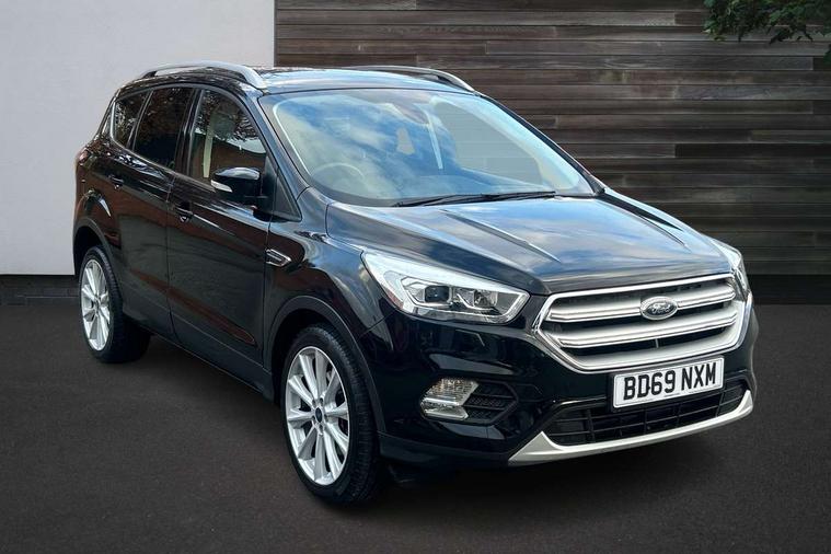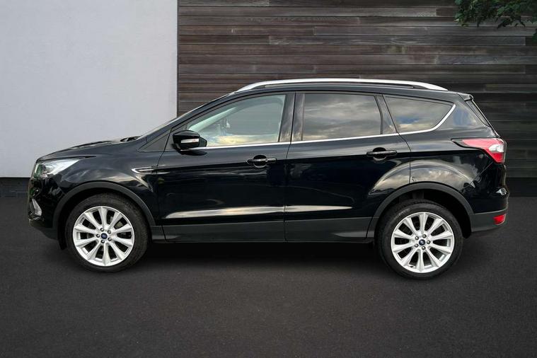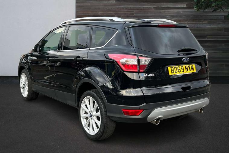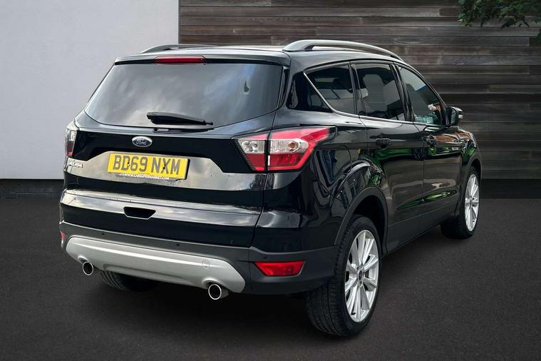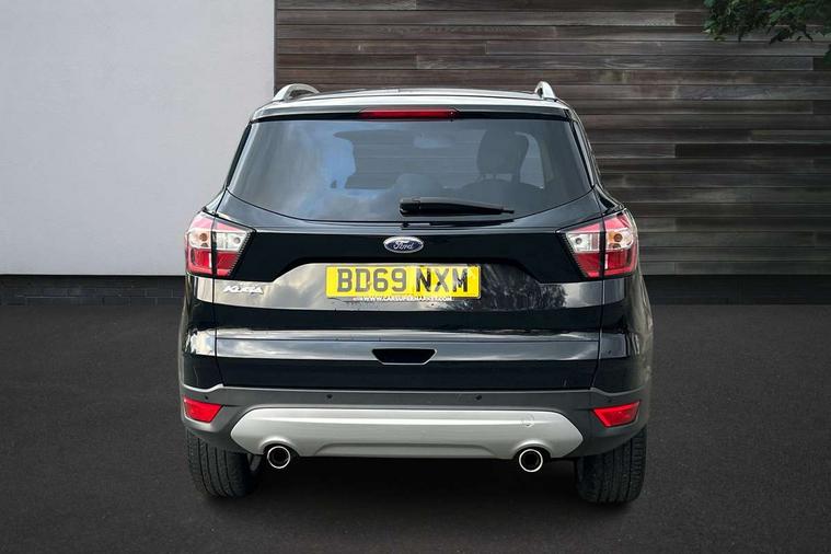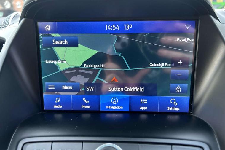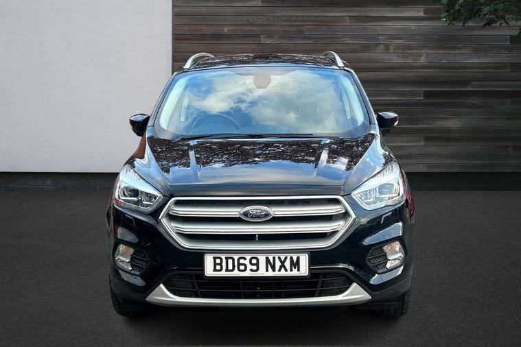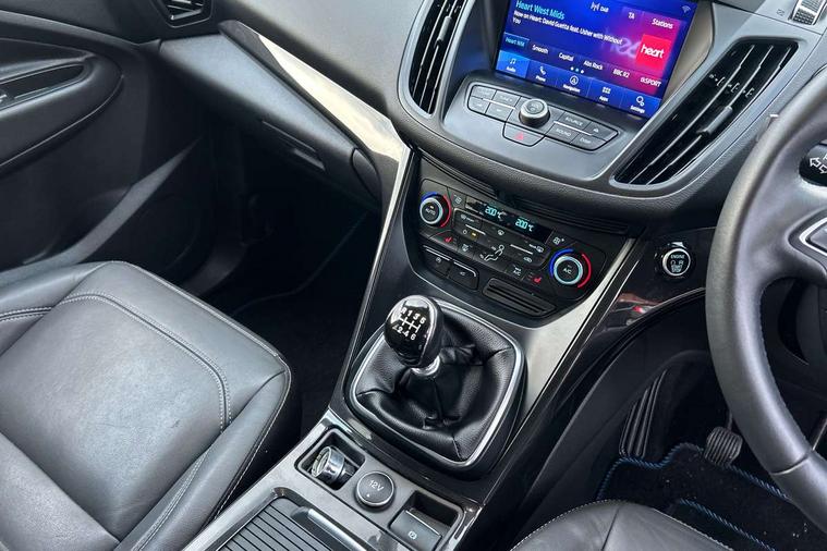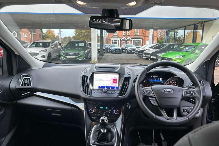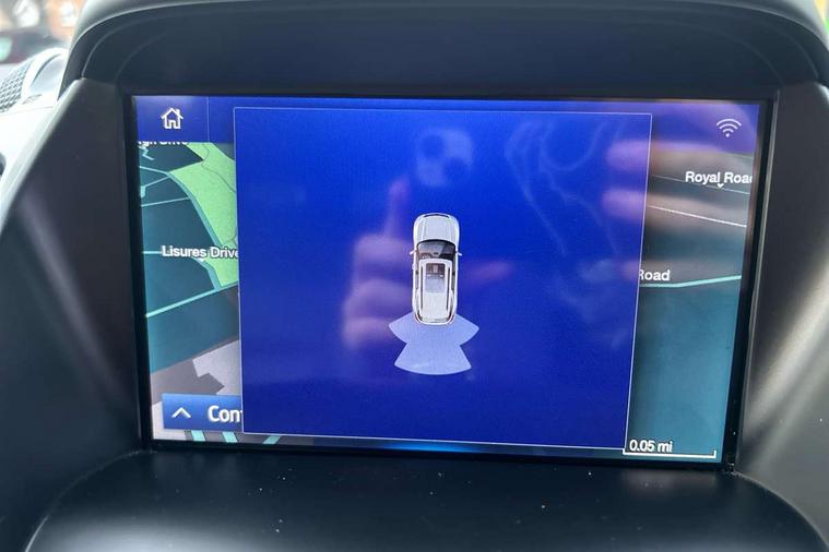 Apple car play/Android Auto, EPAS, Hands free power tailgate, Hands free telephone, Trip computer, 2 USB ports, Auxiliary socket for external device, Remote audio controls on steering wheel, Auto dimming rear view mirror, Bi-Xenon headlights with dynamic bending, active beam shape plus LED rear lamps and headlight washer jets, Body colour bumpers, Body colour rear spoiler, Electrically operated and heated door mirrors with side indicators, Electrically operated front and rear windows with global closing, Front fog lights, Front scuff plate, LED daytime running lights, Power folding door mirrors, Power opening panoramic glass sunroof, Quickclear heated windscreen, Rain sensing wipers, Tailgate wash/wipe, Twin exhausts and rear diffuser, 10 way power adjustable drivers seat, 6 way manually adjustable passenger seat with lumbar support, 60/40 split/folding rear back and cushion, Auxiliary power socket in luggage area, Centre console with stowage tray/bottle holder/CD stowage/front and rear 12V power point, Driver seat lumbar adjustment, Driver/passenger front seatback pockets, Dual electronic automatic temperature control, Folding rear centre armrest, Footwell courtesy lights front and rear, Front floor mats, Front head restraints, Front overhead courtesy lights with theatre style dimming and delay, Front/rear reading lights, Full leather upholstery, Heated front seats, Isofix system on outer rear seats, Leather steering wheel and gear knob, Multi-colour ambient interior lighting, Reach + rake adjustable steering column, Rear floor mats, Rear head restraints, Sports style front seats, Stowage unit in upper instrument panel, Tie down hooks, Tonneau cover, Variable intensity instrument illumination, Appearance pack - Kuga, 3 point seatbelts on all 3 rear seats, ABS/EBD, Airbags - front driver/passenger, front & rear side, curtain, drivers knee, EBA, Electric traction assist system, Electronic Stability Programme, Front passenger airbag deactivation switch, Hill start assist, Intelligent Protection System (IPS), Tyre pressure monitoring system, Engine immobiliser, Keyless entry, Keyless start with 'Ford Power' starter button, Locking wheel nuts, MyKey system, Remote powered central double locking doors, Thatcham category 1 alarm, 19" 10 spoke polished paint alloy wheels, Mini steel spare wheel,