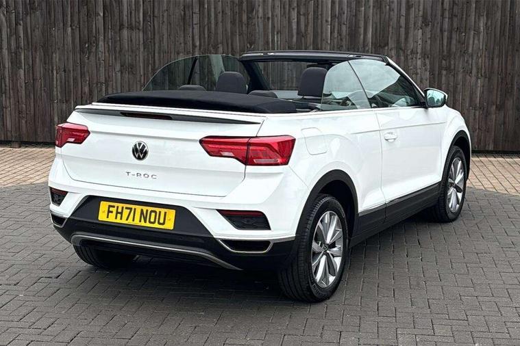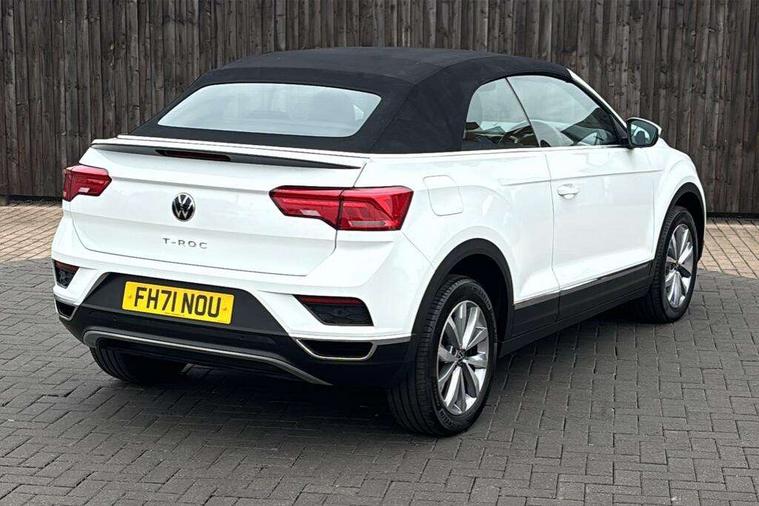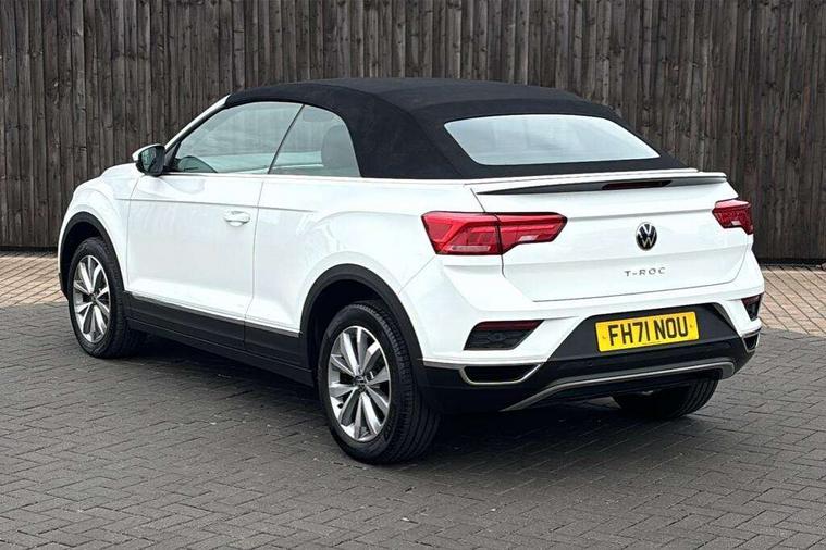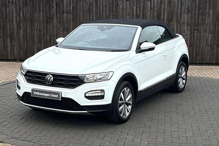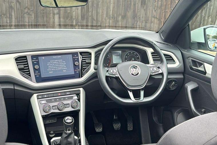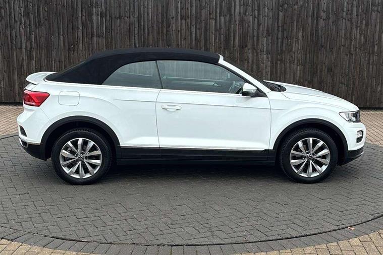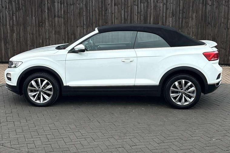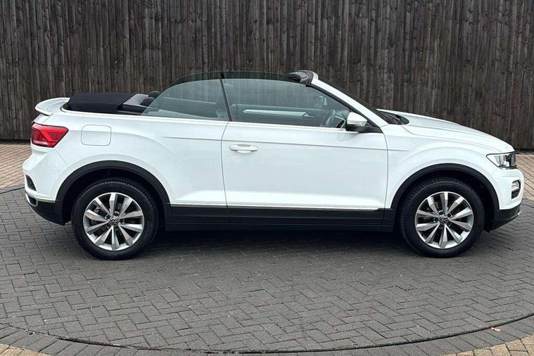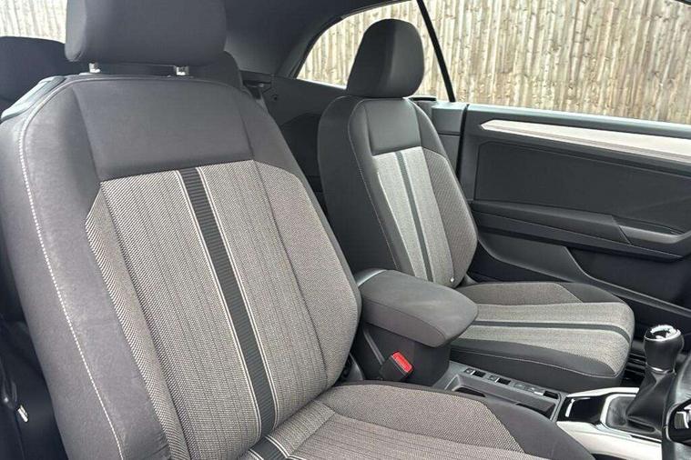 8" colour touch screen, Adaptive cruise control, Bluetooth telephone and audio connection for compatible devices, Brake pad wear indicator, Car information display, Car-Net Security and Service, Driver alert system with fatigue detection, Driver tips and journey analysis, Dynamic road sign display, Emergency call service, Lane assist with warning text instrument cluster, Mobile phone interface, Modified key software - reduce switch off time for key status change to Long no motion, Multifunction computer with visual gear change recommendation for fuel consumption, Navigation system discover media including streaming and internet, Online services, Power assisted speed sensitive steering, Speedo and rev counter, electronic odometer, trip, service interval display, digital clock and fuel gauge, Start/stop system with brake energy recovery, Tailgate/trunk lid release from outside, Warning sound and light for front seatbelts unfastened, Wired and wireless app connect, Bluetooth - Simultaneous pairing of 2 compatible mobile devices, DAB Digital radio, Diversity antenna for FM reception, Music playback - MP3, WMA and AAC files, SMS functionality - read, compose and send SMS messages using touch-screen display, Title and cover art display, USB-C Interface and USB charging socket, WeConnect plus, Auto dimming interior rear view mirror, Automatic coming/leaving home lighting function and daytime running lights, Automatic hazard lights activation under emergency braking, Body colour rear roof spoiler, Body coloured bumpers and radiator grille with chrome trim and front fog lamps with chrome bezel, Body coloured exterior mirror housings and door handles, Chrome effect left and right trapezoid exhaust tailpipe fascia surround, Chrome trim on upper and lower radiator grille, Dusk sensor, Electrically power adjustable, heated, folding, auto dimming, front passenger exterior door mirror lowering function, Front and rear electric windows, Heat insulating glass windscreen, High level 3rd brake light, LED rear number plate lights, LED tail lamp rear comination lamps, Power operated canvas convertible top, Rain sensor, Rear exhaust tailpipe, Rear fog lamp, Volkswagen roundel, Windscreen wiper with intermittent wipe light, 12V socket in centre console storage area, 2 front reading lights, 3 spoke leather wrapped multifunction steering wheel, 50/50 rear seat bench split folding rear seat backrests, Activated charcoal canister for intensified evaporation system, Black door lower parts with chrome trim, Chrome plated surround to light, mirror and window switch, Climate control - 2 zone electronic air conditioning with automatic air recirculation and allergy filter, Entry aid easy entry (Front folding seats), Front + rear carpet mats, Front centre armrest, Front comfort seats with manual height adjustment, Front cupholders x 2, Front seat back storage pockets, Glove Compartment with light, Height/reach adjust steering wheel, Illuminated vanity mirrors in sun visors with air bag label on sun visor and b-pillar, Instrument lighting, white adjustable panel illumination, Interior light delay, Interior light in footwell, Isofix easy fit child seat preparation for 2 outer rear seats, Luggage compartment lighting, Rear head restraints, Standard pedal cluster, Storage compartments in driver and front passenger doors, White ambient lighting, 2 x 3-point rear seatbelts, ABS, Autonomous emergency braking, Driver and front passenger safety-optimised head restraints, Drivers and front passengers airbags with passengers deactivation switch, Drivers seatbelt reminder, Electronic parking brake with auto hold, Electronic stability control (ESC) includes ASR, EDL, EDTC and trailer stabilisation function, Front assist with city emergency braking and pedestrian monitoring, Pedestrian monitoring, Predictive pedestrian protection, Rigid safety cell with front and rear crumple zones, Side airbag/thorax airbag system, for front passengers, Single tone horn, Three point height adjust front seatbelts + pretensioners, Tyre pressure loss indicator, Tyre pressure monitor, Ventilated front and rear disc brakes, Volkswagen roadside assistance, Alarm with interior protection and deactivation via infotainment system, Electronic engine immobiliser, Dashboard unicolour out of hard material including decorative insert 1st line different colours chooseable, Silver silk decorative inserts in dash and front door panels,