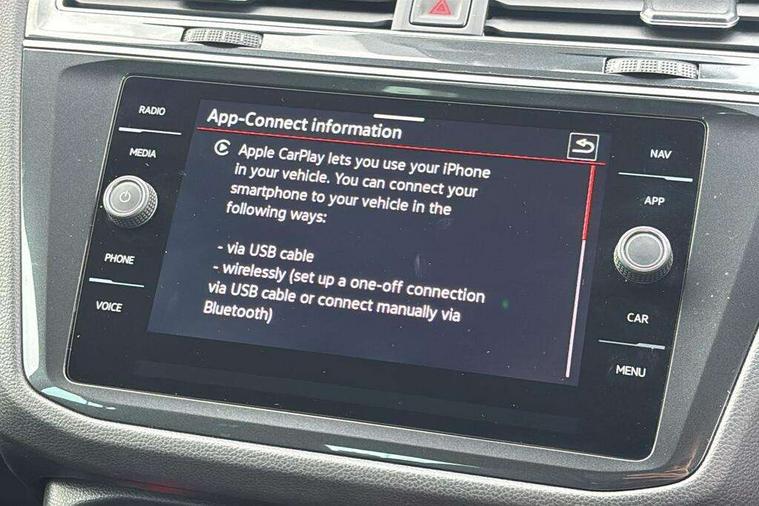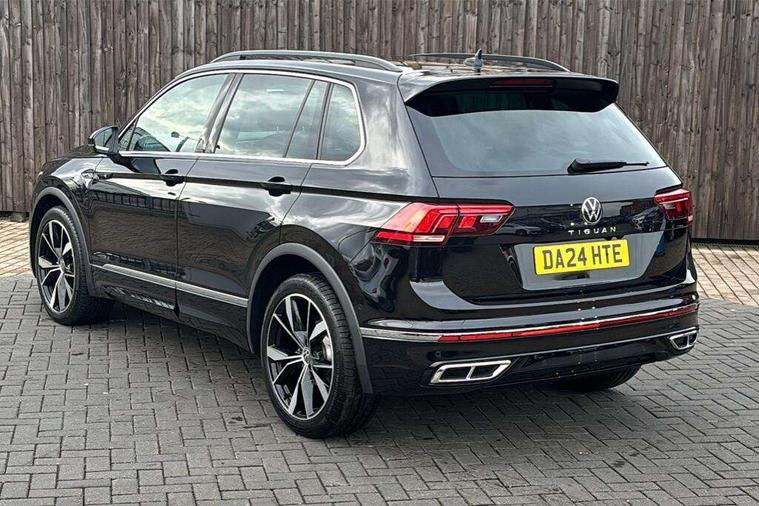 Adaptive cruise control ACC stop and go including speed limiter, App-Connect incl. App-Connect Wireless for Apple CarPlay and Android Auto, Bluetooth phone integration system, Comfort drive travel assist, Digital cockpit pro, Driver alert system, Driver profile selection, Dynamic road sign display, eCall emergency call system, Electromechanical speed sensitive power steering, Emergency assist, Front and rear parking distance sensors, Instrument cluster mph speedometer Great Britain, Lane keeping system Lane Assist, Lights on warning, Multifunction front facing camera, Outside temperature display, Premium multifunction display with multi colour display, Rev counter, Service interval indicator, Speed limit display, Start/stop system with regenerative braking, Trip computer, Warning sound and light for doors and tailgate open, Battery regeneration during braking, Digital radio reception DAB+, Diversity antenna for FM reception, Radio, Auto dimming interior rear view mirror, Automatic headlight control system, Body colored bumpers in R-Line style, Body colored exterior mirror housings, Body colour door handles, Chrome moldings on the side windows, Coming/leaving home lighting function, Dynamic headlight range control, Front and rear electric windows, Heated rear window, High level 3rd brake light, Laminated safety glass windshield, heat and sound insulating, LED rear combination lamps, LED rear number plate lights, License plate carrier in front and rear, Poor weather light and cornering light, Privacy glass for rear side windows and rear window, R Line body kit, R Line side sills, Rain sensor, Rear exhaust tailpipe, Rear fog lamp, Rear side wing doors, Rear spoiler in R style, Rear windscreen washer and wiper with interval delay, Side and rear windows in heat insulating glass, Trailer Stability Programme, Unique R Line badging, Windscreen wipers/ intermittent wipe + 4 position delay, 12V outlet in center console rear and in luggage compartment, 12V outlet in front and tray, 2 LED front reading lights, 2 LED rear reading lights, 3 bench rear seats in 2nd row, 3 rear headrests, Air Care Climatronic 3 zone automatic climate control with enhanced air filter and controls in the rear, Backrest release for left front seat, Black headlining, Brushed stainless steel pedals and footrest, Carpet mats in front and rear with decorative stitching in Gray, Climate control unit rear with touch function, Door and side trim panel in foam film, insert in leatherette, Front footwell illumination, Front scuff plates in aluminum with R-Line logo, Front seats head restraints (x-adjustment), Height/reach adjust steering wheel, Isofix Preparation 2 Rear child seats, Leather gear knob, Rear bench seat asymetrically split folding, longitudinally movable and folding with load-through hatch and center armrest, Remote unlocking for rear seat backrest, Single front passenger seat, Sun visors with illuminated vanity mirrors, Tool kit, Driver assistance pack plus - Tiguan DSG, 3 point seat belt for centre rear seats, 3 point seat belts with seat belt pretensioners for the outer rear seats, Curtain airbags for front and rear passengers, Driver/Front Passenger airbags, Drivers knee airbag, Electronic parking brake with auto hold, Electronic Stability Control with driver steering recommendation, ABS, ASR, EDL, EDTC and trailer stabilization, Front assist with autonomous emergency braking (for Adaptive Cruise Control ACC up to 130 mph), Front disc brakes, Front passenger airbag deactivation, Front side airbags, Height adjustable front 3 point seatbelts + pretensioners, Manual child proof rear door locks, Pedestrian monitoring system, Proactive passenger protection system in combination with front assist, Rear disc brakes, Two tone horn, Warning sound and light for front seat belts if unfastened, Warning triangle, Anti theft alarm system with interior monitoring, backup horn and towing protection, Anti theft wheel bolts, Electronic engine immobiliser, Chrome elements on the mirror switch power window switches and door pulls, Decorative inserts Carbon Gray for dashboard and front door trim panels, Interior door handle in matte chrome,