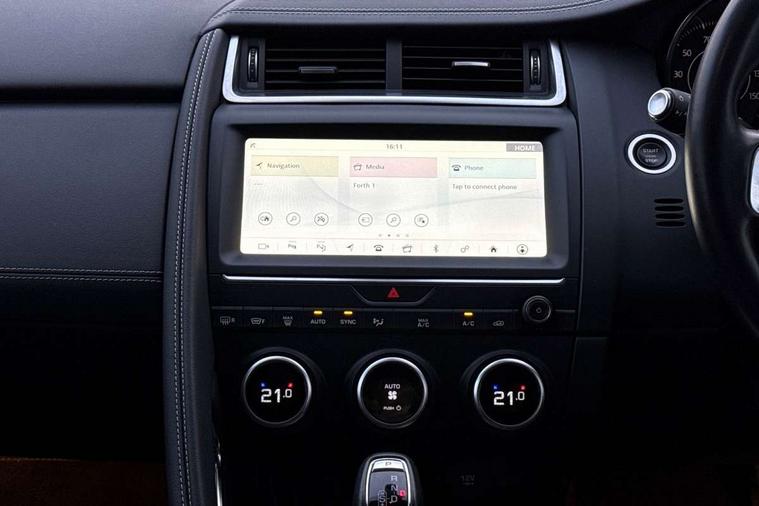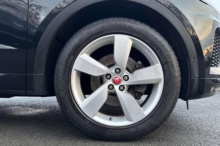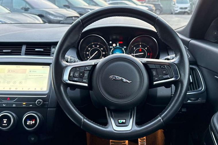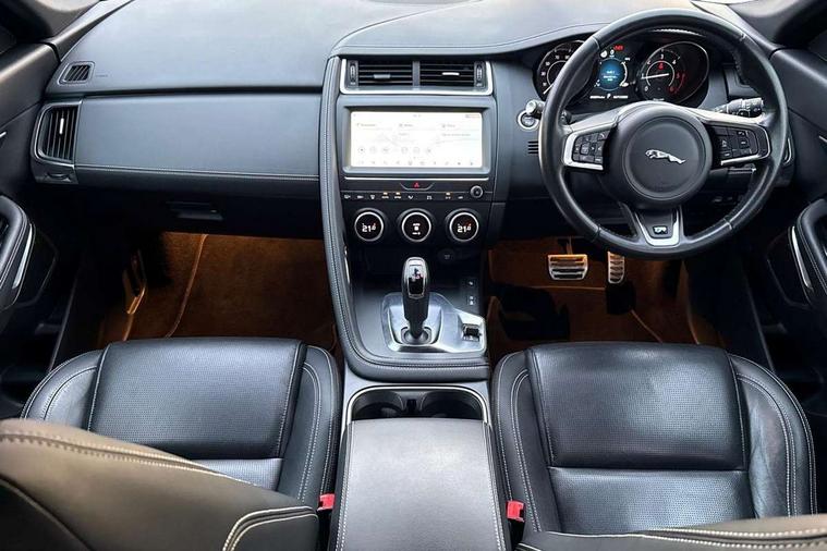 Driver condition monitor, Eco driving style assistant, Electric power assisted steering, InControl remote, InControl Touch navigation pro, Lane keep assist, Misfuelling protection device, Outside temperature gauge, Push button starter, Speed proportional steering, Start up sequence with movement in dials and lighting, Traffic sign recognition with adaptive speed limiter, Trip computer, Voice control system, Diesel particulate filter, Efficient Driveline, Passive suspension, AM/FM DVD MP3 radio, Bluetooth connectivity including audio streaming, DAB Digital radio, Dynamic volume control, InControl app, 3 flash lane change indicators, Approach Illumination, Auto dimming rear view mirror, Auto high beam assist, Automatic headlights, Body colour side cladding, Electric folding auto dimming and heated door mirrors with memory + Signature approach lamp, Electric front/rear windows with one touch/auto up/down, Front fog lights, Heated door mirrors, Heated front windscreen, Heated rear window with timer, Heated washer jets, Jaguar script and leaper, R Dynamic badge, R Dynamic body colour bumpers, Rain sensor windscreen wipers, Rear fog lights, Tailgate spoiler, Twin tailpipes with finishers, 12V power socket in rear, 2nd row 60/40 split/fold, 2nd row air vents, 3 seat bench in 2nd row, 4 Load area hooks, Black gearshift paddles, Centre armrest console, Centre headrest in row 2, Dual zone automatic climate control, Elasticated loadspace side strap, Front head restraints, ISOFIX on outer rear seats, JaguarDrive selector, LED lighting in overhead console, Loadspace cover, Loadspace lamp, Metal pedals, R branded leather steering wheel, Storage net in luggage compartment, Sunvisors with illuminated vanity mirrors, Tie down hooks in luggage area, Twin front covered cupholders, 3x3 point rear seatbelts, ABS, All surface progress control (ASPC), Customer configurable autolock, DSC - Dynamic Stability Control, Electronic brake force distribution, Electronic parking brake, Emergency brake assist, Front airbags with passenger seat occupant detector, Front and rear curtain airbags, Front and rear seatbelt reminder, Front side airbags, Hill start assist, Low friction launch, Power child locks, Torque vectoring brake, Tyre pressure monitoring system, Intrusion sensor and alarm, Locking wheel nuts,
