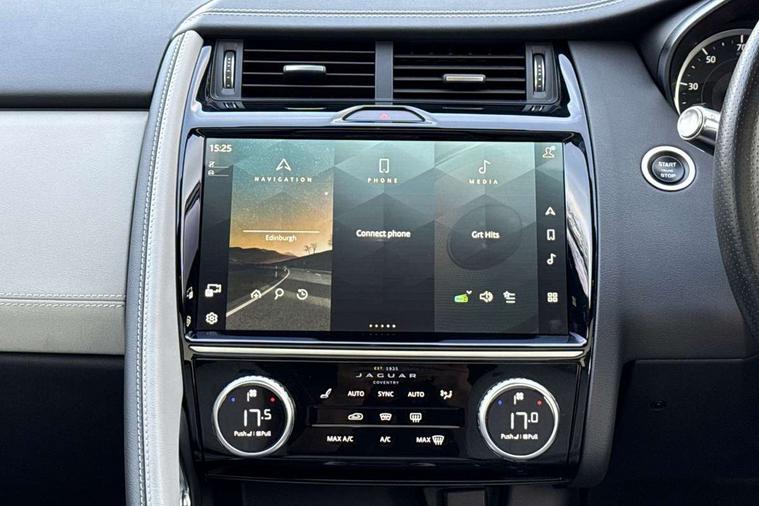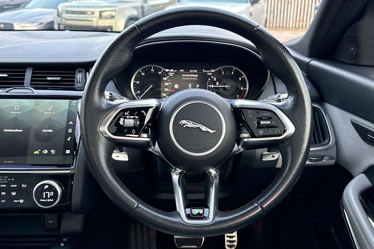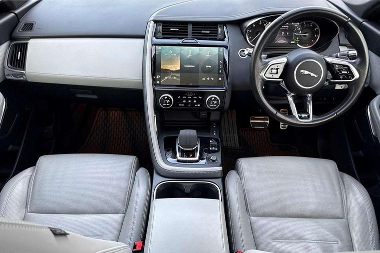 11.4" touchscreen with central ICP, 12.3" full digital instrument panel, Adaptive cruise control, Android Auto, Apple car play, Blind spot assist, Driver condition monitor, Eco driving style assistant, Electric power assisted steering, Emergency services call system, Front and rear parking aid, InControl remote, Jaguar drive control with adaptive surface response, Jaguar Toggle sport shift selector, Lane keep assist, Outside temperature gauge, Pivi pro connected infotainment system with smart settings and navigation pro, Push button start, Rear collision monitor, Rear traffic monitor, Speed proportional steering, Traffic sign recognition with adaptive speed limiter, Trip computer, Voice control system, 7 kW onboard charger, Configurable dynamics, Electric rear axle drive, Home charging cable Mode 2, Large fuel tank, Passive suspension, Public charging cable Mode 3, AM/FM DVD MP3 radio, Bluetooth connectivity including audio streaming, DAB digital audio broadcast, Dynamic volume control, 3 flash lane change indicators, Approach Illumination, Auto high beam assist, Automatic headlights, Body colour door handles, Body colour door mirrors, Body colour front and rear lower bumper main moulding and lower side cladding, Body colour upper spoiler, Body coloured side sills, Centre high-mounted stop light, Dark satin grille tips, Electric front/rear windows with one touch/auto up/down, Electric heated/power fold memory door mirrors with approach lights and auto dimming driver side, Embossed leaper for grained and windsor leather, Heated washer jets, Heated windscreen, Jaguar script and leaper, LED tail lights, LED third brake light, Narvik black antenna pod and side pillar finisher, R Dynamic badge, R Dynamic body colour bumpers, Rain sensor windscreen wipers, Rear fog lights, Rear side wing doors, Rear wash wiper, Satin black grained front outer grille, low grill mesh and low bumper valence, side fender vent mesh and finisher, rear tow eye cover and grille mesh, Twin exhaust tailpipe, Variable front intermittent wipers, 3 rear head restraints, 3 seat bench in 2nd row, 40:20:40 rear seat fold, Bright metal pedals, Carpet mats, Centre console with armrest, Enhanced ambient lighting, Hooks loadspace, ISOFIX on outer rear seats, Loadspace cover, Loadspace light, Loadspace storage net, Luggage tie-downs in loadspace, Manual height/reach adjust steering wheel, Multifunction steering wheel, Overhead lighting console, Passive front head restraints, Power sockets, R-Dynamic branded leather steering wheel, Rear air vents, Rear bench seats, Satin chrome gearshift paddles, Single front passenger seat, Sunvisors with illuminated vanity mirrors, Twin front cupholders, Two zone climate control, Windsor leather upholstery + sport seats, 3x3 point rear seatbelts, ABS, All surface progress control (ASPC), Child locks on rear doors, Customer configurable autolock, DSC - Dynamic Stability Control, Electronic brake force distribution, Electronic parking brake, Emergency brake assist, Emergency braking, Front airbags with passenger seat occupant detector, Front and rear curtain airbags, Front and rear seatbelt reminder, Front passenger airbag deactivation, Front seatbelt pretensioners, Front side airbags, Height adjustable front seatbelts, Hill start assist, Low friction launch, Power child locks, Torque vectoring brake, Tyre pressure monitoring system, Intrusion sensor and alarm, Keyless entry, Locking wheel nuts, Remote central locking,