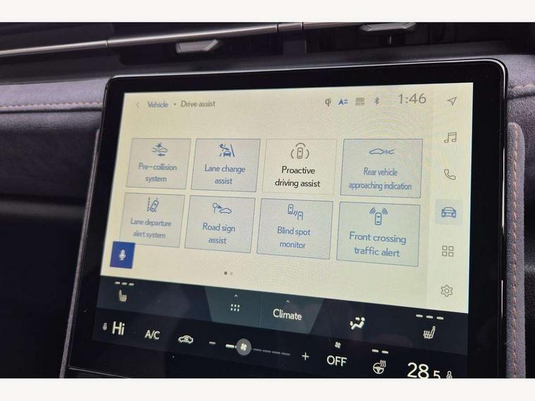 12.3" Digital instrument binnacle, Active Noise Control, Bluetooth connectivity, Cloud navigation, e-Call (emergency call), Electric power steering, Extended Lexus safety system+ 3 includes blind spot monitor, safe exit assist, camera washer and rear cross traffic alert, Front and rear parking sensors with intelligent clearance sensor, Front and rear smart entry, Front Cross Traffic Alert with Auto-Brake, Head up Display, Intelligent park assist, Lane change assist, Lane change flasher function, Lexus link connected services, Lexus safety systems+ 3 includes dynamic radar cruise control, pre collision system day and night, lane tracing assist, road sign assist, Panoramic view monitor, Pre-collision system with driver monitor, Push button start, Rear view camera, Tailgate, Wireless Apple CarPlay and wired Android Auto, Wireless Smartphone charger, Vehicle dynamic integrated management (VDIM), 1 USB (Type-C) charging ports in bottom of the instrument panel, 1 USB (Type-C) multimedia communication ports in bottom of the instrument panel, 1 USB (Type-C) ports inside front console box, 2 USB (Type-C) ports for charging in rear, Lexus Link Connect with 9.8" Touchscreen, Mark Levinson sound system with 13 speaker, Rear side monitor, Acoustic glass (front side and windshield glass), Auto dimming interior rear view mirror, Auto headlights, Black wheel arches, Cornering light, Electric adjustable/heated/auto folding door mirrors, Front and rear electric windows, Front windscreen de-icer, Full body colour bumpers, LED 3rd brake light, LED daytime running lights, LED front fog lights, LED rear lights, Power back door without kick function, Privacy UV glass, rear doors and tailgate, Rain sensing wipers, Rear side wing doors, Rear wiper, Single bulb LED headlights with adaptive high beam system, Wet arm wipers, 12V accessory connector in front console box, 3 bench rear seats in 2nd row, 3 rear headrests, 60/40 split folding rear seat, Aluminium scuff plates, Armrest with sliding cup holder, Centre armrest with storage, Cup holder in centre console, Driver and passenger door pocket, Driver's lumbar support, Dual zone automatic air conditioning, Front headrests, Glovebox, Heated front seats, Heated steering wheel, Illuminated entry system (cabin, footwell, console and door handles), Leather gear lever, Leather steering wheel, Memory function for driver seat, Multi colour ambient lighting, Nanoe-X Technology, Rear air vents, Sequential shift and paddles, Single passenger seat, Storage tray under audio panel and lower tray, Touch Sensor Buttons on Steering Wheel, Tsuyasumi interior ornamentaion, Under deck storage, 2 x Isofix child rear seat restraints, 3 point ELR (Emergency Locking Retractor) front seat belt with pretensioners, 3x3 point rear seat belts, ABS, Adjustable seatbelt anchor points, Driver and front passenger side airbags, Driver and front passenger single stage airbags, Driver knee airbag, E-Latch electric door release, Electronic parking brake, ESP, Front and rear curtain shield airbags, Front centre airbag, Manual rear child locks, Passenger airbag cut-off switch, Tyre pressure monitoring system, Alarm/anti-theft (with siren and 2 sensors), Engine immobiliser, Thatcham approved locking wheel nuts, Two motion door lock with double lock, VIN etching, Tyre repair kit,