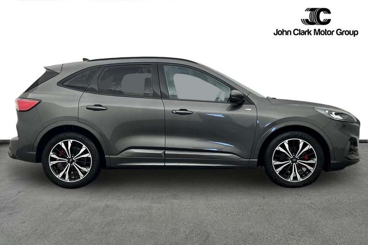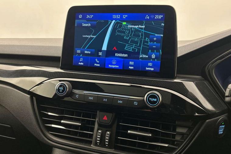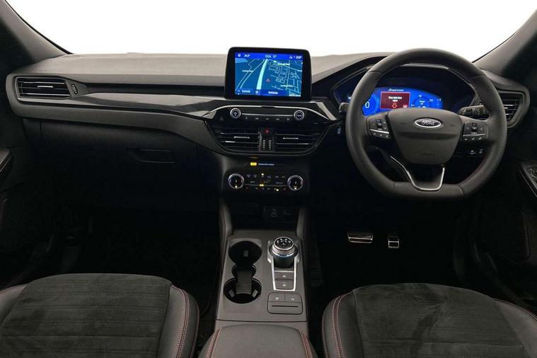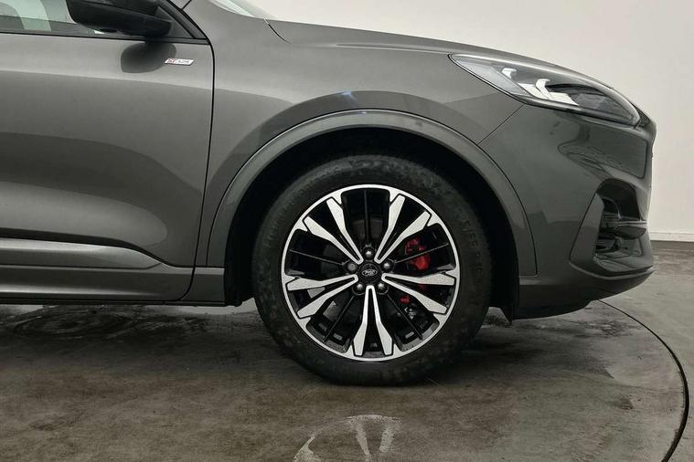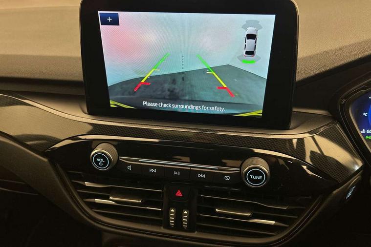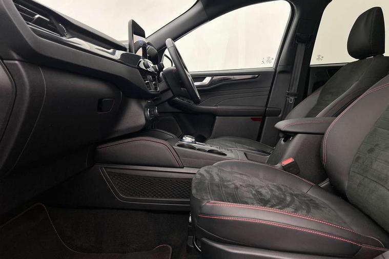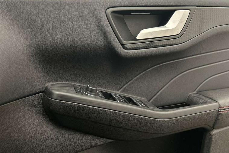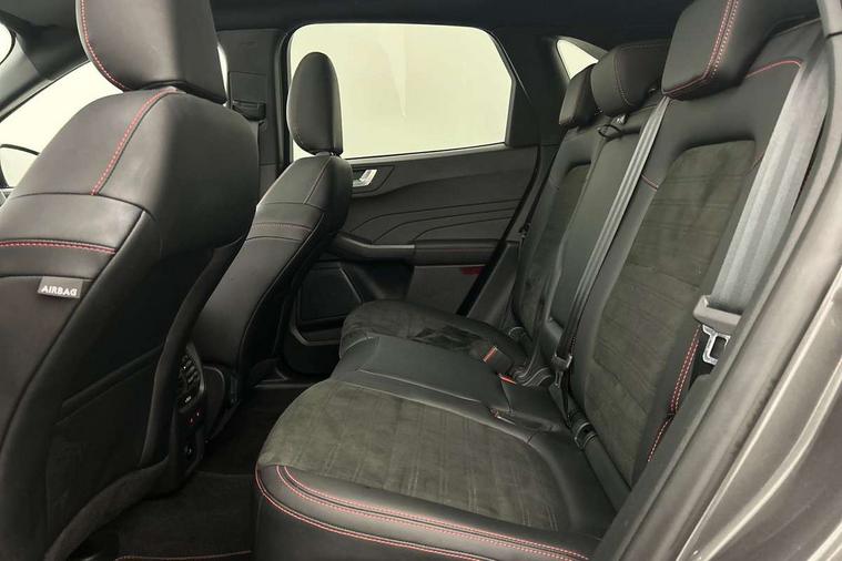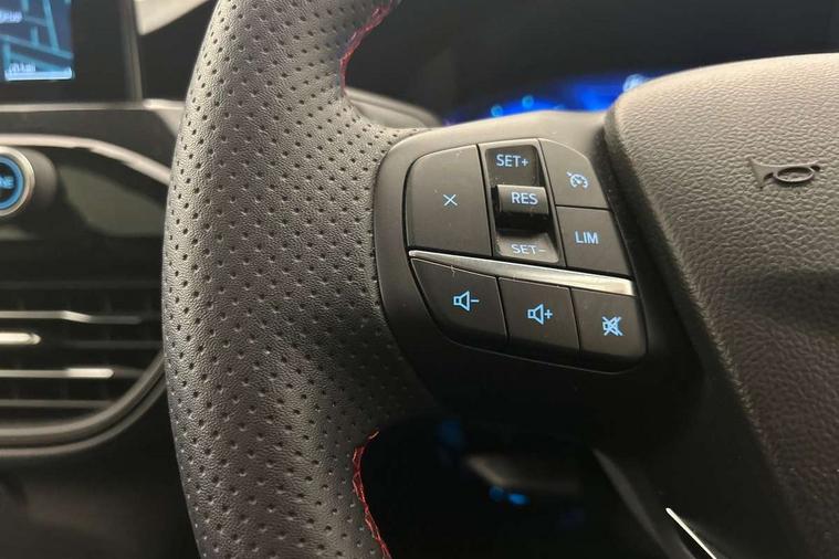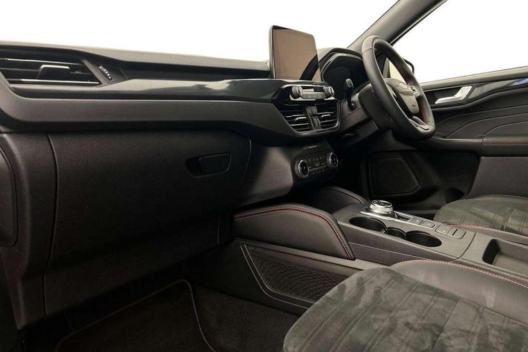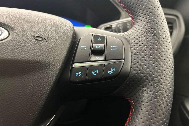 12.3" digital colour instrument cluster, Ford easy fuel, Ford SYNC 3 with 8" TFT LCD touchscreen, App Link, andriod auto/apple carPlay, emergency assistance and navigation with Ford pass connect, Front and rear parking sensors, Hands free power tailgate, Lane keeping aid with lane departure warning, Power assist steering, Rear view camera, Selectable drive modes, Service interval indicator, Sports suspension, Twist beam rear suspension, B&O premium audio system with 10 speakers and subwoofer, 2 USB ports, DAB radio/CD, Auto headlamps with high and low beam, Black roof rails, Day/night rear view mirror, Front LED fog lamps, Large rear spoiler, LED daytime running lights, LED rear lights, Power folding heated door mirrors with puddle lights, Power front/rear windows with global close, Power opening panoramic roof, Privacy glass, Quickclear heated windscreen, Rear side wing doors, Rear wiper, ST Line body styling kit with unique front and rear fascia and bumper, rear painted diffuser, front painted skid plates, dark mesh upper grille, ST Line front scuff plates, Third brake light, Twin exhausts, 10 way power adjustable drivers seat, 2nd row sliding seats with 60:40 split, 8 way manual passenger seat including lumbar support and height adjust, Alloy pedals, Centre console with electronic parking brake, Dark headlining and pillars, Electronic automatic temperature control (EATC), Flat bottomed leather steering wheel in sensico with red stitching, Front and rear head restraints, Heated passenger and driver seats, Heated rear seats, Heated steering wheel, Partial premium touch sensico leather upholstery with black cloth inserts and red stitching, Rear charging point, Single front passenger seat, Sports seats, ST Line front and rear floor mats, 3x3 point rear seatbelts, Airbags - front driver/passenger, front and rear curtain, Drivers knee airbag, Electronic stability control (ESC) and ABS, Ford MyKey Gen 2 safety system, Manual child proof rear door locks, Post collision braking, Pre collision assist with autonomous emergency braking, Rear seat Occupancy alert, Red brake calipers, Tyre pressure monitoring system, Engine immobiliser, Keyless entry and Ford power start button (Keyless start), Locking wheel nuts, Remote powered central double locking doors, Thatcham category 1 alarm,