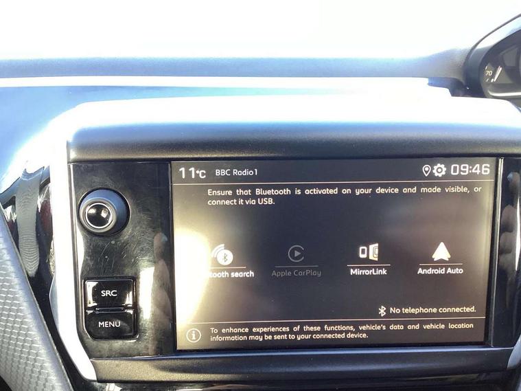 7" Capacitive colour touchscreen, Apple car play/Android Auto, Aviation style handbrake, Bluetooth system, Cruise control + speed limiter, Electrically assisted power steering, Exterior temperature indicator with ice warning, Mirror link, Multi function trip computer, Peugeot connect SOS and assistance, Peugeot i-Cockpit with 10" head-up digital instrument panel, Peugeot i-cockpit with compact multi-function steering wheel, Rear parking sensor, Service interval indicator, 2 front and 2 rear speakers + 2 tweeters, DAB Digital radio, USB interface, 2008 model designation badge on tailgate, Automatic activation of hazard warning lights, Black rubber side window trim, Body colour bumpers, Body colour door mirror shells, Body colour exterior door handles, Body colour rear spoiler with gloss back edging, Body protectors in black, Chrome front fog light trim, Colour coded door mirrors, Dark tinted Rear side and tailgate windows, Electric front/rear windows with one touch/auto up/down, Electric operated/heated door mirrors, Follow me home headlights, Gloss black rear side door upper trim, Grained grey plastic boot lip protection plate, Halogen foglights, Halogen headlights, Halogen rear fog and reversing lamps, Halogen rear number plate lights, Halogen side indicator lights integrated into door mirrors, Halogen third brake light, Heated rear windscreen, LED daytime running lights, Light grey roof bars, Radiator grille with chrome surround and chrome facets, Rear LED indicators and brake lights, Rear LED Peugeot signature 'Claw Effect' lights, Rear wash/wipe, Rear windscreen wiper triggered automatically in reverse gear, Roof mounted antenna, Static fog lights, Wheel arch extensions in Contrast grey, 1/3 to 2/3 rear bench seats with one touch fold, 3 point rear seat isofix location mount X 2, Athena Salin light grey roof lining, Auxilliary 12V power socket, Boot area tethering points, 2x restaint straps and 1x netted compartment, Comfort front seats, Driver seat height adjust, Driver/passenger sunvisors, Fixing rings x 4 in load area, Front central console with two cup holders, Front interior light with 2 reading spotlights and rear interior light with timer, Front retractable headrests and rear retractable headrests (x3), height-adjustable, Gear shift indicator, Height/reach adjust steering wheel, Leather gear knob with satin chrome insert, Leather multifunction steering wheel, Manual air conditioning, Mistral black fabric door panel armrest finish, Mistral cloth upholstery, Piano black door panel grab handle, Rear centre armrest with storage compartment, Rear coat hooks, Removable and foldable parcel shelf, Satin chrome interior door handles, Vanity mirrors, Visibility pack - 2008, 3X Rear three point retractable seatbelts, ABS/EBFD/EBA, Child safety lock, Driver and passenger airbags with passenger airbag deactivation switch, ESP with Hill Assist, Front and rear curtain airbags, Front side airbags, Front three point retractable seatbelts with force limiters, Front ventilated disc brakes and rear disc brakes, Seatbelt warning lamp and buzzer, Tyre pressure sensor, Alarm, Automatic door locking when moving off, Deadlocks, Remote central locking, Thatcham Cat 2 engine immobiliser, Carbon effect dashboard facia trim, Matt grey dashboard air conditioning panel finish, Piano black dashboard transmission tunnel, Piano black dashboard upper and instrument panel surround finish, Satin chrome outer air vent trim, 15" steel spare wheel, 16" Hydre alloy wheels,