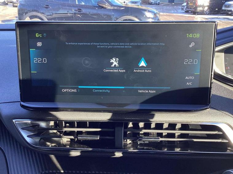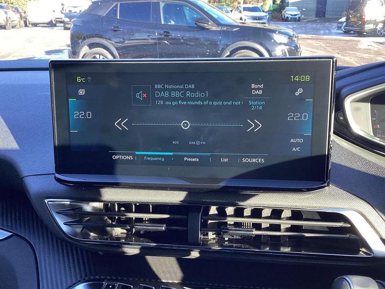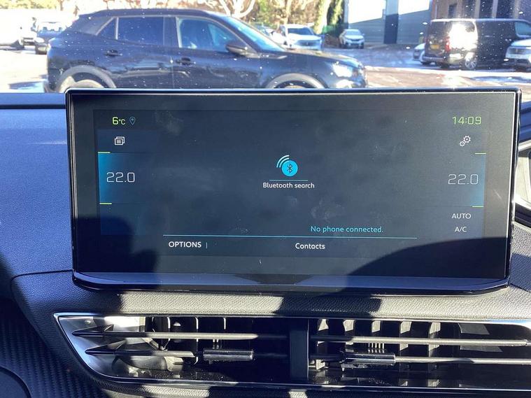 3D connected navigation with 10" HD touchscreen + voice recognition system, Bluetooth telephone facility, Drive mode selector (Electric, Hybrid, Sport), Driving Time Warning (DAA1), Emergency services call system, Extended traffic sign recognition, Exterior temperature indicator with ice warning, Lane departure warning system, Mirror screen with Apple CarPlay and Android auto, Multi function trip computer, PEUGEOT i-Cockpit with compact sports steering wheel, PEUGEOT i-Cockpit with configurable 12.3" Head-up digital instrument panel, PEUGEOT SOS and assistance, Speed limit recognition and recommendation, Deferred charging option, configurable in car or via My PEUGEOT App, Dynamic stability control and electronic anti-skid system, Mode 3 type 2 cable for wallbox charging, 6 speakers radio with mp3 compatible, DAB Digital radio, USB socket in front centre console, 2 X Rear number plate lights, Aluminium front door sills, Aluminium longitudinal roof bars, Automatic hazard light activation upon heavy brake application, Automatic triggered rear windscreen wiper in reverse gear, Black diamond roof, Black rubber side window trim, Black with chrome detailed front wing trim, Body colour door handles, Body colour rear roof spoiler with stainless steel edging trim, Body protectors (wheel arches + protection at bottom of doors) in black, Chrome frameless 'Classic' grille, Chrome rear bumper facia, Dark tinted rear side windows + tailgate window, Diamond Black door mirror shells, Eco LED headlights, Electric heated folding door mirrors, Front and rear door and sill protectors with polished stainless steel insert, Front bumper lower trim in Silver, Front windscreen wiper with magic wash cleaning system, Gloss black B and C pillar and aerodynamic deflector trim, Gloss black front bumper air scoops, Gloss black rear cluster connecting strip, Gloss black windscreen trim, Headlights left on audible warning, Heated rear windscreen with integrated antenna, HYBRID emblem on tailgate, LED daytime running lights in fang style, LED front indicator, LED side indicator lights integrated into door mirrors, LED third brake light, One touch electric front/rear windows with pinch protection, Rear LED Peugeot signature 'Claw Effect' lights, Rear side wing doors, Stainless steel door sill scuff plates, Stainless steel roof arches, 12V Sockets in dashboard, rear cabin and load area, 2 cupholders in front centre console, 2 x Rear reading spotlights, 2x Rear coat hooks, 3x Isofix child seat fittings in the front passenger and outer rear seats, 4 Grab handles retractable and damped, Aluminium pedals, Blue ambient lighting for connecting zone, Blue ambient lighting to headup instrument panel, Brumeo fabric trimmed door armrests, Cabin pre-conditioning, Centre front armrest with butterfly wing opening and illuminated storage compartment, Driver seat manual adjustment (longitudinal and back rest angle), Dual zone automatic climate control, e-Toggle compact gear selector, Electric power steering with reach and rake adjustable steering column, Fixed boot floor with access to the charging cable storage box, Flocked glovebox interior, Footwell illumination, Front interior light with 2 reading spotlights and rear interior light with timer, Front passenger seat manual adjustment (longitudinal and back rest angle), Front seat back map pockets, Gear shift indicator, Height adjustable front seats, Illuminated glove box, central storage area and load area, Illuminated vanity mirrors, Individual left and right controls in boot for seat folding, Leather steering wheel with detail stitch, LED interior lighting in storage spaces and load area, LED roof interior lighting, Rear armrest with ski flap and two cup holders, Rear bench seat with central armrest and ski hatch, Rear centre console ventilation system, Roof lining - Mistral black, Satin chrome dashboard trim, Satin chrome digital instrument panel, Satin chrome front door panel recess trim, Satin chrome interior door handles, Satin chrome scorpion's tail and toggle switch trim, Seatbelt not fastened audible and visual alert for front seats, Seatbelt unfastened on the move audible and visual alert for front and rear seats, Single front passenger seat, Visibility pack - 3008, 3x Rear three-point retractable seatbelts with force limiters in the outer rear seats, ABS (Anti-lock Braking System) with EBD (Electronic Brakeforce Distribution) and EBA (Emergency Braking Assistance), Acoustic vehicle alerting system, Adaptive driver and front passenger airbags with passenger airbag deactivation function, Driver and front passenger side airbags, Electric child locking functionality on rear windows and doors, Electric parking brake, Front and rear curtain airbags, Front optimised safety headrests and 3 x rear retractable headrests with height adjustable, Front three point retractable seatbelts height adjustable with pre tensioners and force limiters, Front ventilated disc brakes and rear disc brakes, Hill start assist, Two tone horn, Automatic door locking when moving off, Electronic immobiliser, key operated exterior door lock from the left hand door, Perimetric and volumetric alarm with lift and tilt sensor, Peugeot Open and Go System, Remote control central locking with two plip keys, Carbon effect Dashboard, front and rear door panel finish, 18" Detroit storm grey diamond cut alloy wheels, Michelin e-primacy 225/55 R18 102V class A+ tyres, Tyre repair and inflation kit,
