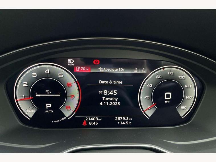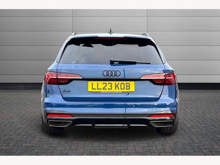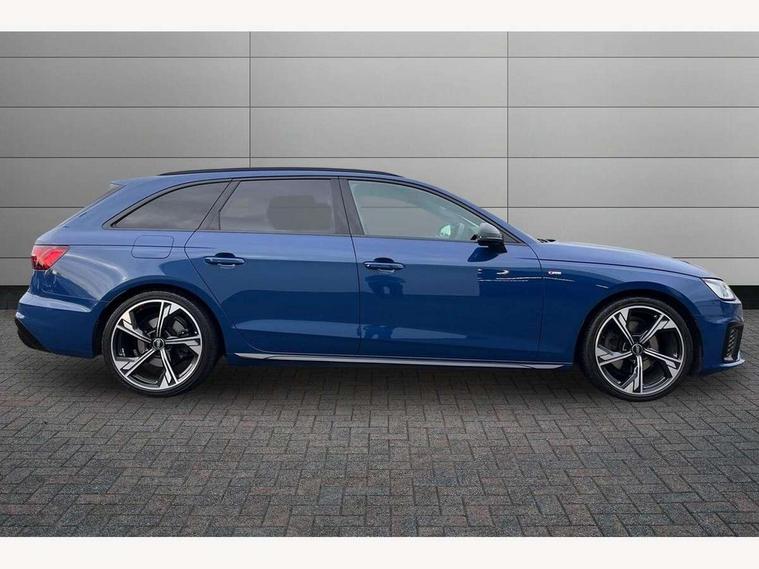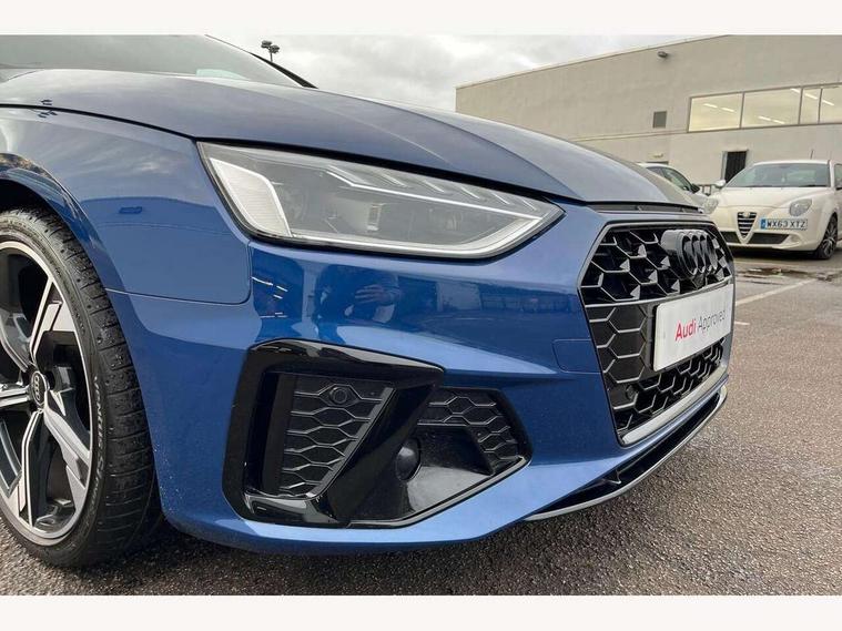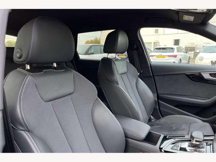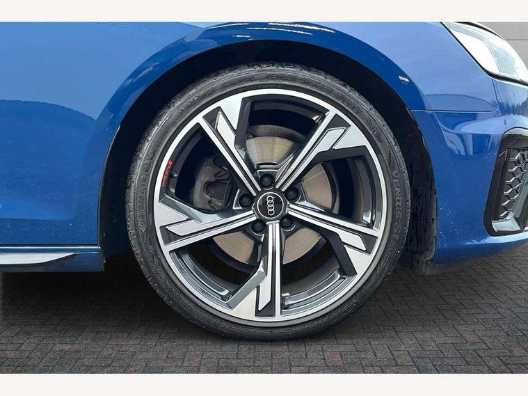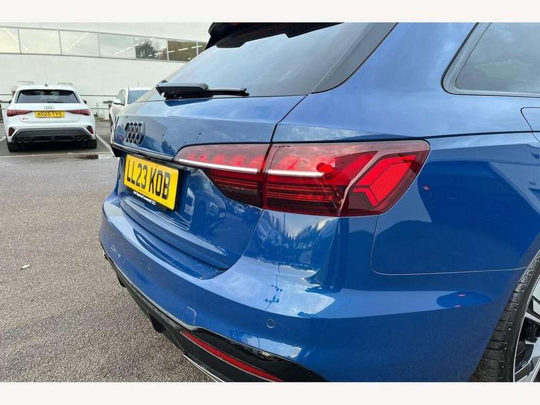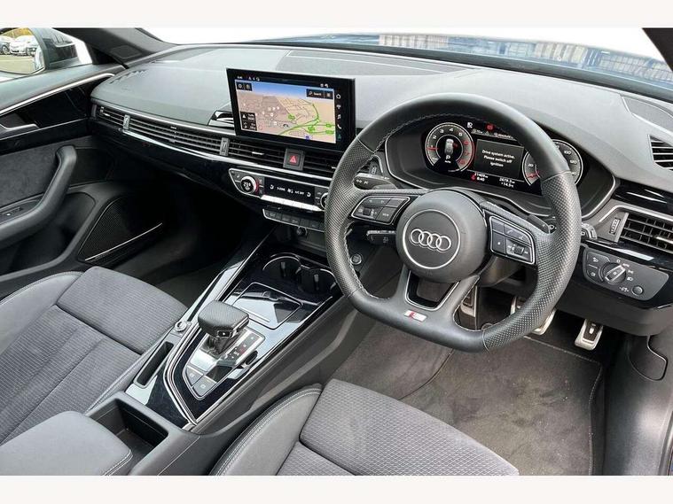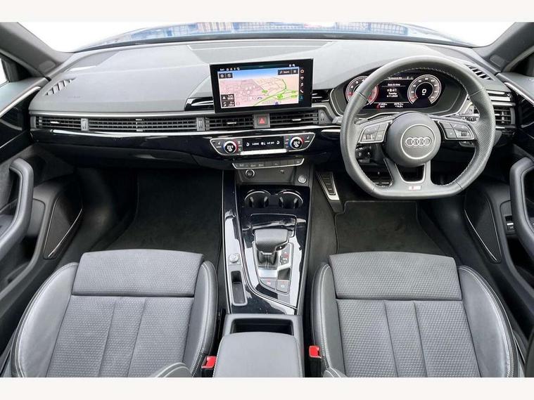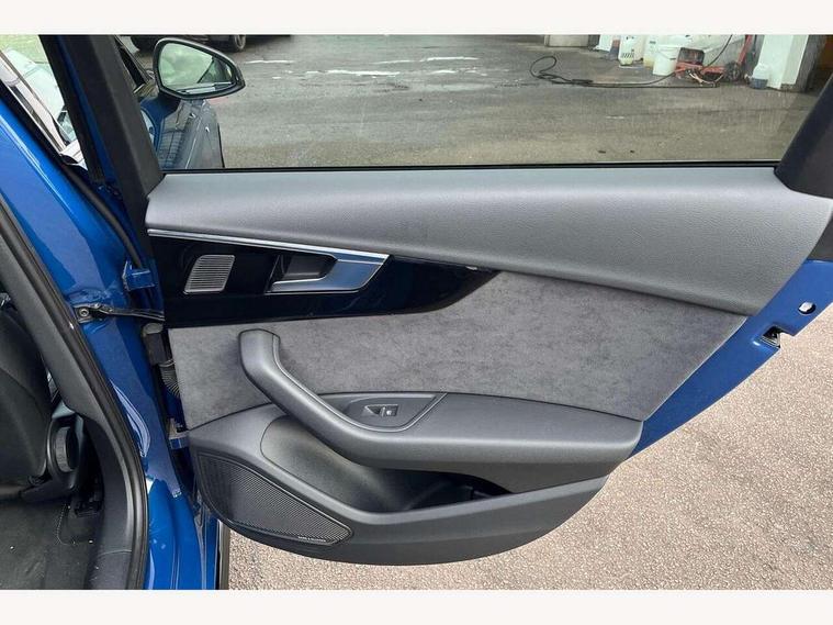 Audi connect safety and service (e-call), Audi connect with Amazon Alexa Integration, Audi drive select, Audi smartphone interface, Audi virtual cockpit, Automatic start-stop system with coasting functionality and efficiency programme, Bluetooth interface, Electromechanical power steering, Email, calendar and text messages displayed via MMI, Front and rear parking sensors, MMI Navigation plus with MMI touch includes 10.1" high resolution colour MMI display, 3D map, Power operated tailgate, Rear view camera, Voice control system, 54 litre fuel tank, Sports suspension lowered by 23mm, 2 USB charging ports, 8 passive loudspeakers, DAB digital radio reception, Audi beam uses LEDs to project the audi logo onto the ground as you exit your A4, Auto dimming rear view mirror, Black Audi rings and black badging (model name in black badging, no engine badging), Body colour door handles, Body colour front spoiler lip, Body colour side sill trim, Electrically folding auto dimming/adjustable/heated door mirrors with LED side indicators and kerb view function for passenger side, Exhaust tailpipes in high dark chrome, Grained matt black side air inlets with matt aluminium silver inlay, High beam assistant, High gloss black B pillar trims and triangular rear door trim, LED headlights with LED rear lights + dynamic rear indicators + headlight adjustment and high beam, turning light + LED daytime running lights, LED third brake light, Privacy glass, Rain and light sensors, Rear diffuser in matt black with trim strip in matt aluminium silver, Rear side wing doors, Rear wiper, RS4 rear spoiler in body colour, S Line roof edge spoiler, Sport front and rear bumpers with side skirts, Variable intermittent front wash/wipe, Windscreen with acoustic glazing, 4 way electric lumbar support for driver and front passenger, 40/20/40 split folding 3 rear seat bench in 3 parts with rear centre armrest, Black cloth headlining, Black perforated leather gearknob, Contrast stitching on seats, steering wheel and gear lever gaiter, Deluxe 3 zone electronic climate control, Door sill trims with aluminium inlay, Electric load area cover, Front and rear head restraints, Front centre armrest, Heated front seats, Illuminated door sill trims with S logo, ISOFIX child seat mounting and top tether, Manual seat adjustment, Single front passenger seat, Stainless steel pedals and foot rest, Tool kit, Black styling pack - A4 Avant, LED Interior light pack - A4/S4, 3 rear seatbelts, 6 airbags - Driver, front passenger, curtain and side windows, Electronic Stabilisation Control (ESC) including ABS, ASR and EDL, Hill hold assist, Multi collision brake assist, Pop-up bonnet for pedestrian protection, Pre sense city, Rear door child safety locks, Seatbelt monitoring, Warning triangle and first aid kit, Anti theft alarm, Anti theft wheel bolts, Central locking, Keyless Go, Piano black finish inlay, Tyre repair kit,