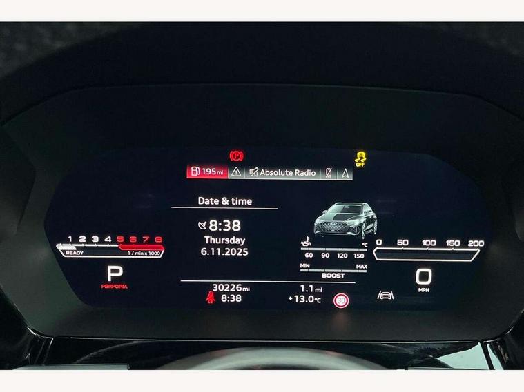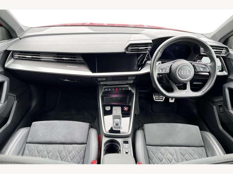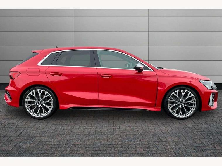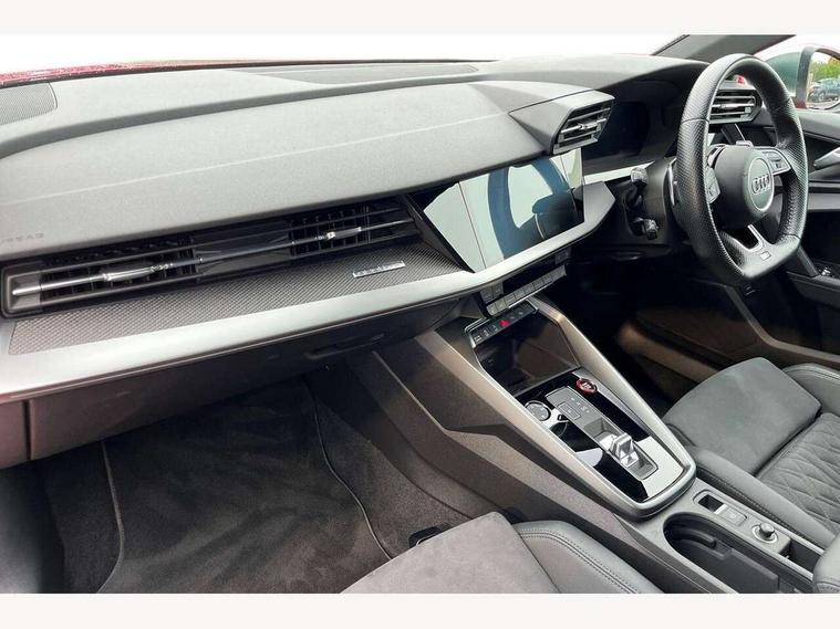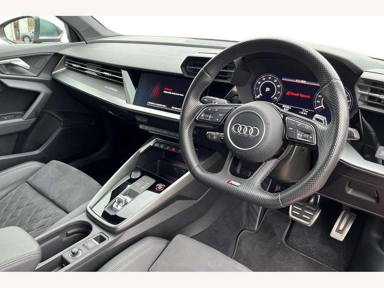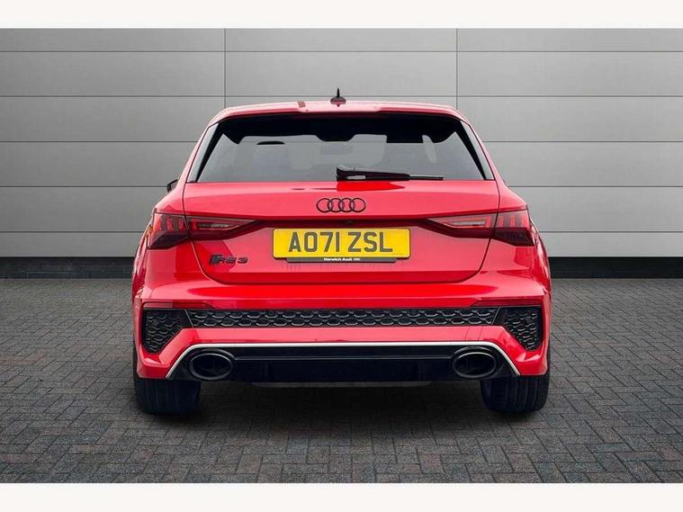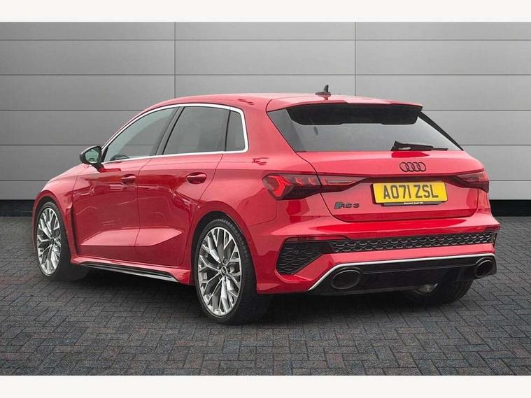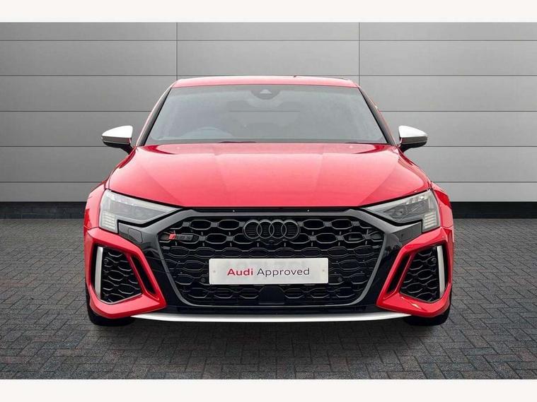 Audi connect emergency call and service, Audi smartphone interface, Audi virtual cockpit with RS specific display 12.3" full colour digital instrument cluster, Automatic start/stop system with recuperation, Bluetooth interface, Collision avoidance assistant, Lane departure warning system, Legal emergency call, Manual boot opening, Parking assist with parking system plus, Progressive power assisted steering, Quattro permanent four wheel drive, Rear suspension, Audi sound system impressive sound with 10 loudspeakers including centre speaker and subwoofer, 6-channel amplifier with a total output of 180 watts, DAB Digital radio, 3rd brake light, Acoustic glass windscreen, Audi beam uses LEDs to project the Audi sport logo onto the ground as you exit your RS 3, Auto dimming rear view mirror, Black side skirts, Body colour roof, Door mirrors - electrically adjustable, heated, folding and auto dimming on both sides, Headlight washers, LED headlights with LED rear lights + dynamic rear indicators, Light and rain sensors, Matt aluminium door mirrors, Matt aluminium window trims, Privacy glass - dark tinted rear and rear side windows from B-pillar backwards, Rear window wiper and washer system, 40/20/40 split folding rear seat bench, Black cloth headlining, Dual zone electronic climate control, Front and rear headrests, Front centre armrest, Front sports seats RS embossed logo, Front/rear floor mats, Heated front seats, Honeycomb stitching and RS embossing, Illuminated door sill trims inlays in aluminium with RS 3 logo, Manually adjustable front seats, RS emblems, Stainless steel pedals and front footrest in black, Tool kit, Aluminium interior elements pack - RS3, Ambient lighting pack - RS3, MMI navigation plus with MMI touch - RS3, RS bodystyling - RS3, Storage Pack - RS3, 3x3 point rear seat belts, ABS/EBD, ASR, Audi pre sense front, Driver/Front Passenger airbags, EDL, ESC - Electronic Stability Control + traction control, Front passenger airbag deactivation, Front side airbags with head airbags and interaction airbag, Hill hold assist, Seat belt reminder with passenger presence detection in rear, Tyre pressure loss indicator, Warning triangle and first aid kit, Anti theft alarm, Anti-theft wheel bolts, Electronically operated child lock, Remote control central locking, Carbon inlays, accent surfaces in the dashboard and centre console in platinum grey silk effect paint finish, 19" 10 Y spoke platinum grey, gloss turned finish alloy wheels, Tyre repair kit,