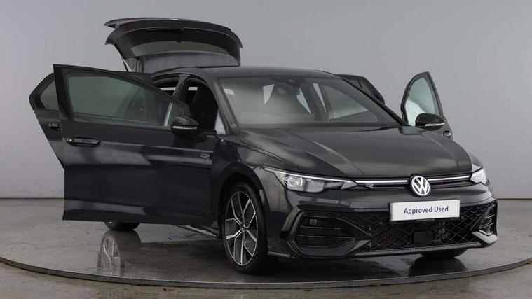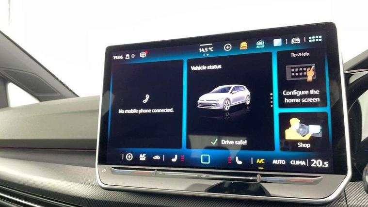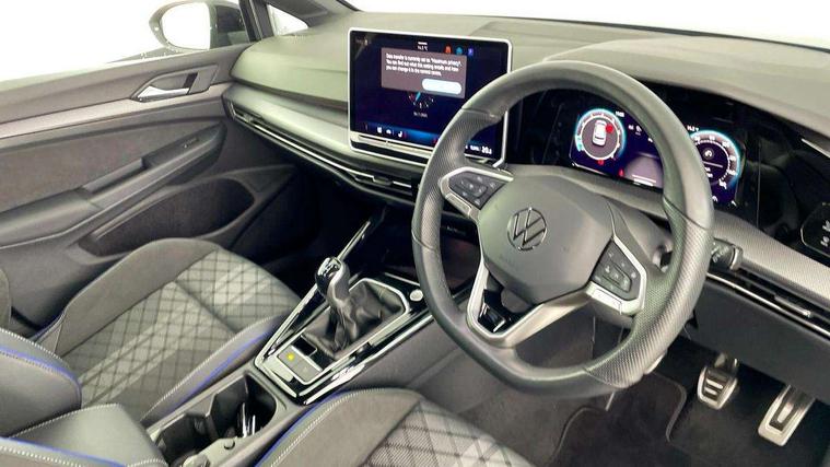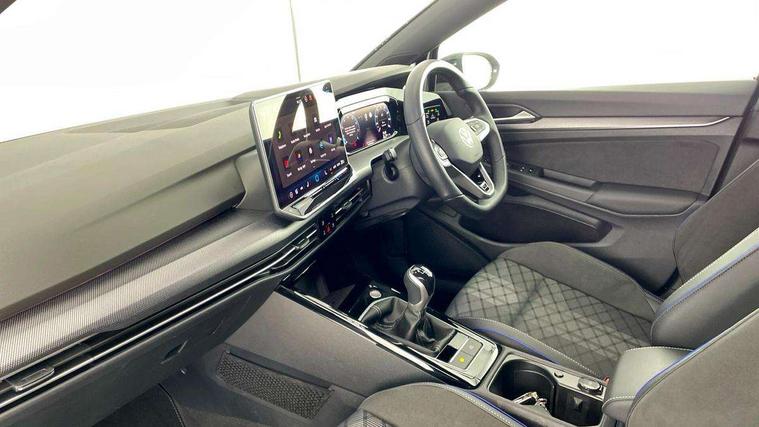 Activated carbon canister, Adaptive cruise control (ACC) with speed limiter and front assist (reacting to vehicles pedestrians and cyclists), Advanced driver attention and drowsiness monitor, Driver alert system, Dynamic road sign display, Dynamic steering, E-Sim card for online connectivity, eCall emergency call system, Multi-color Digital cockpit pro, selection of different info profile possible, Multifunction camera for distance control, Navigation system, Oncoming vehicle braking when turning including swerve support, Power assisted speed sensitive steering, Preparation for light assist system, Speedo, rev counter, electronic odometer, trip, service interval display, exterior temperature and fuel gauge, Voice assistant and voice enhancer with chat GPT, Warning signal and warning light for front and rear seatbelts not fastened, We connect plus preparation, We connect preparation, Wireless app connect, Petrol Particulate Filter, Start-stop system with battery regeneration (recuperation - energy recovery during braking), XDS electronic differential lock for improved traction and handling, 2 USB C ports in front, 2 USB charging sockets on the centre console in the rear charging capacity upto 45W, Comfort telephony + wireless charging, without wireless aerial connection, Digital radio reception (DAB), Diversity antenna for FM reception, Infotainment system with 12.9" display, 3rd brake light, Auto dimming rear view mirror, Auto headlights, Automatic headlamp activation with Coming home and Leaving home feature, Body colored bumpers in R-Line style, Body colour door handles, Chrome plated radiator grille inserts and light switch surrounds, Dynamic headlight range control with dynamic cornering light, Exterior mirrors convex on the left and aspherical on the right, Front and rear electric windows, Heat insulating windshield made of laminated glass, Illumination Volkswagen logo, Iluminated lighting animation with wake up/goodbye scenario and illuminated door handles, LED daytime running lights, Rain sensor, Rear exhaust tailpipe, Rear fog light on one side and reversing lights on both sides, Rear side wing doors, Rear windscreen washer and wiper with interval delay, Remote electrically foldable door mirrors, puddle lights and reverse activated passenger's door mirror, Welcome light with surround lighting, 12V socket in front centre console, 12V socket in luggage compartment, 3 rear head restraints, 3 seat bench in 2nd row, Ambient lighting with 30 colour including LED light unit in front footwell with selectable light colour, Brushed stainless steel pedals, Carpet mats, front and rear, Front centre armrest, Front passenger seat, Front sports seats, ISOFIX anchors for child seats on outer rear bench seats and on front passanger seat compatible for i-Size, Luggage compartment lighting, Rear cupholder and loadthough, Soul black instrument panel, Split folding backrest with centre armrest and unsplit rear seat bench, Storm grey roof lining, Sun visors with illuminated vanity mirrors, Black exterior Styling package with Matrix LED headlights - Golf, Winter package - Golf Hatchback, 3 point height adj front seatbelts + pretensioners, 3 rear three point seatbelts, ABS, Autonomous emergency braking front assist with pedestrian and cyclist monitoring, Child locks on rear doors, Driver and front passenger airbag with front passenger airbag deactivation, Electronic parking brake with auto hold, ESC (Electronic Stability Control), Extended pedestrian protection measures, Rear disc brakes, Two tone horn, Tyre pressure monitoring system, Volkswagen roadside assistance, Anti theft wheel bolts, Preparation for alcohol interlock, Decorative inserts carbon grey for dashboard and front door trim panels, 18" Leeds alloy wheels,