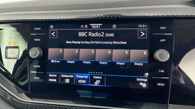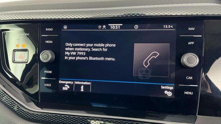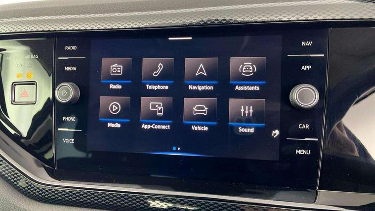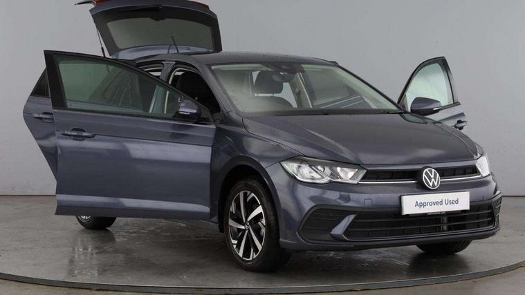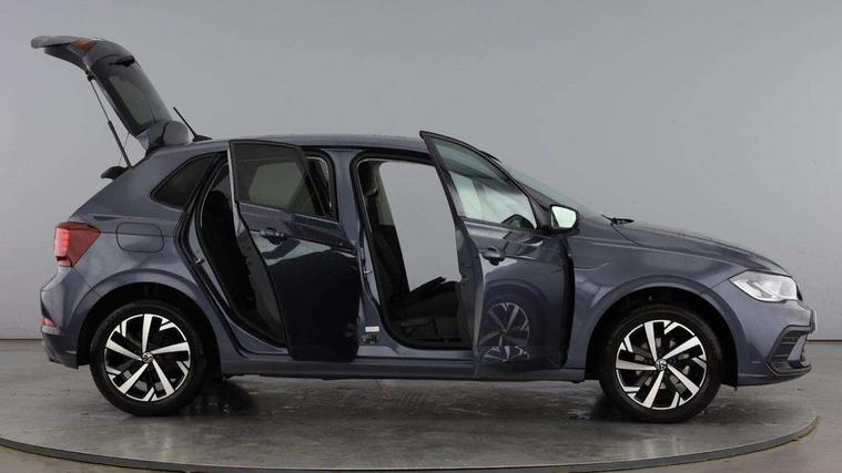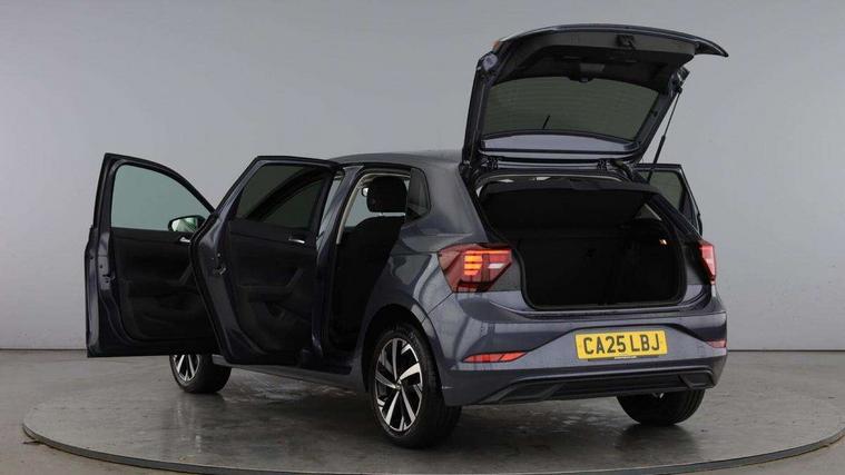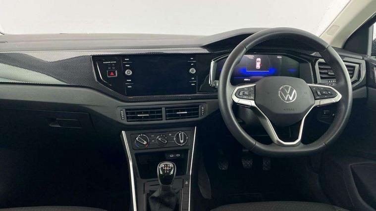 Adaptive cruise control without follow-to-stop and speed limiter, Advanced driver attention and drowsiness monitor, Bluetooth mobile phone interface, Dynamic road sign display, Emergency call service, Multifunction front facing camera for distance control, Park distance control, Power assisted speed sensitive steering, Preparation for navigation system with media and internet package, Preparation for We connect and We connect plus, Rear view camera, Speedo and rev counter, electronic odometer, trip, service interval display and exterior temperature gauge, Standard rear axle, Travel Assist - Lane keeping system and traffic jam assist, Travel assist including emergency assist, Trip computer, Warning signal and warning light for front and rear seatbelts not fastened, Washer fluid level indicator, Wireless app connect, Front wheel drive, Rear shock absorpion, Start-stop system with battery regeneration (recuperation - energy recovery during braking), DAB Digital radio, Diversity antenna for FM reception, Front and rear 6 speakers, Automatic dimming interior rear view mirror, Automatic headlight control with LED separate daytime running lights with coming/leaving home function, Body colour bumpers with chrome inserts, Body colour door handles, Body colour door mirrors, Electric front windows, Engine badge deletion, Headlight range adjustment, Heat insulating and laminated safety glass windshield, LED Headlights, LED rear combination lamps, Power folding adjustable/heated exterior mirrors and front passenger exterior mirror lowering function, Rain sensor, Rear electric windows, Rear fog light, Rear side wing doors, Rear tinted glass from B-pillar backwards approx 65% tinted, Rear windscreen washer and wiper with interval delay, Third brake light, 12V power socket in centre console, 2 front and 2 rear reading lights with switch off delay and dimmer, 2 USB-C ports in the front, 2 USB-C charging sockets on the center console in the rear, 3 rear head restraints, 60/40 split folding rear seat and rear seat bench not split, Ceramique roof lining, Chrome plated radiator grille inserts, air vent surrounds and light switch surrounds, Door and side trim panel, Driver and front passenger seat height adjustment, Driver/passenger sunvisors with illuminated vanity mirrors, Front centre armrest, Front seat backrest storage pockets, Front standard seats, Handbrake lever handle in leather, Hartley/Thomas cloth upholstery, Headliner in recycled material, Isofix child seat preparation easy-fit (for two outer rear seats, and front passenger seat) compatible with I-size, Leather trimmed gear knob, Luggage compartment cover, Luggage compartment lighting, Removable luggage compartment floor, Single front passenger seat, Standard climatic zones, Standard pedal cluster, Three spoke leather wrapped multifunction steering wheel, Light and vision pack - Polo, 3 point height adj front seatbelts + pretensioners, 3 point seat belt for centre rear seat, 3 point seatbelts, outer rear with ECE lable, ABS, Driver and front passenger airbag with front passenger airbag deactivation, Drivers and front passengers safety optimised head restraints, ESC (Electronic stability control) + EDL (Electronic Differntial lock) and ASR (Traction control), Extended and predictive pedestrian/ cyclist protection, Front assist with autonomous emergency braking (for Adaptive Cruise Control ACC up to 130 mph), Front curtain and side airbags with center airbag, Front disc brakes, Hill hold control, Manual child lock in rear doors, Rear drum brakes, Single tone horn, Tyre pressure loss indicator, Alarm with interior protection, Anti-theft alarm system with interior monitoring, backup horn, and towing protection, Anti-theft wheel bolts, Electronic engine immobiliser, Lava stone black gloss/matt decorative inserts in dash and front door panels, 16" Torsby alloy wheels, Low rolling resistance tyres,