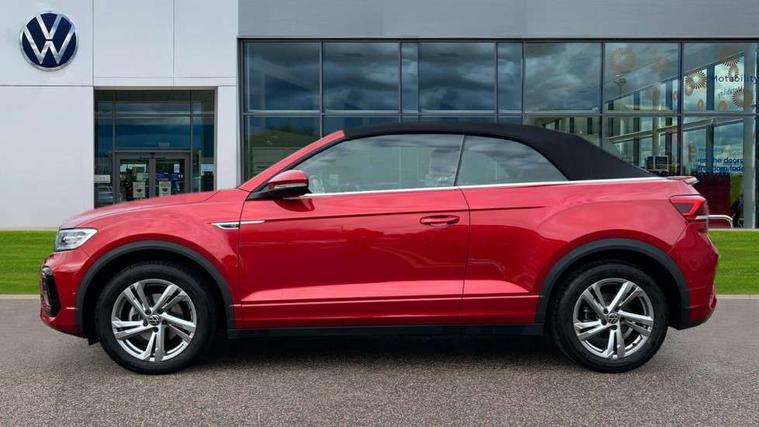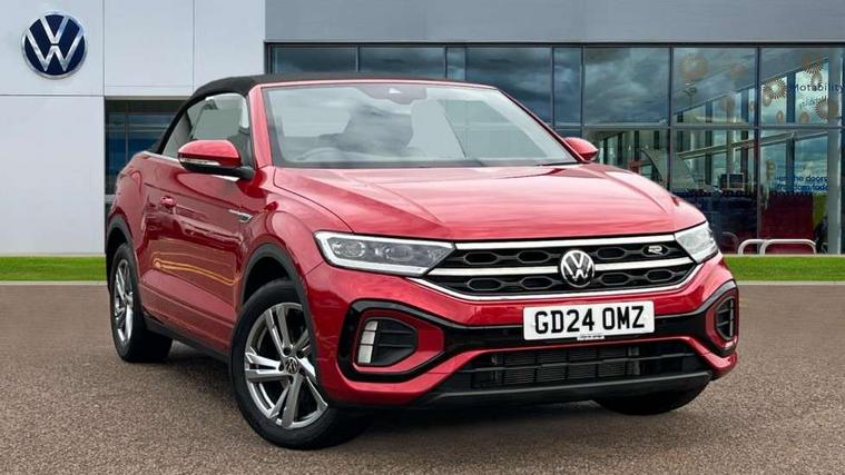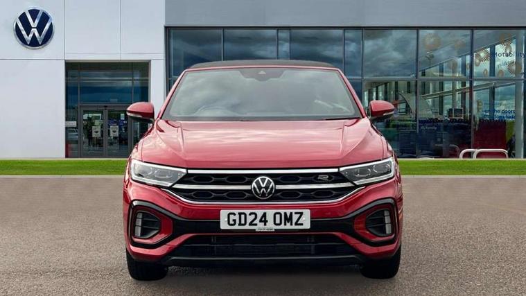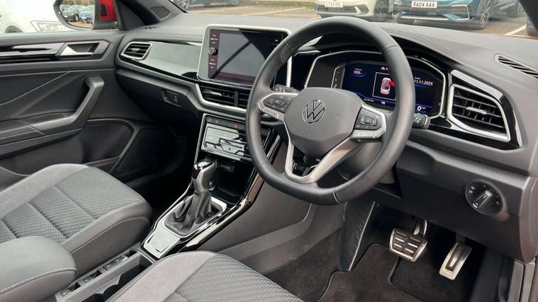 Adaptive cruise control and speed limiter, Advanced driver attention and drowsiness monitor, Bluetooth mobile phone interface, Brake pad wear indicator, Car information display, Digital Cockpit Pro with 10.25" Display, Driver tips and journey analysis, Emergency call service, Modified key software - reduce switch off time for key status change to Long no motion, Multifunction computer with visual gear change recommendation for fuel consumption, Multifunction front facing camera, Online services, Park assist including front and rear parking sensors, Speedo and rev counter, electronic odometer, trip, service interval display and exterior temperature gauge, Start/stop system with brake energy recovery, Tailgate/trunk lid release from outside, Warning sound and light for front seatbelts unfastened, Diversity antenna for FM reception, Music playback - MP3, WMA and AAC files, SMS functionality - read, compose and send SMS messages using touch-screen display, Title and cover art display, USB-C Interface and USB charging socket, We Connect and We Connect Plus functionality, Ambient lighting with logo projection, Auto dimming interior rear view mirror, Automatic hazard lights activation under emergency braking, Automatic headlight control with LED separate daytime running lights with coming/leaving home function, Black roof, Body colour door handles, Body colour rear spoiler, Chrome effect left and right trapezoid exhaust tailpipe fascia surround, Chrome trim on upper and lower radiator grille, Dark red rear combination lamps in LED technology, Dusk sensor, Exterior mirrors aspherical on driver side, convex on front passenger side, Heat insulating glass windscreen, High level 3rd brake light, LED rear number plate lights, Power operated canvas convertible top, Power windows with comfort operation and circuit breaker, R-Line design body coloured bumpers, Rain sensor, Rear boot, Rear exhaust tailpipe, Rear fog light on one side and reversing lights on both sides, Remote electrically foldable door mirrors, puddle lights and reverse activated passenger door mirror, Volkswagen roundel, Windscreen wiper with intermittent wipe light, Without exterior ambient lighting, 12V socket in centre console storage area, 2 LED front reading lights, 2 seat bench in 2nd row, 50:50 Split folding rear seat backrests with fixed rear seat bench, Air care climatronic air conditoning system with active combination filter and 2-zone temperature control, Black door lower parts with chrome trim, Chrome plated surround to light, mirror and window switch, Door and side trim panel with leatherette insert, Easy entry backrest release, Front and rear carpet mats with black stitching, Front centre armrest, Front cupholders x 2, Front door pockets, Front seat back storage pockets, Front sports comfort seats with manual height adjustment, Heated leather wrapped multi function sports steering wheel with tiptronic, Height/reach adjust steering wheel, Inserts of front seats and outer rear seats in ArtVelours titan black, Instrument lighting, white adjustable panel illumination, Interior light delay, Interior light in footwell, Interior lighting with switch off delay and contact switches on all doors, Interior white ambient lighting and surround lighting, Isofix child seat preparation, Lockable glove compartment with light, Luggage compartment lighting, Power adjustable lumbar support in front, Rear head restraints, Single front passenger seat, Stainless steel pedals, Sun visors with illuminated vanity mirrors, Unique R Line door sill protectors, Driver assistance pack without proactive passenger protection - T-Roc Cabriolet DSG, Sports pack - T-Roc cabriolet, 2 x 3-point seatbelts/outer rear seats with ECE label, Driver and front passenger airbag with front passenger airbag deactivation, Driver and front passenger safety-optimised head restraints, Drivers seatbelt reminder, Electronic parking brake, Electronic Stability Control (ESC) including ABS, ASR and EDL, Front and rear disc brakes, Front assist with autonomous emergency braking, Pedestrian monitoring, Predictive pedestrian protection, Rigid safety cell with front and rear crumple zones, Side airbag/thorax airbag system, for front passengers, Three point height adjust front seatbelts + pretensioners, Two tone horn, Tyre pressure loss indicator, Volkswagen roadside assistance, Anti-theft alarm system with interior protection and central locking system with SAFELOCK, radio remote control and 2 remote control folding keys, Electronic engine immobiliser, Trims for alloy wheels,