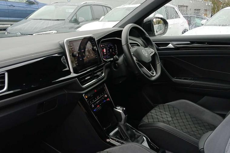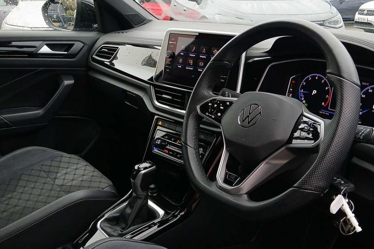 10.25" Digital cockpit pro, Bluetooth mobile phone interface, Driver alert system with fatigue detection, Driver tips and journey analysis, Emergency call service, Lane keeping system Lane Assist, Modified key software - reduce switch off time for key status change to Long no motion, Online services, Park assist including front and rear parking sensors, Service interval indicator, Tailgate/trunk lid release from outside, Think blue trainer driver tips and journey analysis, Warning sound and light for front seatbelts unfastened, Wireless app connect, Battery regeneration during braking, Start/stop function with battery regeneration, Diversity antenna for FM reception, Front and rear 6 speakers, Music playback - MP3, WMA and AAC files, Premium USB cable in choice of either Apple or Android smartphone compatibility, SD card slot, Simultaneous pairing of 2 compatible mobile devices, Title and cover art display, We Connect and We Connect Plus functionality, 3rd brake light, Auto dimming interior rear view mirror, Automatic hazard lights activation under emergency braking, Automatic headlight control with LED separate daytime running lights with coming/leaving home function, Extended roof spoiler, Exterior mirrors aspherical on driver side, convex on front passenger side, External USB type C socket and charging sockets, Front windscreen wiper with intermittent wipe and 4 position delay, Heated rear window, LED Plus headlamps, LED rear combination lamps, LED rear number plate lights, LED tail lamp rear comination lamps, Power windows with comfort operation and circuit breaker, R-Line design body coloured bumpers, Rain sensor, Rear exhaust tailpipe, Rear fog light on one side and reversing lights on both sides, Rear side wing doors, Rear wash/wipe with intermittent wipe setting, Remote electrically foldable door mirrors, puddle lights and reverse activated passenger's door mirror, 12V power socket in centre console, 3 rear head restraints, 3 seat bench in 2nd row, 4 load lashing points in luggage compartment, Air care climatronic air conditoning system with active combination filter and 2-zone temperature control, Black roof lining, Chrome plated radiator grille inserts, air vent surrounds and light switch surrounds, Door and side trim panel with leatherette insert, Drawer under drivers seat, Front + rear carpet mats, Front centre armrest, Front cupholders x 2, Front footwell illumination, Front reading light, Front scuff plates with R logo, Instrument lighting, white adjustable panel illumination, Interior ambient lighting and surround lighting, Interior light delay, Isofix child seat preparation, Leather gearshift handle, Load-through provision with cup holder when folded down ('Unsplit rear seat bench, split folding backrest, with centre armrest), Luggage compartment lighting, Single front passenger seat, Stainless steel pedals, Storage compartment in left and right luggage area, Storage compartment in rear doors, Storage compartments in driver and front passenger doors, Sunvisors with illuminated vanity mirrors, Variable boot floor, height adjustable and removable, Driver assistance pack without proactive passenger protection - T-Roc, 3 point height adj front seatbelts + pretensioners, 3 point seatbelts in outer rear with ECE label, ABS, Child locks on rear doors, Driver and front passenger airbag with front passenger airbag deactivation, Driver and front passenger safety-optimised head restraints, Drivers seatbelt reminder, Electronic parking brake, Electronic Stability Control (ESC) inc EDL (Electronic Differential Lock) and ASR (Traction Control), Front and rear passengers curtain airbag system including front side airbags, Front assist with city emergency braking and pedestrian monitoring, Front seat side impact airbags, Hill start assist, Predictive pedestrian protection, Rear disc brakes, Single tone horn, Tyre pressure loss indicator, Volkswagen roadside assistance, Alarm with interior protection, Anti-theft alarm system with interior monitoring, backup horn, and towing protection, Remote central locking with SAFELOCK, radio remote control with 2 remote control folding keys, Trims for alloy wheels,