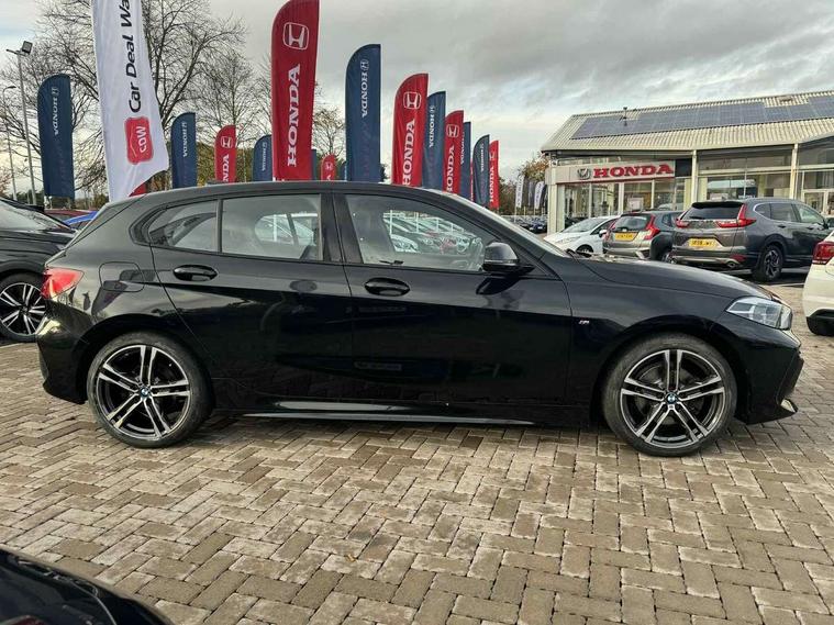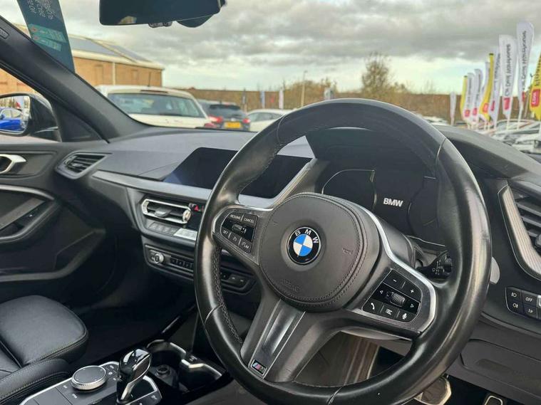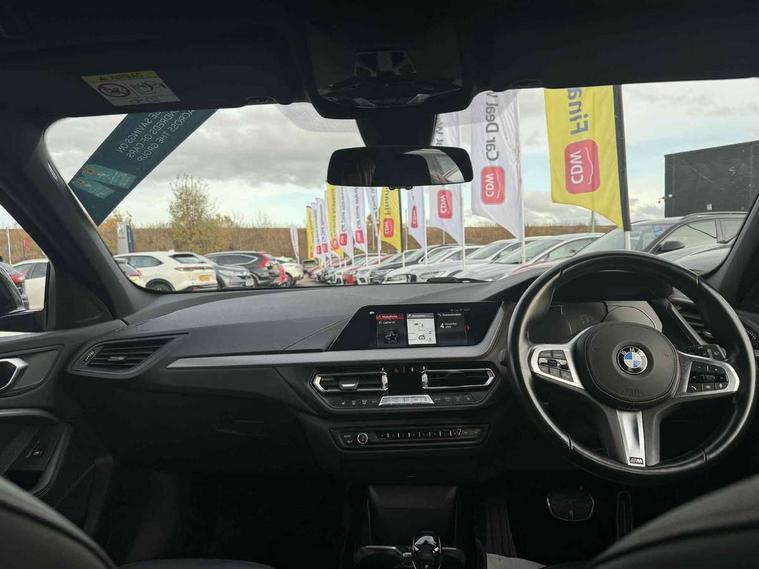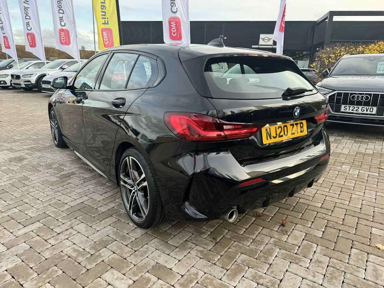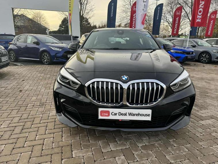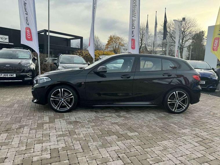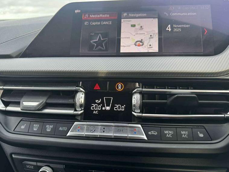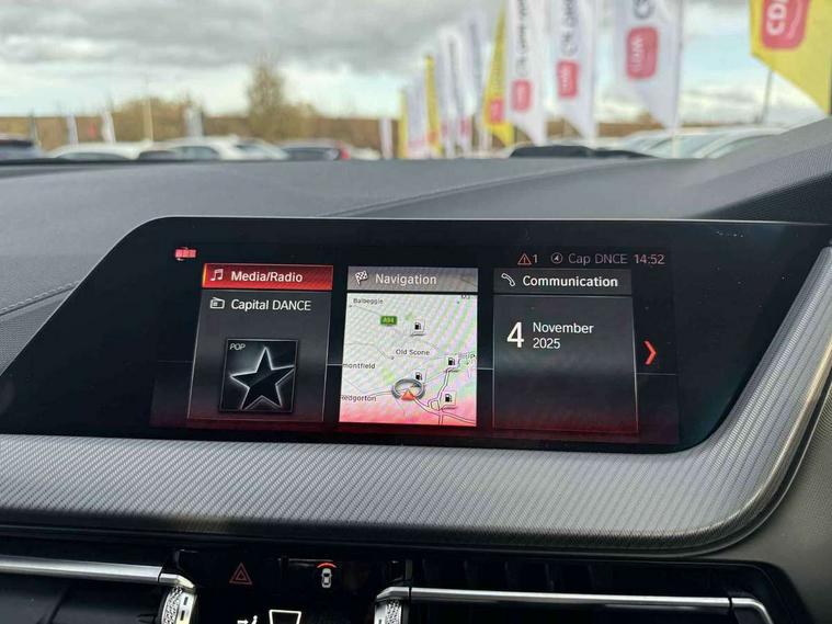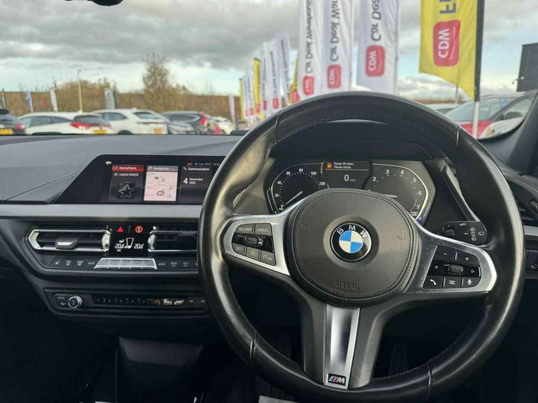 Active guard plus, Attentiveness assist, BMW Online services, BMW Teleservices, Check Control warning system for monitoring of lights and door/luggage compartment open warning, Connected eDrive Services, Eco pro mode, Electric power steering with Servotronic steering optimised at all speed ranges, Integrated owners handbook, Oil sensor for level and grade, On board computer, Optimum shift indicator, Personal Profile, Pull away assistant, Speed limiter, Aluminium lightweight construction, Anti roll bar front and rear, Balancer shaft, Double VANOS, Drive Performance Control, Electronic differential lock, High precision injection, M sports suspension + self levelling, Petrol Particulate Filter, VALVETRONIC engine management, Bluetooth audio streaming, DAB Digital radio, Auto dimming rear view mirror, Automatic headlight beam throw control, Body colour door handles, Body colour mirror caps, Chrome 'M' logo side designation, Chrome exhaust tailpipe in single, round (Exhaust tailpipe, stainless steel - single, round), Chrome kidney grille frame with Satin Aluminium struts, Direction indicator side lights in exterior mirrors, Electric folding and anti dazzle exterior mirrors, Fading support, Follow me home headlights, Front and rear electric windows with open and close fingertip control, anti trap facility and comfort closing, Front door sill finishers in black plastic with BMW designation, Green tinted heat protection glazing, Heated, electrically adjustable exterior mirror aspheric on driver side, convex on passenger side, High gloss shadow line exterior trim, High gloss shadowline window frame, Recess cover mirror frames and B/C pillar embelisher trim, High level third brake light, LED daytime running lights, LED eyebrow turn indicators, LED front fog lights, Lightweight engineering, Matt black air guide grilles, Model designation on right side of tailgate, Nearside reverse light in rear light cluster, Rain sensor including auto headlights activation, Rear fog lights, Rear window wiper, Shark fin antenna, Visible VIN plate, Welcome lighting, Windscreen wipers with integrated washing jets, 12V power socket in centre console, 2 cupholders in front centre console, 3 rear seat head restraints, 3 spoke M sports design leather steering wheel finished in nappa leather with specific M badge, Anthracite headlining, Anthracite Velour floor mats, Child seat ISOFIX attachment for two outer rear seats and front passenger seat with anchorage points, Conditioned based service, Dakota leather upholstery with perforation and contrast stitching, Driver and front passenger seat heating, Driver side folding compartment in instrument panel, Folding rear clothes hook, Folding rear seats, Four grab handles integrated in roof lining, Front and rear door pockets, Front and rear side armrest integrated into door trim, Front armrest foldable with integrated storage compartment, Front sports seats with electric side bolster adjustment, Glove compartment, Height adjustable front head restraints, Manual adjust steering wheel, Multi-function controls for steering wheel, Rear seat backrest with manual 60:40 split folding with 3 top tether clips integrated on rear of seat panels, Storage compartment in centre console, Sun visors with vanity mirrors and insert tab, Two zone automatic air conditioning, Extended Lighting pack - 1 Series, Extended storage pack - 1 Series, Interior lights pack - 1 Series, Luggage compartment pack - 1 Series, M Sport exterior styling aerodynamics pack - 1 Series, 2 tone horn, 3 point seatbelts on all seats, front pyrotechnic belt tensioners, stopper and belt force limiters, rear coded belt buckles, Airbags - Front driver and passenger, front and rear head, front side, curtain head protection, Anti lock braking system (ABS) with brake assist, BMW emergency call, Brake drying, Braking readiness, Crash sensor activating central locking release, hazard warning lights, fuel cut off, interior lighting + activation of safety battery terminal clamp, Driver and front passenger seat belt security check, Dynamic stability control + (DSC+), Dynamic Traction Control - DTC, Electrically operated hand brake, Front and rear disc brakes, Front passenger manual airbag deactivation, Rear child proof door locks, Seatbelt warning, Side impact protection, Tyre pressure monitoring system, Warning triangle and first aid kit, Automatic drive away locking facility, Central locking switch for all doors, fuel filler cap and luggage compartment, Deadlocking function system to all doors, Locking wheel bolts, Remote control with integrated key with High-gloss Black inlay and M designation and 1 button for open/ close lock, window, open luggage compartment, Start/stop button with comfort go keyless engine start and auto start stop deactivation button, Thatcham Cat.1 alarm and immobiliser, Contrast stitching on instrument panel, Reduced rolling resistance tyres,