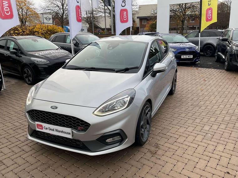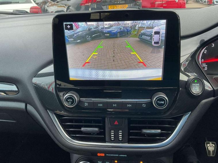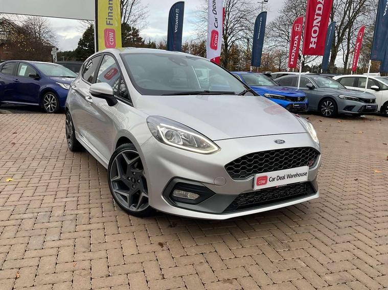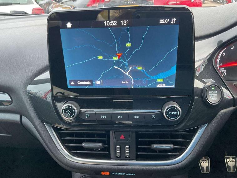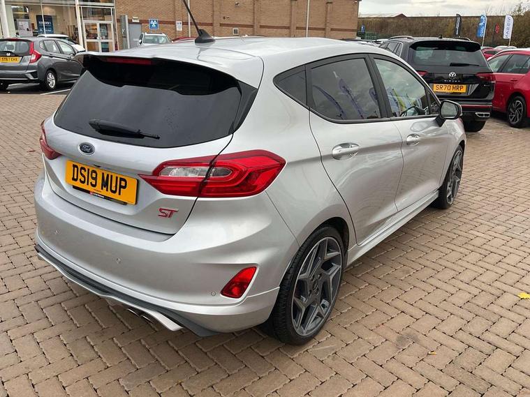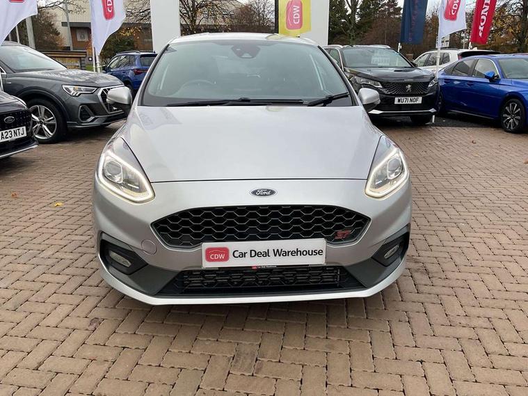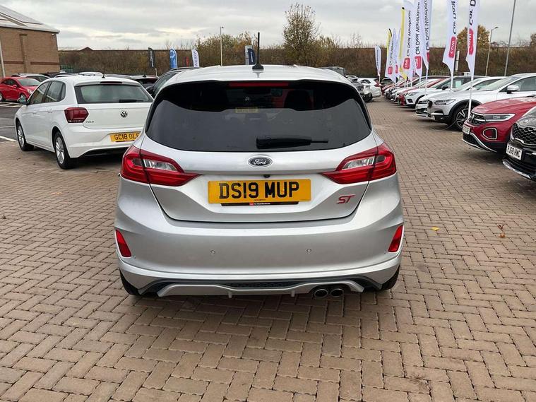 Bluetooth system, Cruise control, Drive mode selector, Electric power steering, Ford easy fuel, Trip computer, Sports suspension, 2 USB ports, Auxiliary input socket, DAB Digital radio, Steering wheel mounted controls, Auto dimming rear view mirror, Automatic headlights, Body colour bumpers, Body colour door handles, Body colour electric adjustable heated door mirrors with integral indicators, Body colour large rear spoiler, Chrome lower window surround, Cornering front fog lights, Electric front windows/one touch facility, Electric rear windows, LED Night signature to rear lights, LED rear lights, Power foldable door mirrors with puddle lights, Quickclear heated windscreen, Rain sensing wipers and auto dimming rear view mirror, Rear privacy glass, Rear wiper, Rugged body styling kit with active front wing badges, Tinted glass, Unique ST-Line upper grille & full bodystyling kit with ST-Line wing badges, 12V Accessory socket in centre console, 3 spoke flat bottomed leather steering wheel with red stitching, 60/40 split folding rear seat, Adjustable head restraints, Ambient lighting, Black headlining, Boot carpet, Centre console with armrest and illuminated cupholders, Chrome inner door handles, Drivers and Passenger lumbar support, EATC - Electronic Auto Temperature control, Floor mats with grey stitching, Footwell illumination, Front map reading lights, Front seat and rear pockets, Heated front seats, Heated steering wheel, Illuminated glovebox, Leather gear knob, Leather trimmed handbrake handle, Load area light, Overhead console with sunglasses holder, Pollen filter, Rake/reach adjustable steering wheel, Rear centre head restraint, Recaro part leather front sports seats, Recaro sports front seats, Sports pedals, Driver assistance pack - ST2/ST3/ST Performance Edition, NCAP Pack - Fiesta, Rear view camera pack - Fiesta, 3 point seatbelts on all rear seats, ABS+EBA, Curtain airbags, Driver and passenger airbags, Drivers knee airbag, Electronic stability control with hill start assist, Front passenger airbag deactivation, Front side airbags, Seatbelt warning, Tyre pressure monitoring system, Ford keyfree system with Keyless entry and keyless start, MyKey system, Remote central locking & engine immobiliser, Thatcham Cat.1 alarm, 18" Magnetic alloy wheels with machined finish and red brake calipers,