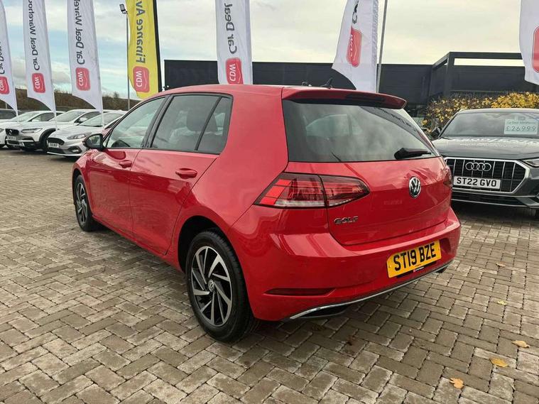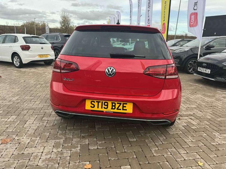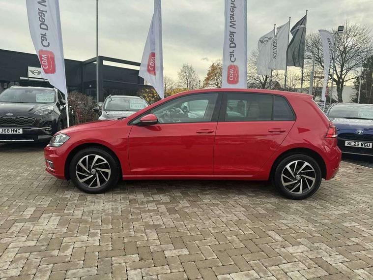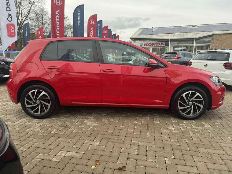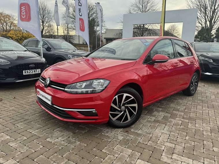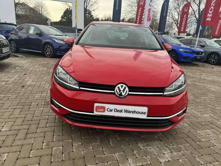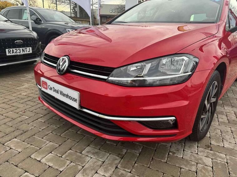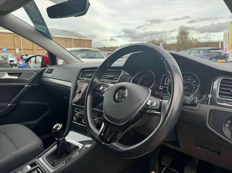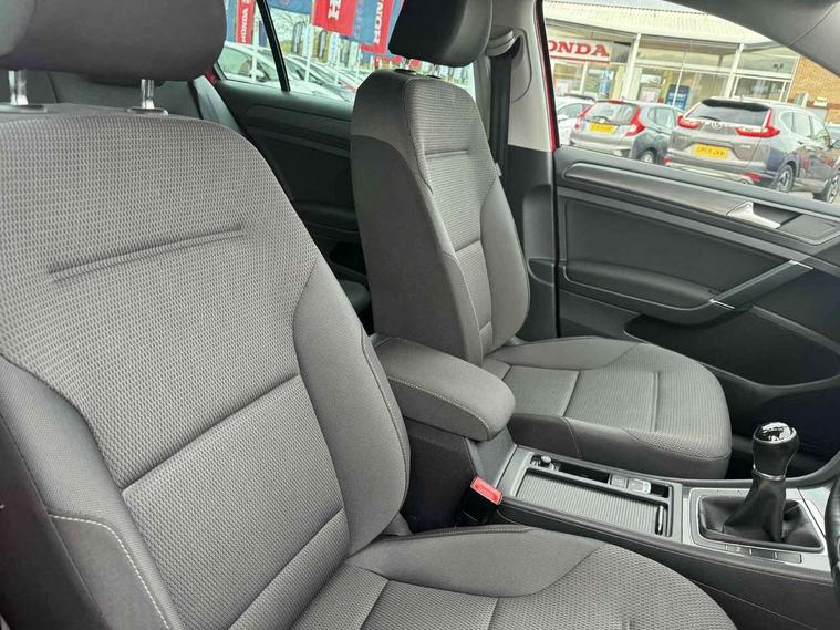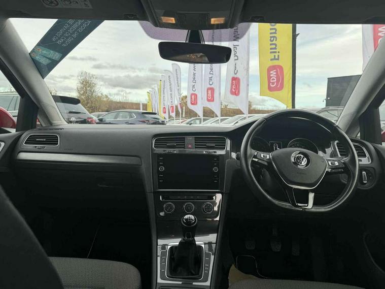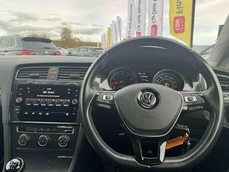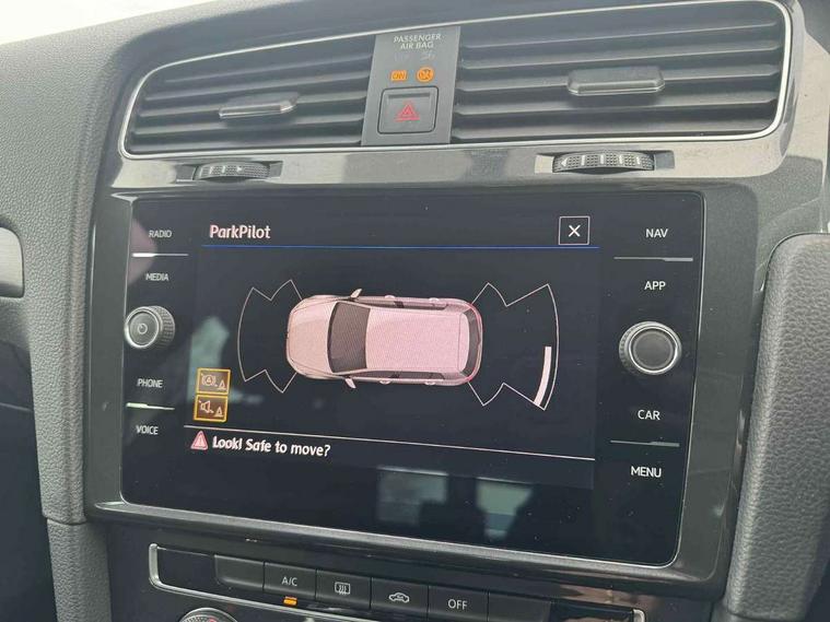 'Lights On' Reminder warning buzzer, ACC - Adaptive cruise control with front assist, forward collision warning, distance monitoring, city emergency brake and speed limiter, Bluetooth telephone and audio connection for compatible devices, Brake pad wear indicator warning light, Driver alert system, Driver profile selection, Driving Mode Selection with four preset modes - Eco, normal, sport or individual modes, Instrument cluster in white, Multifunction computer with visual gear change recommendation for fuel consumption, Power assisted speed sensitive electro-mechanical steering, Push tank flap, Speed limit display, Speedo, rev counter, electronic odometer, trip, service interval display, exterior temperature and fuel gauge, Stop/start system, Warning buzzer and light for front seatbelts unfastened, Battery regeneration during braking, XDS electronic differential lock, Composition media system, DAB Digital radio receiver, MP3/WMA compatability, Multi device interface (MDI) with USB connection, Personalisation 1.1 profile for media, Premium USB cable in choice of either Apple or Android smartphone compatibility, SD card slot, SMS Functionality, USB and SD card connectivity, Black front air intake and radiator grille with chrome insert, Black rear diffuser, Body colour bumpers, Body colour door handles, Body colour door mirrors with integrated indicators, Dusk sensor + automatic driving lights, Electric front windows, Electric rear windows, Electrically adjustable and heated door mirrors, Fully galvanised body, Heated rear windscreen, Hidden exhaust pipe, High level 3rd brake light incorporating LED Technology, LED daytime running lights, LED front fog lights with static cornering light function, Rear fog lamp, Rear tinted glass 65% light absorbing from B pillar backwards, Rear window aerial, Rear window wash/wipe with intermittent wipe, Reflectors in all doors, Tailgate with integrated rear roof spoiler, Windscreen wipers/ intermittent wipe + 4 position delay, 12V socket in luggage compartment, 3 rear headrests, 4 load lashing points in luggage compartment, 60/40 split folding rear seat backrest, Auto fold down lever in rear seat backrest, Bag hook in luggage compartment x 2, Cooled glovebox, Cupholder cover, Dust/pollen filter, Front and rear reading lights incorporating LED technology, Front centre armrest with storage compartment and two rear air vents, Front seat back storage pockets, Grab handles front x 2, rear x 2 with integrated coat hooks, Height and reach adjustable steering wheel, Illuminated vanity mirrors, Instrument lighting white adjustable panel illumination, Interior light delay, Isofix preparation for 2 rear child seats, Load through provision with rear centre armrest and cupholders x2, Luggage compartment lighting, Overhead storage box, Passenger underseat drawer, Pearl grey headlining, Storage box in luggage compartment, Storage compartment in roof console with cover, Storage compartments in centre console, Storage compartments in front doors, Storage compartments in rear doors, Stowable luggage compartment cover, Sun visors, Variable boot floor, height adjustable and removable, Convenience Pack - Golf, Light and Sight pack - Golf, Mirror pack - Golf, 3 rear three point seatbelts, Airbags - Driver's and front passenger's, curtain airbag, Driver's knee, front side impact and passenger's airbag deactivation switch, Anti-lock Braking System (ABS) with Hydraulic Brake Assist (HBA), Automatic post collision braking system, Child locks on rear doors, Driver/Passenger optimised head restraints, Electronic parking brake with auto hold, Electronic stability control (ESC) including Electronic differential lock (EDL) and ASR (Traction control) with deactivation via infotainment system, Pre crash preventive occupant protection, Three point height adjustable front seatbelts with tensioners, Tyre pressure loss indicator, Alarm with interior protection and deactivation via infotainment system, Electronic engine immobiliser, Remote central locking with 2 remote folding keys, Brushed dark silver decorative inserts in dash and door panels, Chrome plated air vent surround, Chrome plated electric mirror adjustment light switch surround, Polar night black centre console, Steel space saver spare wheel,