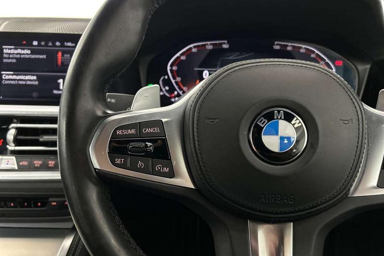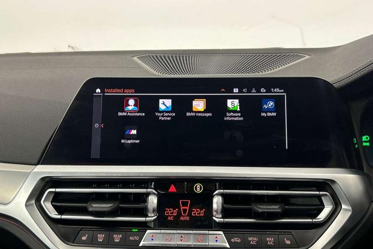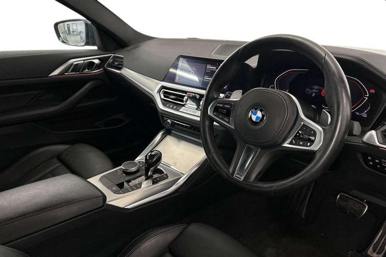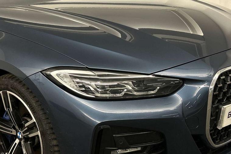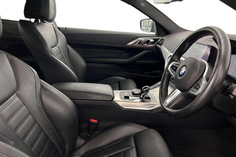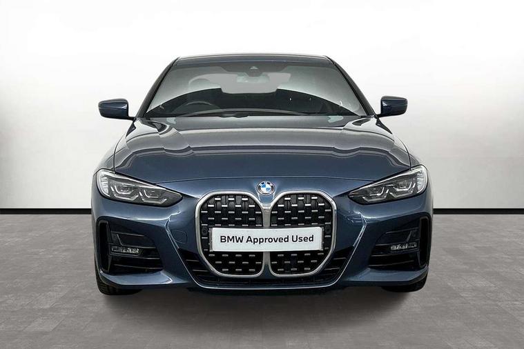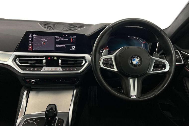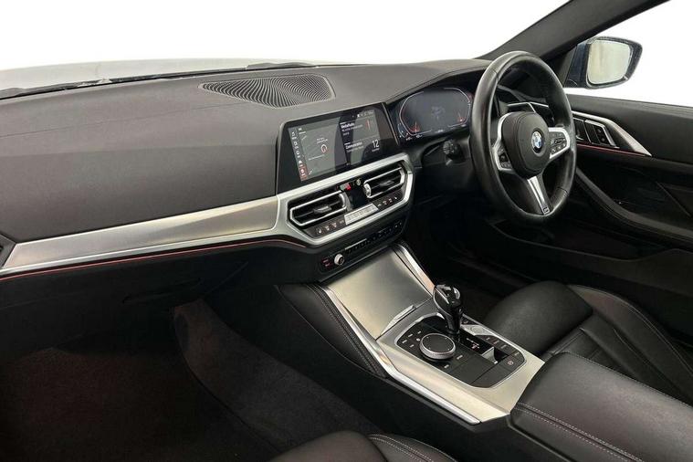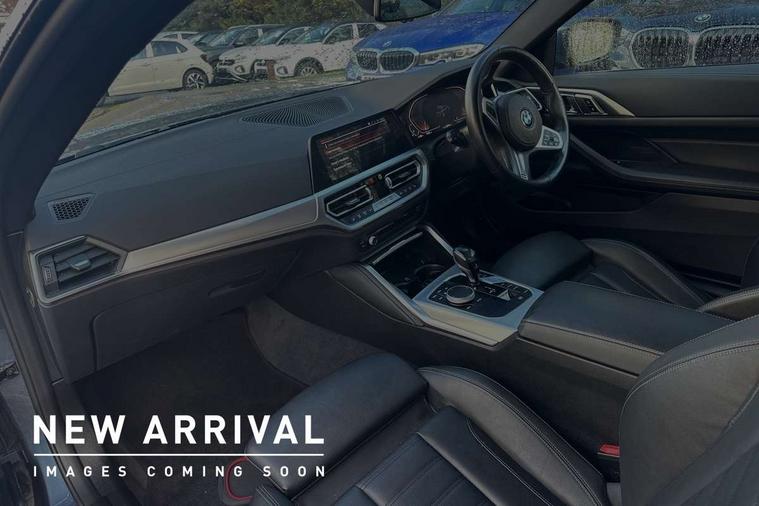 Active guard plus, Attentiveness assist, Auto start-stop, BMW ConnectedDrive online services, BMW iDrive controller on centre console, BMW Live Cockpit Professional Nav with 12.3" instrument display + 10.25" display, Intelligent Voice Assist, BMW OS 7, HDD, 2USB, 4G LTE connect, BMW service history, BMW Teleservices, Brake pad wear indicator in front and rear, Check Control warning system for monitoring of lights and door/luggage compartment open warning, Condition based service, Cruise control with brake assist, Electric power steering, Electric power steering with Servotronic steering optimised at all speed ranges, Gearshift time display in manual mode, Instrument cluster with speedometer with mph readout, tachometer, fuel gauge and oil temperature gauge, Integrated owners handbook, Oil sensor for level and grade, warning by check control system, On board computer - average speed, fuel consumption, outside temp display with acoustic warning, clock/date, service interval, odometer/trip meter, Optimum shift indicator, Variable sport steering, 8 speed automatic steptronic transmission with gearshift paddles, Balanced 50/50 weight distribution, Double VANOS, Driving experience modes - Comfort, ECO PRO, Sport and Sport+ mode, High precision injection, Low centre of gravity, M sport suspension, Petrol Particulate Filter, Stroke dependent dampers, VALVETRONIC engine management, DAB tuner, Electronic service booklet, Acoustic glazing, Adaptive LED Headlights, Automatic headlight beam throw control with load dependent regulating reaction, dynamic compensation of braking dive and acceleration squat, Automatically dimming electrochromatic rear view mirror, BMW emblem on engine compartment lid and tailgate, BMW kidney grille with mesh grille front side of the nuggets in matt aluminium and frame in chrome high gloss, Body colour fuel filler flap, Body colour M sport rear spoiler, Body colour roof fin, Brushed aluminium inserts in the front door sill finishers with BMW designation, Dynamic brake lights, Electric windows - front and rear, with open/close fingertip control, anti trap facility and comfort closing function all round, Exhaust tailpipe - split left and right, Exterior mirrors - electrically folding with anti-dazzle, Fading support, Front and rear bumper system, Front apron plastic in body colour, Green tinted heat protection glazing, High gloss shadow line exterior trim, Illuminated bow type door handles in body colour drivers side with door lock, Interior rear view electrochromatic mirror with automatic anti dazzle function, LED front fog lights, Licence plate panel integrated into front bumper and tailgate, Lightweight engineering, M designation on front side panels, left and right, Model designation on right side of tailgate, One piece front bumper cover including towing eye cover in body colour, Preparation for high beam assistant, Rain sensor, Side frame decorative moulding black matt, Two part LED tailights in L-shape with components in smoked glass, brake light, LED turn indicator and rear fog light, Visible VIN plate, Welcome lights in interior and door handle area, Widened track and increased camber values for max transverse dynamics, agility and steering precision, Window recess cover black high gloss, Windscreen wipers with integrated washing jets, 12V power socket in front centre console, 2 front cupholder in centre console with clamping elements and matt black inlay, 2 Rear seat headrests, 3 spoke M leather multifunction steering wheel, 3 zone automatic air conditioning, 4 pieces lashing eyelets in luggage compartment, 40:20:40 split folding rear seat and rear centre armrest with two cupholders, Ambient lighting with welcome carpet light, Anthracite headlining, Armrest integrated in front and rear door trim + front centre console armrest, Four grab handles integrated in roof lining, Front and rear door exit lighting (left / right), Front and rear door pockets, Front and rear footwell lights, Front and rear reading lights, Front headrests, Front seat backrest width adjustment, Front sport seats, Heated driver and front passenger seats, Height adjustable mechanically and infinitely variable steering column, Illuminated armrest storage compartment, Illuminated glove compartment with separate small compartment, Luggage compartment light, Make-up mirror lights, Storage compartment in rear centre console, Sunvisors with vanity mirrors and ticket pocket, Toolkit located in luggage compartment, Velour front floor mats, Vernasca leather upholstery, Connected professional package - 4 Series, M sport exterior styling pack - 4 Series, 2 x 3-point rear seatbelts, Battery safety cut-off, BMW emergency call, Brake energy regeneration, Braking pre-tensioning, Child proof locking system in rear door, Child seat ISOFIX attachment for the two outer rear seats, Coasting in idle in ECO PRO mode, Cornering brake control (CBC), Crash sensor activating of airbags, Unlocking doors, hazard warning lights, fuel cut off, interior lighting+activation of safety battery terminal clamp, Driver and front passenger side airbags, integrated in the door side seat backrest bolsters for all seat variants, Driver/Front Passenger airbags, Dry braking, Dynamic brake control, Dynamic stability control + (DSC+) - Anti-lock Braking System (ABS) with brake assist and cornering brake control + Automatic Stability Control (ASC), Dynamic Traction Control - DTC, Electric parking brake including automatic hold function and automatic release of the parking brake when driving off, Electronic differential lock control (EDLC), Front and rear ventilated brake disc, Front passenger manual airbag deactivation, Head airbags for all 4 outer seats, Hill start assistant, Seat belt security check for driver and front passenger, Seat belt with belt stopper, pyrotechnic belt tensioners and belt force limiters, Side impact protection, Tyre pressure monitoring with three level warning strategy, Warning triangle and first aid kit, Alarm syst