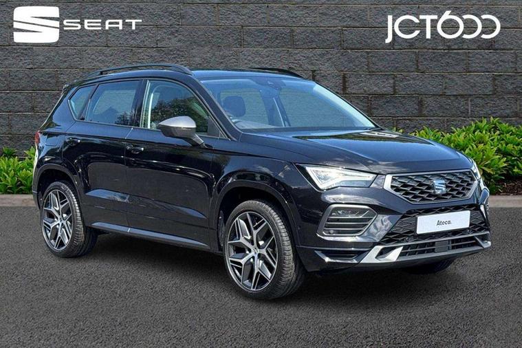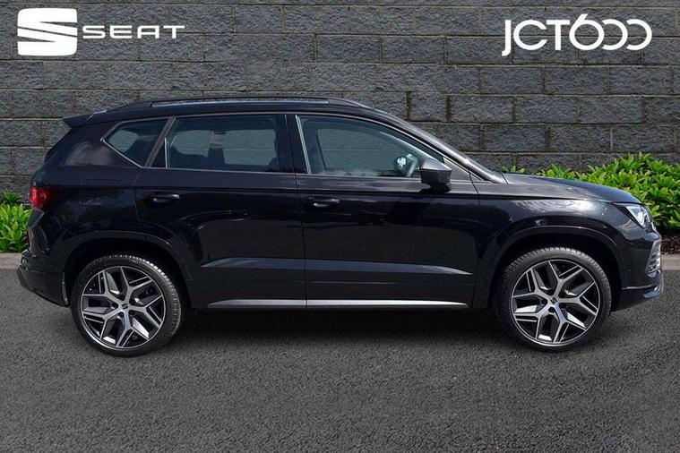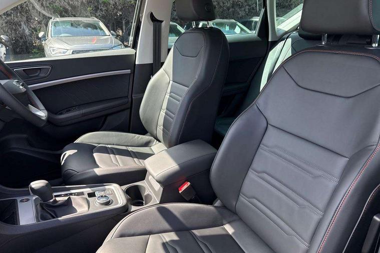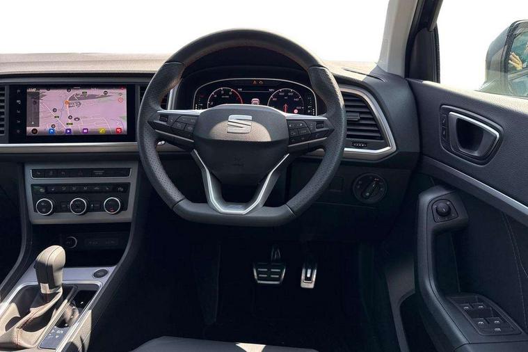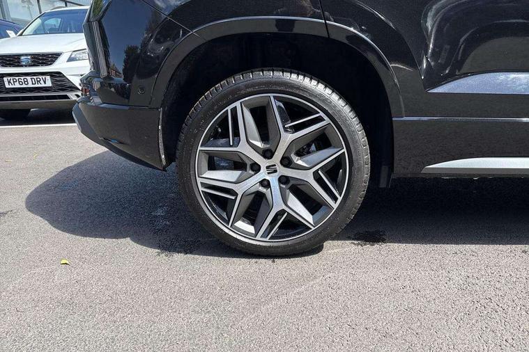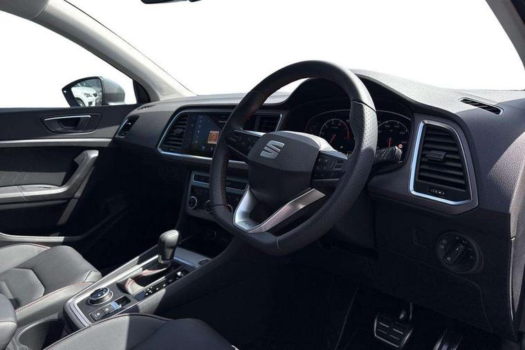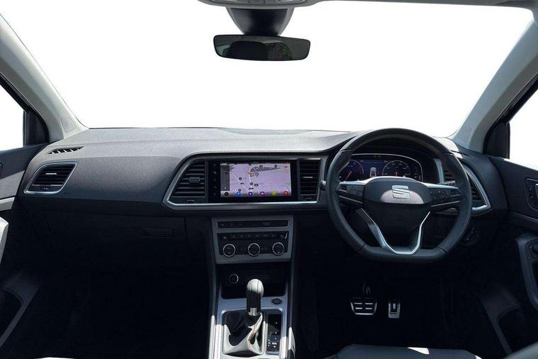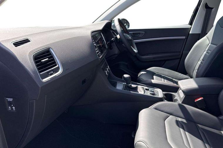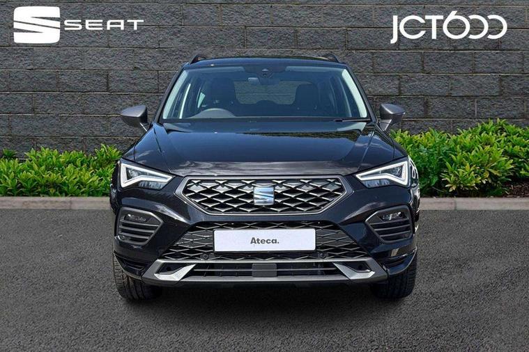 10" Digital cockpit, Cruise control system with speed limiter, E-call, Outside temperature gauge, Progressive power assisted steering, SEAT drive profile with driving experience button - Normal, Sport, Eco and Individual mode, gearshift, steering and throttle response, Self parking functionality (includes front and rear parking sensors), Start/stop system, Tailgate, Trip computer, wired and wireless full link smartphone integration, Wireless phone charger, Steering wheel mounted audio/phone controls, Black roof rails, Black side window trim, Body colour bumpers, Body coloured wheel arch surrounds, Chrome front grille frame, Dark tinted rear windows, Daytime running lights, Door mirrors with welcome light silhouette, Dynamic headlight range control with self adjusting whilst driving, Electric adjustable/heated/folding door mirrors, Front and rear electric windows, Full LED headlamps with lens and LED front fog lamps with cornering function, Illuminated aluminium front door sill, LED 3rd brake light, LED rear tail lights with dynamic indicators, Rear exhaust tailpipe, Rear fog lights, Rear side wing doors, Rear spoiler, Rear wash/wipe, Variable front intermittent wipers, 12v socket in front, 3 seat bench in 2nd row, 60/40 split folding rear seat, Aluminium pedals, Dual zone climate control, Electric adjustable driver seat with memory function, Front and rear head restraints, Front centre armrest, Front seat back storage pockets, Heated front seats, Height adjustable passenger seats with lumbar adjustment, ISOFIX points in outer rear seats with top tether anchorage points, Leather sports steering wheel and gear knob, Leather upholstery with front comfort seats, Manual lumbar support on driver seat, Rear armrest and easy back seat release mechanism from boot, Single front passenger seat, Steering wheel mounted gearshift paddles, Convenience pack - Ateca, Interior lighting pack - Ateca, Navigation system pack with DAB - Ateca, Safety and driving pack with attention and drowsiness assist - Ateca, 3x3 point rear seatbelts, ABS, Traction control system (TCS), Electronic stability control (ESC) and Electronic differential lock system (XDS), Airbags - Driver and front passenger airbag with deactivation, front side, two curtain and driver's knee airbags, Electric parking brake with auto hold function, Front and rear seatbelt reminder, Front assist with autonomous emergency braking, Hill hold control, Manual rear child locks, Single tone horn, Tiredness recognition system, Tyre pressure monitoring system, Alarm, Keyless entry, Locking wheel bolts, Remote central locking, Chrome interior detailing, 19" Exclusive machined alloy wheels with decorative inserts 36/7 in cosmo grey,
