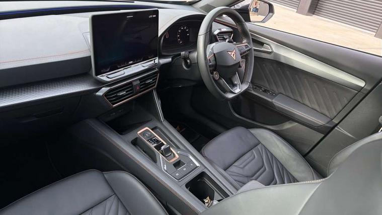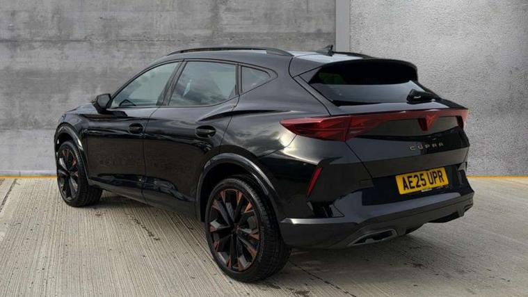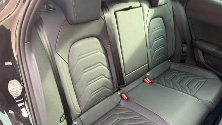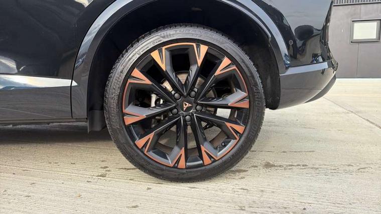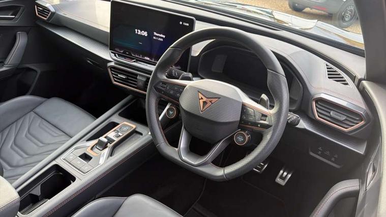 10.25" digital cockpit and configurable dashboard, Adaptive cruise control with follow-to-stop and speed limiter, Advanced driver alert system, Advanced lane assist with semi-automatic vehicle control in a medical emergency and traffic jam assist, Driving profile selection, Dynamic road sign display, Emergency steering support with turn assist, Forward collision warning with automatic braking, Full link phone integration, Intelligent park assist, Progressive steering, RPM, trip computer, outside temp gauge, instrument light brightness, low fuel warning light, lights on reminder, gearshift indicator, Service interval indicator, Side and exit assist, Start/stop system with regenerative braking, Top view camera, Virtual pedal and electric tailgate, Voice control system, Wired Android Auto, Wireless apple carplay, Wireless phone charger, CUPRA sport suspension, Electronic locking differential and dynamic traction support, 2 front and 2 rear USB type C sockets, Media system with navigation, 12.9" touchscreen display, voice control, DAB, steering wheel mounted controls, Auto dimming rear view mirror, Body colour door handles, Body coloured bumpers, Dark grey wing mirror, Daytime running light with automatic headlight control and coming home feature, Door panel ambient lighting, Dynamic headlight range control, Electric front/rear windows, Electrically adjustable heated and folding door mirrors with memory function, Gloss black roof rails and window surrounds, High beam assist, LED 3rd brake light, LED front fog lamps with cornering function, LED Headlights, LED Taillights with dynamic indicator, Rain sensing wipers, Rear diffuser with black simulated exhaust pipes, Rear fog lights, Rear side wing doors, Rear wash/wipe, Tinted rear windows, Welcome lights (within exterior mirror housing), 12V socket, 2 front and 2 rear reading lights, 3 seat bench in 2nd row, 60/40 split rear bench seat with armrest and mechanical seat release, Black headlining, Black interior roof lining, Cupra sports pedals, Dust/pollen filter, Electrically adjustable front seats with lumbar support and memory function, Front and rear head restraints, Front centre armrest, Heated front seats, Heated supersports multifunction leather steering wheel with satellite buttons and gear shift paddles, Height/reach adjust steering wheel, Illuminated aluminium doorsteps, Illuminated interior front door sills, Illuminated sunvisor with mirror, Isofix, Leather dashboard, door insert and side trim panel, LED smart wraparound lighting, PVC/Leather upholstery, Satellite steering wheel, Single front passenger seat, Storage pockets on rear of front seats, Three zone climate control with control panel in rear, Variable luggage/load compartment floor, 3 point seatbelts on all rear seats, ABS, Brake control system - ESC and brake booster, Child proof door locks, Driver and front passenger airbags with front passenger airbag de-activation, Electronic parking brake, Front and rear disc brakes, Front side curtain airbags, Hill hold control, Pre-crash front and rear seat belt tensioner, window closure and hazard lights, Public e-call, Seat belt reminder for front and rear seats, Tyre pressure monitoring system, Anti theft alarm system, KESSY Advanced - Keyless start, keyless entry with SAFELOCK, Locking wheel bolts, Copper and aluminium interior detailing,