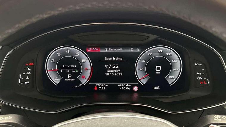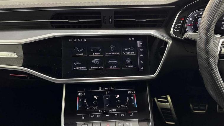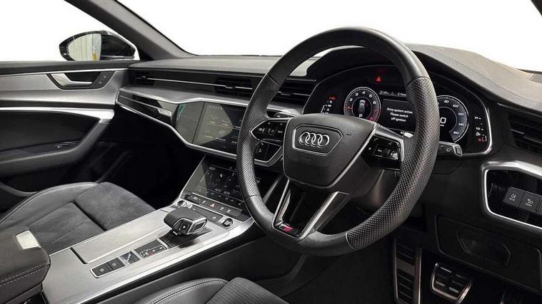 Audi connect safety and service (e-call), Audi connect with Amazon Alexa Integration, Audi drive select, Audi parking system plus - acoustic and visual park assist system for front and rear, Audi virtual cockpit, Automatic start/stop system with coasting functionality, Bluetooth interface, Camera based traffic sign recognition, Lane departure warning system, MMI navigation plus with 10.1" and 8.6" touch screens, Power operated tailgate, Progressive steering, Rear view camera, Service interval indicator, Smartphone interface includes wireless Apple carplay/Android Auto, Voice control system, Sports suspension, Audi front music interface, Audi sound system, Auxiliary input socket, DAB Digital radio, USB connection, Aluminium roof rails, Body colour rear roof spoiler, Body coloured door mirrors, Electric front/rear windows, Electrically adjustable heated and folding + automatically dimming exterior mirrors with memory function, Frameless auto dimming interior rear view mirror, Front intermittent wipers, Heat insulating darkened glass in side and rear windows, Heat insulating glass in windshield, LED rear lights with dynamic indicators, LED signature front daytime running light, LED third brake light, Matrix LED headlights, Matt black rear diffuser with diffuser strip and tailpipes in chrome, Matt black side air intake grille with inlay in matt aluminium, Privacy glass, Radiator grille in anthracite black matt, single frame in chrome and horizontal struts in matt aluminium silver, Rain and light sensors, Rear side wing doors, Rear wiper, 2 zone deluxe electronic climate control, 3 spoke high multi-function perforated leather steering wheel with contrast stitching and shift paddles, 40/20/40 split folding 3 rear seat bench in 3 parts with rear centre armrest, Audi phone box light, Black cloth headlining, Electrically adjustable front seats including seat height, fore/aft position, backrest angle and 4-way lumbar with memory for driver's seat, Front and rear floor mats, Front centre armrest, Front head restraints, Heated front seats, Height/reach adjust steering wheel, Illuminated door sill trims with S logo, Illuminated sun visors with vanity mirrors, Leather gear knob, Luggage compartment system, Rear headrests, Single front passenger seat, Stainless steel pedals and foot rest, Tool kit and car jack, LED Interior Ambient Lighting Pack - A6, Non smoking pack - A6, S line exterior style pack - A6, 3 point seatbelts on all seats, Airbags - Front side, front and rear including head, Audi pre-sense front, EBD - Electronic brakeforce distribution, Electromechanical parking brake, Electronic Stability Control (ESC) including ABS, ASR and EDL, Extended pedestrian protection measures, ISOFIX child seat mounting for front passenger seat and ISOFIX child seat mounting with Top Tether for outer rear seats, Manual child proof rear door locks, Seatbelt monitoring, Tyre pressure warning light, Warning triangle and first aid kit, Anti theft alarm with tow away protection, Anti-theft wheel bolts and wheel loosening detection, Immobiliser, Keyless Go, Remote central locking, Matt brushed aluminium inlays,