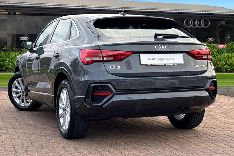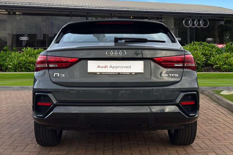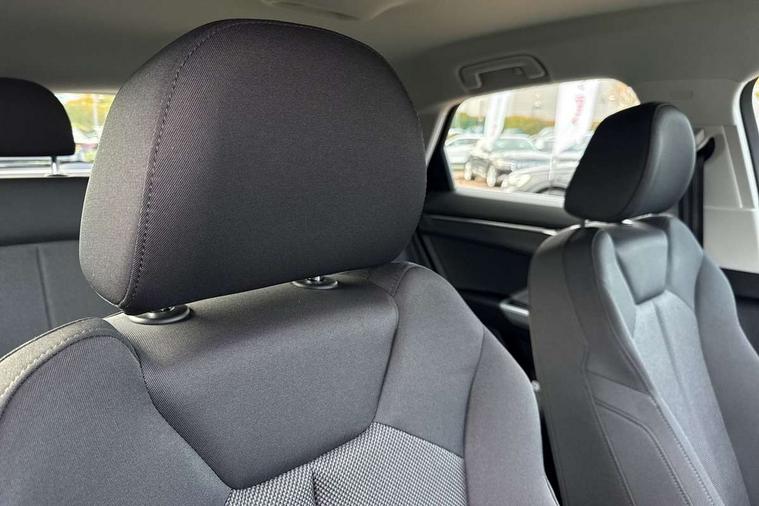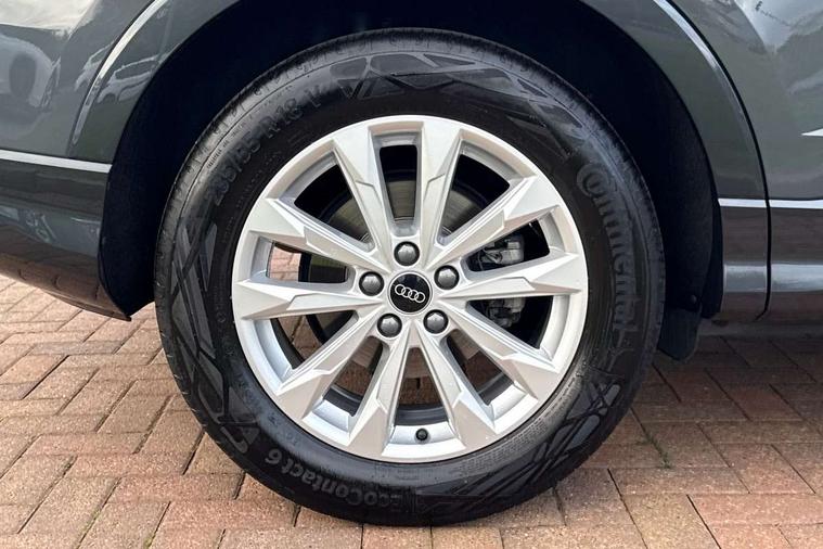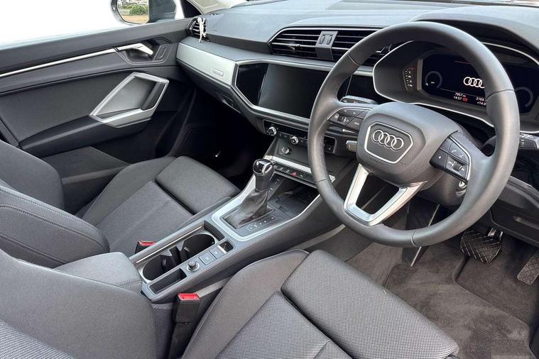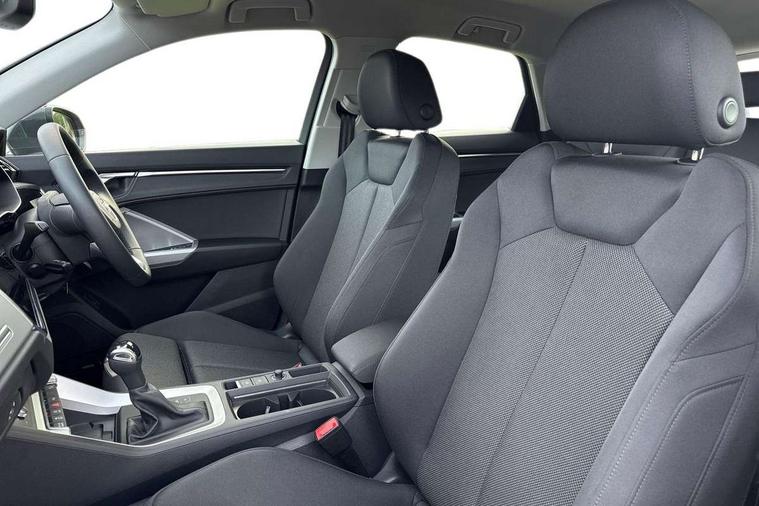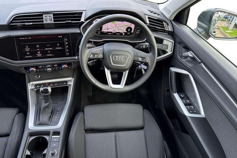 Audi connect safety and service, Audi drive select, Audi lane departure warning, Audi Virtual Cockpit - 10.25" display, Bluetooth interface, Camera based traffic sign recognition, Distraction and Fatigue warning, Legal emergency call, MMI Navigation Plus with high resolution 10.1 inch touchscreen colour display, Power operated tailgate, Progressive steering, Service interval indicator, Smartphone interface includes wireless Apple carplay/Android Auto, Start stop system with recuperation, Voice control system with natural language interaction, Standard suspension, 2 USB-C ports with charge and data functions, 6 passive loudspeakers, DAB digital radio module, Acoustic windscreen, Aluminium window trim, Auto dimming door mirrors, Auto dimming frameless rear view mirror, Bumpers and underbody protection in contrasting manhattan grey paint finish, Diffuser grille in grained matt black, Diffuser trim in manhattan grey metallic, Door sill trims with illuminated aluminium inlay, Electrically folding, adjustable and heated door mirrors with integrated LED side indicators and kerb view function for passenger side, Front and rear electric windows, Front fog lights, Front side air inlets in Manhattan grey metallic, Grille surround in aluminium silver matt, High gloss black finish B and C pillars, Honeycomb design radiator grille in matt anthracite black, LED headlights with LED daytime running lights, LED third brake light, Rain and light sensors, Rear side wing doors, Rear wiper, Variable front intermittent wipers, 12V socket in rear centre console, 3 seat bench in 2nd row, 3 spoke multi-function leather steering wheel, 40:20:40 folding with manual adjustment for 60:40 forwards/backwards position and backrest angle, Black carpet mats, Dual zone electronic climate control, Electric lumbar support, Front and rear floor mats, Front and rear headrests, Front centre armrest, Height and reach adjustable steering wheel, ISOFIX child seat mounting for front passenger with airbag deactivation and outer rear seat including top tether attachment point for outer rear seats, Luggage compartment sill protection in stainless steel, Lunar silver cloth headlining, Manual front seats with height adjustment, Single front passenger seat, Non smoking pack - Q3, 3x3 point rear seatbelts, 6 airbags - Driver, front passenger, curtain and side windows, Audi pre-sense front with pedestrain and cyclist recognition, Electrically operated child locks on rear doors, Electromechanical parking brake, Electronic stabilisation control including ABS, ASR and EDL, Front seatbelt reminder, Hill descent control, Hill hold assist, Pre sense basic, Seatbelt monitoring, Tyre pressure warning, Warning triangle and first aid kit, Anti theft wheel bolts, Immobiliser, Remote central locking, Thatcham approved category 1 anti theft alarm, Aluminium look interior elements, Detail dashboard around MMI touch colour display in glass look, black with surround in aluminium look, Micrometallic silver inlay,