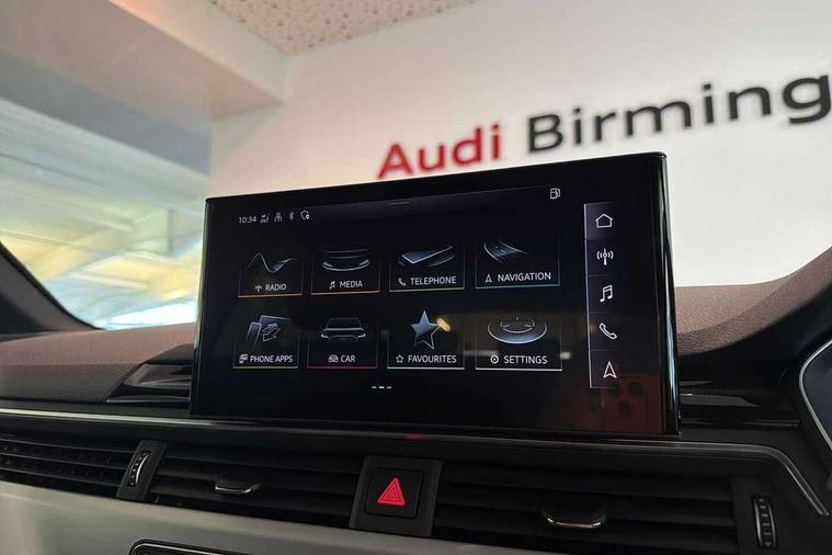 Audi connect safety and service (e-call), Audi connect with Amazon Alexa Integration, Audi drive select, Audi smartphone interface, Audi virtual cockpit, Automatic start-stop system with coasting functionality and efficiency programme, Bluetooth interface, Electromechanical power steering, Email, calendar and text messages displayed via MMI, MMI Navigation plus with MMI touch includes 10.1" high resolution colour MMI display, 3D map, Power operated tailgate, Voice control system, Sports suspension lowered by 23mm, 2 USB charging ports, 8 passive loudspeakers, DAB digital radio reception, Aluminium roof rails, Auto dimming rear view mirror, Body colour door handles, Body colour front spoiler lip, Body colour side sill trim, Body coloured door mirrors, Electrically folding auto dimming/adjustable/heated door mirrors with LED side indicators and kerb view function for passenger side, Grained matt black side air inlets with matt aluminium silver inlay, High beam assistant, Honeycomb structure radiator grille in grained matt black, LED headlights with LED rear lights + dynamic rear indicators + headlight adjustment and high beam, turning light + LED daytime running lights, LED third brake light, Matt aluminium silver tailpipe trim, Privacy glass, Rain and light sensors, Rear side wing doors, Rear wiper, S Line badges on the front wings, S line front and rear bumpers with side skirts, S Line rear diffuser in matt anthracite black with trim strip in matt aluminium silver, S Line roof edge spoiler, Variable intermittent front wash/wipe, Windscreen with acoustic glazing, 3 spoke high multi-function sports leather steering wheel grips in perforated leather with S badging including paddle shift, 4 way electric lumbar support for driver and front passenger, 40/20/40 split folding 3 rear seat bench in 3 parts with rear centre armrest, Black cloth headlining, Black perforated leather gearknob, Contrast stitching on seats, steering wheel and gear lever gaiter, Deluxe 3 zone electronic climate control, Door sill trims with aluminium inlay, Electric load area cover, Front and rear head restraints, Front centre armrest, Heated front seats, Illuminated door sill trims with S logo, ISOFIX child seat mounting and top tether, Manual seat adjustment, Single front passenger seat, Stainless steel pedals and foot rest, High gloss package - A4, LED Interior light pack - A4/S4, 3 rear seatbelts, 6 airbags - Driver, front passenger, curtain and side windows, Electronic Stabilisation Control (ESC) including ABS, ASR and EDL, Hill hold assist, Multi collision brake assist, Pop-up bonnet for pedestrian protection, Pre sense city, Rear door child safety locks, Seatbelt monitoring, Warning triangle and first aid kit, Anti theft alarm, Anti theft wheel bolts, Central locking, Keyless Go, Matt brushed aluminium inlays, Tool kit, Tyre repair kit,