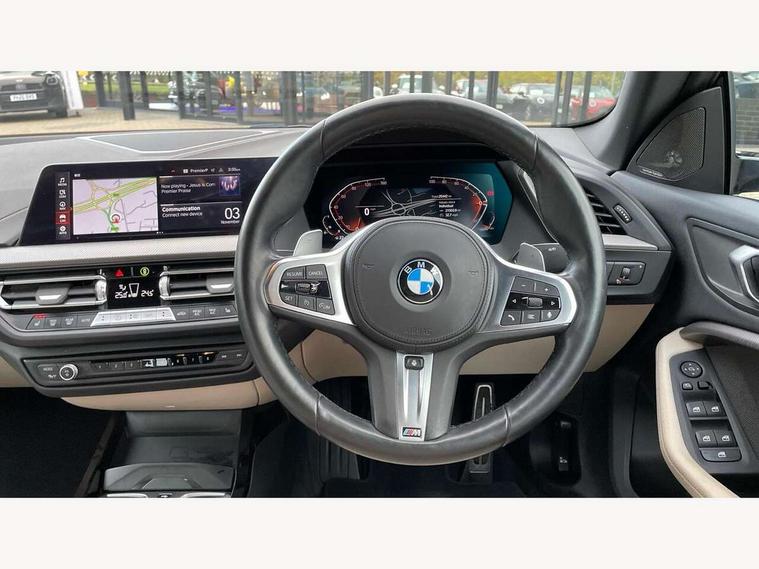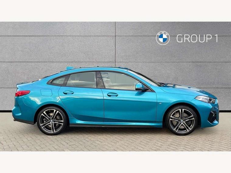 Active guard plus, Attentiveness assist, Auto start-stop, BMW ConnectedDrive online services, BMW Intelligent Personal Assistant, BMW Live Cockpit Professional with 10.25" high resolution instrument and control display, BMW Online services, BMW operating system with 7.0 mid interface, BMW Teleservices, Characteristic map controlled oil pump system, Check Control warning system for monitoring of lights and door/luggage compartment open warning, Cruise control with braking function, iDrive controller with 7 short cut favourite buttons on centre console, Integrated navigation data with map data via USB +features such as 3D landmarks and micro city models, Integrated owners handbook, Intelligent voice assistant, Lane departure warning system, M Sports steering, On board computer - average speed+fuel consumption, service interval, clock/date, odometer/trip meter, outside temperature display and ice warning, Optimum shift indicator, Personal Profile, Pull away assistant, Speed limiting function, 2 balance shafts, 7 speed sport automatic transmission with double clutch technology and sportier application, Aluminium lightweight construction, BMW TwinPower twin-scroll Turbo four-cylinder petrol engine, Double VANOS, Drive performance control with ECO PRO comfort + sport mode, Electronic differential lock, High precision injection, Larger fuel tank capacity (50 litres), M Sport suspension with stiffer spring/damper set-up and vehicle lowered by 10mm + twin tube gasfilled shock absorbers and Anti roll bars, Performance Control, Petrol Particulate Filter, VALVETRONIC engine management, 2x USB Type C ports (for charging and data transfer), 4G LTE Connectivity with hard wied 4G network sim card, DAB digital radio, MP3 players and RDS double tuner, Auto wipers, Automatically dimming rear view mirror, Body colour door handles, Body colour mirror caps, Chrome 'M' logo side designation, Chrome exhaust single tailpipe, round, Direction indicator side lights integrated exterior mirrors, Electric windows - front and rear, with open/close fingertip control and trap release, Exterior mirrors - electrically folding with anti-dazzle, Fading support, Follow me home headlights, Front and rear bumper system with replaceable deformation elements, Front door sill finishers in black plastic with M designation in metallic look, Heated, electrically adjustable exterior mirror aspheric on driver side, convex on passenger side, High gloss black B pillar finish, High gloss shadow line exterior trim, High level third brake light, LED daytime running lights, LED front fog lights, Lightweight engineering, Model designation on right side of tailgate, Preparation for high beam assistant, Rain sensor with automatic headlight activation, Rear boot, Rear fog lights, Rear side wing doors, Reversing light in rear light cluster, Welcome lighting, 12V power socket in centre console, 2 cupholders in front centre console, 3 rear seat head restraints, 3 rear seats, 3 spoke M sports design leather steering wheel finished in nappa leather with specific M badge, Anthracite finished floor mats with contrasting surround, Anthracite headlining, Automatic two zone climate control air conditioning, Child seat ISOFIX attachment for two outer rear seats and front passenger seat with anchorage points, Conditioned based service, Driver and front passenger seat heating, Front and rear door pockets including bottle trays, Front and rear side armrests integrated into door trim, Front armrest foldable with integrated storage compartment, Front centre interior light over interior mirror and rear centre automatic interior light when door is opened/ignition switched off or via remote key, Front head restraints, Front passenger seat, Front sports seats with electric side bolster adjustment, Glove compartment, Glovebox with light, Luggage compartment lighting, Manually adjustment steering wheel column, Multi-function controls for steering wheel, Sun visors with vanity mirrors and insert tab, Through loading system with 40/20/40 split folding rear seat, Two lashing eyes, Additional interior lighting pack - 2 Series Gran Coupe, Connected pack professional - 2 Series Gran Coupe, Extended storage pack - 2 Series Gran Coupe, M Sport exterior styling aerodynamics pack - 2 Series Gran Coupe, 2 tone horn, Airbag - Front driver and passenger, front and rear head, front side, curtain head protection, manual deactivation of front passenger airbag possible, Anti lock braking system (ABS) with cornering brake control, BMW emergency call, Brake drying, Braking readiness, City braking function, Crash sensor activating of airbags, Unlocking doors, hazard warning lights, fuel cut off, interior lighting+activation of safety battery terminal clamp, Dynamic stability control + (DSC+), Dynamic Traction Control - DTC, Electrically operated hand brake, Rear brake discs, Rear child proof door locks, Seat belt security check for driver and front passenger, Seatbelt warning, Side impact protection, Three point seat belts on all seats including front belt stopper, pyrotechnic belt tensioners and belt force limiters, Trailer stability control, Tyre pressure monitoring system, Ventilated front disc brakes, Warning triangle and first aid kit, Central locking switch for all doors, fuel filler cap and luggage compartment, Deadlocking function system to all doors, Drive away locking system on all doors and luggage compartment, Locking wheel bolts, Start/Stop button (illuminated) in centre console with keyless engine start and Auto Start-Stop deactivation button, Thatcham Cat.1 alarm and immobiliser, Two remote control key with integrated key - open/close doors/fuel flap/tailgate +1 button for unlock compartment with M design high gloss black inlay, Contrast stitching on instrument panel, 18" Burnished M double spoke bi-colour alloy wheels finished in orbit grey - style 819M, Reduced rolling resistance tyres,