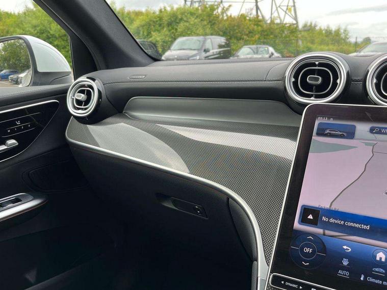 11.9" high resolution multimedia colour display, 12.3" Digital individually configurable instrument display, Acoustic presence indicator, Active lane keeping assist, Attention assist, Blind spot assist, Bluetooth interface for hands free telephone, Collision prevention assist plus, Cruise control with speedtronic variable speed limiter, Direct steer speed sensitive steering, DYNAMIC SELECT with a choice of driving modes (ECO, Comfort, Sport, Sport+ and Individual), Easy pack automatic powered tailgate, eCall emergency call system, ECO start/stop function, Fingerprint scanner, Fluorescent jacket for driver, Hard disc navigation, Instrument display in miles with English lettering, MBUX navigation premium, MBUX voice control activated by keywords "Hey Mercedes", Mercedes me connect, Outside temperature display, Remote boot release, Remote services, Service indicator (ASSYST), Smartphone integration, Speed limit assist, Status display for rear seat belts in instrument cluster, Traffic sign assist, Trip computer, Wireless charging, 48V Mild hybrid technology, 4MATIC permanent four wheel drive, 62 litre fuel tank, 9G TRONIC plus automatic transmission, Petrol Particulate Filter (PPF), Sport suspension, DAB digital radio tuner, MBUX extended functions, Mercedes benz sound system, Pre installation for Mercedes Benz Link, Adaptive brake lights, Adaptive high beam assist, Aluminium look running boards with rubber studs, Aluminium roof rails, AMG bodystyling front apron, rear apron and side skirts, AMG Line exterior, Auto headlights, Body colour bumpers, Body colour door mirrors, Electrically adjustable door mirrors, Front and rear electric windows, Headlight washers, Heat insulating dark tinted glass, Heated rear window, High level LED brake light, LED high performance headlamps with integrated LED daytime running lights, LED indicator lights, LED rear fog lights, LED tail lamp, Radiator grille with Mercedes Benz pattern and integreated Mercedes star and louvre in dark grey matt with chrome inlay and black frame, Rain sensor windscreen wipers, Range adjustable headlights, Rear side wing doors, Rear wiper, Two chrome plated tailpipe trim elements, Variable front intermittent wipers, Welcome and follow-me home light functionality, Wider wheel arch for AMG wheels, 3 seat bench in 2nd row, 40:20:40 split folding rear seats, Ambient lighting premium, AMG line interior, Artico man-made leather upholstery, Audio and onboard settings control on multifunction steering wheel, Automatic child seat recognition sensor, Black fabric roof lining, Black floor mats with AMG lettering, Double cup holder in centre console, Easy-pack removable load compartment cover, Electrically height/reach adjustable steering column, Front centre armrest with stowage compartment, Front head restraints, Galvanised steering wheel gearshift paddles, Heated front seats, Illuminated door sill panels with Mercedes Benz lettering, Illuminated glove compartment, Instrument panel and beltlines in ARTICO manmade leather in nappa look, Multifunction sports steering wheel in nappa leather, Rear centre headrest, Rear head restraints, Rear top tether child seat ISOFIX attachment, Single front passenger seat, Sports pedals with stainless steel surfaces and rubber studs, Sports seats, Sun visors, THERMATIC 2 zone automatic climate control, Anti theft protection package - GLC, Boot comfort package - GLC, Exterior chrome package - GLC, Interior chrome package - GLC, Interior lighting pack - GLC, Memory pack - GLC, Mirror pack - GLC, Parking package with reversing camera - GLC, Seat comfort package - GLC, Stowage space package - GLC, USB Package - GLC, 3 rear 3 point seatbelts, Active braking assist, Anti-lock braking system (ABS), ASR traction control, Automatic front passenger airbag deactivation, Black seat belts, Brake calipers with Mercedes-Benz lettering + perforated brake discs, Braking system with larger brake discs on the front axle, Child proof door locks, Dual-stage airbags - driver and front passenger, driver knee bag and window bags for driver, front passenger and rear passengers, Electronic parking brake, Electronic stability programme (ESP) with curve dynamic assist and cross wind assist, Front and rear seatbelt reminder, Front passenger seat occupancy sensor, Front seatbelt pretensioners, Hill start assist, Tyre pressure monitoring system, Warning triangle and first aid kit, Automatic door locking, Guard 360 degree vehicle protection plus, Interior protection/immobiliser, Keyless Go starting function, Remote central locking, Centre console in metal structure finish, Metal structure trim, 19" AMG 5 spoke aerodynamically optimised light alloy wheels in painted black with high sheen finish, Summer tyres, TIREFIT with tyre inflation compressor,