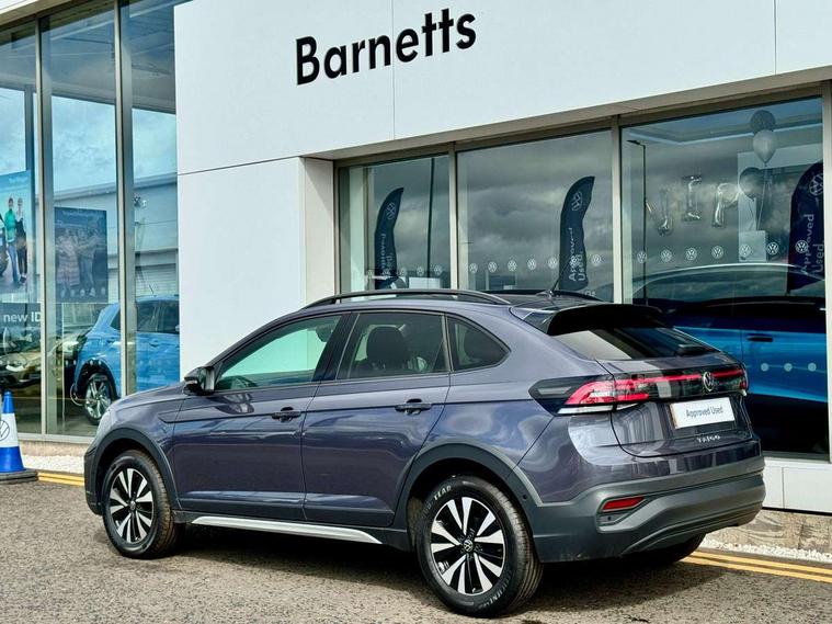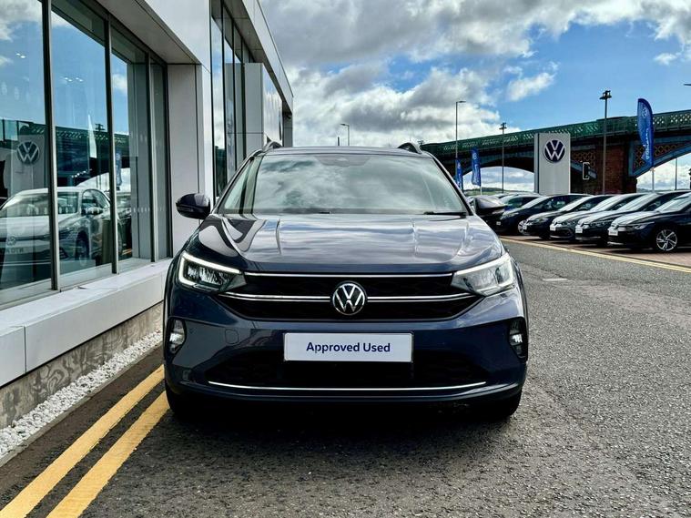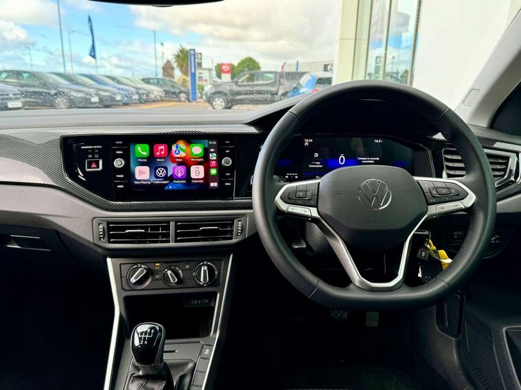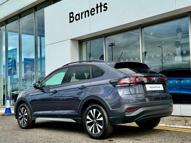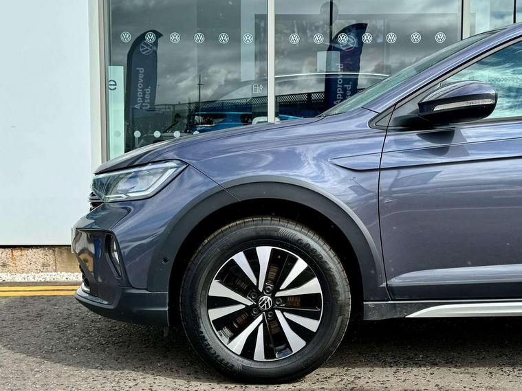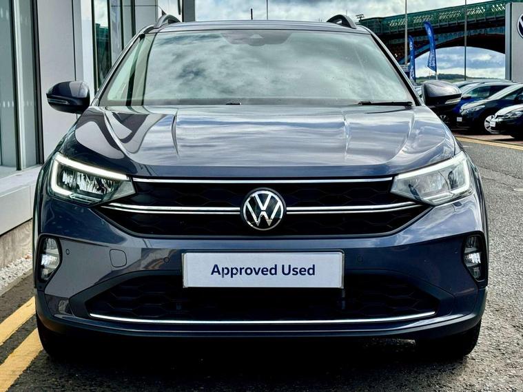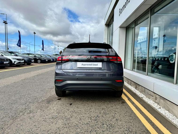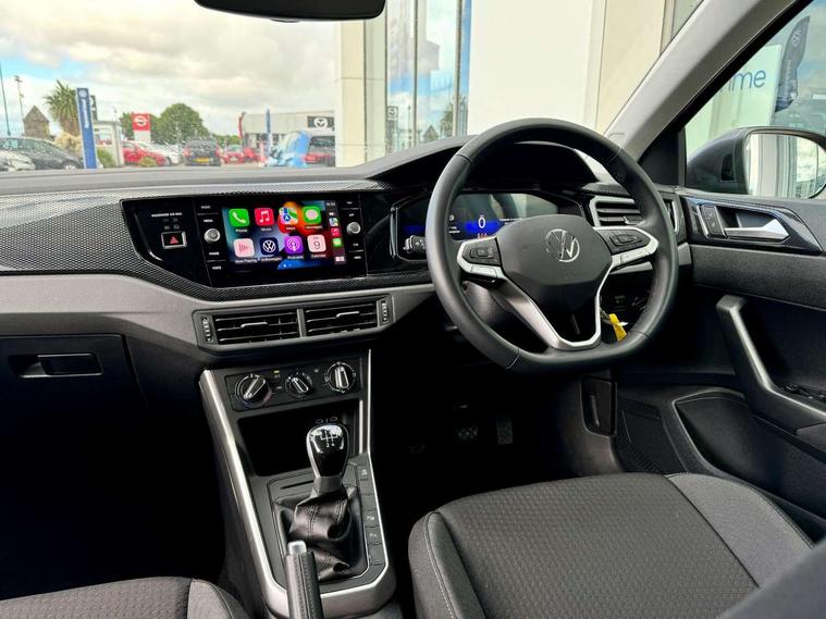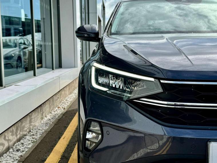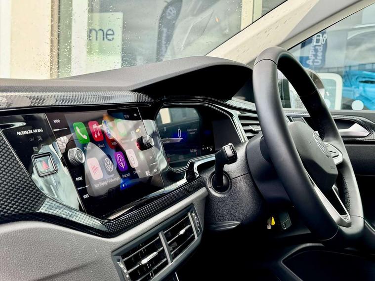 App-Connect including App-Connect Wireless, Driver alert system, e-Call (emergency call), Power Steering, Travel assist including emergency assist, Washer fluid level indicator, Wireless Charging including Bluetooth, Start-stop system with battery regeneration (recuperation - energy recovery during braking), Digital radio reception (DAB+), Diversity antenna for FM reception, WeConnect plus, Ambient lighting with logo projection, Aspherical driver's exterior mirror, Auto headlights, Body coloured bumpers, Body coloured exterior mirror housings and door handles, Electric windows, External USB type C socket and charging sockets, Front fog lamps with cornering function, Headlight range control, Heat insulating glass windscreen, LED headlamps, LED rear combination lamp, LED third brake light, Left convex exterior mirror, Power folding adjustable/heated exterior mirrors and front passenger exterior mirror lowering function, Rear fog light on one side, reversing light on both sides, Rear side wing doors, Rear wash/wipe with intermittent wipe setting, 'Slash/ Austin' Cloth upholstery, 12V socket in centre console, 2 front reading lights, 3 rear head restraints, 3 seat bench in 2nd row, Black carpets, Child seat anchor for child seat system i-Size, 2x top tether and child seat anchor in front on front passenger side, Door and side trim panels in titan black, Driver and front passenger seat height adjustment, Front centre armrest, Handbrake lever handle in leather, Height and reach adjustable steering wheel, Leather trimmed gear knob, Leather wrapped multifunction steering wheel, Luggage compartment floor, Luggage compartment light, Lumbar support for driver's and front passengers seat, Seat covers in titanium black, Single front passenger seat, Split folding backrest with centre armrest and unsplit rear seat bench, Storage compartment under front seats, Sun visors with illuminated vanity mirrors, Chrome Package - Taigo, Drivers assistance pack - Taigo, Light and Sight pack including High beam assist - Taigo, 2 x 3-point seatbelts/outer rear seats with ECE label, 3-point seat belts in front with pretensioner and height adjustment, 3-point seatbelt for centre rear seat, Driver and front passenger airbags with front passenger airbag de-activation, front side and curtain airbags, Driver and front passenger safety-optimised head restraints, Electronic stability control, Extended and predictive pedestrian/ cyclist protection, Front and rear disc brakes, Front curtain and side airbags with center airbag, Hill start assist, Manual rear child locks, Single tone horn, Tyre pressure loss indicator, Anti-theft alarm system with interior monitoring, backup horn, and towing protection, Anti-theft wheel bolts, Lava stone black gloss/matt decorative inserts in dash and front door panels, Low rolling resistance tyres,